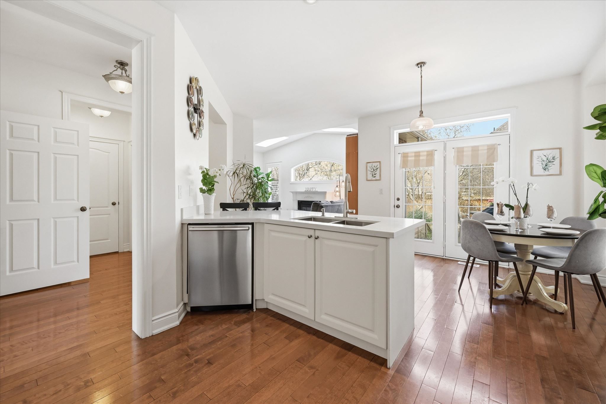 Finally! A 4+1 bed, 4 bath, open concept detached home on a quiet street in the highly sought-after lakeshore woods! Which brings me to the top 7 reasons to buy this home: 1. Upgraded, open concept, gourmet kitchen with refinished cabinetry, crown mouldings, upgraded stone counters, matching backsplash, s/s appliances, and even has a toe kick vacuum! 2. Essential quiet street for the kids to ride their bikes and play road hockey; this section of turning leaf is local traffic only. 3. Glorious family room of off the kitchen featuring vaulted ceilings, sky lights, huge windows, and a gas fireplace; probably my favourite feature! 4. Finished basement with everything you could ask for: bedroom, full bath, rec room, and a partial kitchen with tons of storage. Featuring a gas fireplace ready for your final touches. 5. Unparalleled quality, rosehaven build from 2006: modern construction with a poured concrete foundation, copper plumbing, copper electrical, and 200 amp service. 6. Truly one of the best locations in oakville for 3 main reasons: a) top schools: gladys speers ranked 84th percentile in on, and blakelock secondary ranked 90th! B) sandwiched between nautical park with a huge playground (5 min walk), and one of oakville's largest parks, shell park, 48 acres of soccer fields, forest, playground, dog park, skateboard park, community garden plots, and even extends down to the lake! C) short 20 min bike ride into downtown bronte, and a short 5 min drive to the major wyecroft/burloak plaza. 7. 100% move-in-ready with lots of upgrades featuring real hardwood on main, 2nd floor landing, and stairs, freshly painted home, upgraded aluminum garage doors, high quality window treatments incl california shutters, fully landscaped backyard with trees placed along the back for privacy and a prof built deck with built-in planters. The covered porch, 2nd floor walk-out and charming curb appeal will seal the deal! Don't miss out on the best value listing in lakeshore woods!