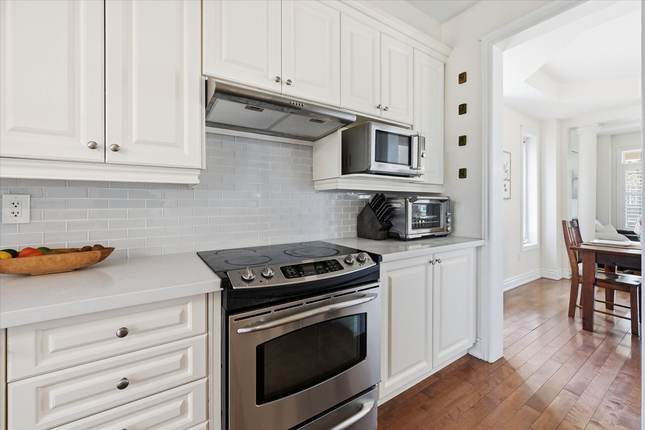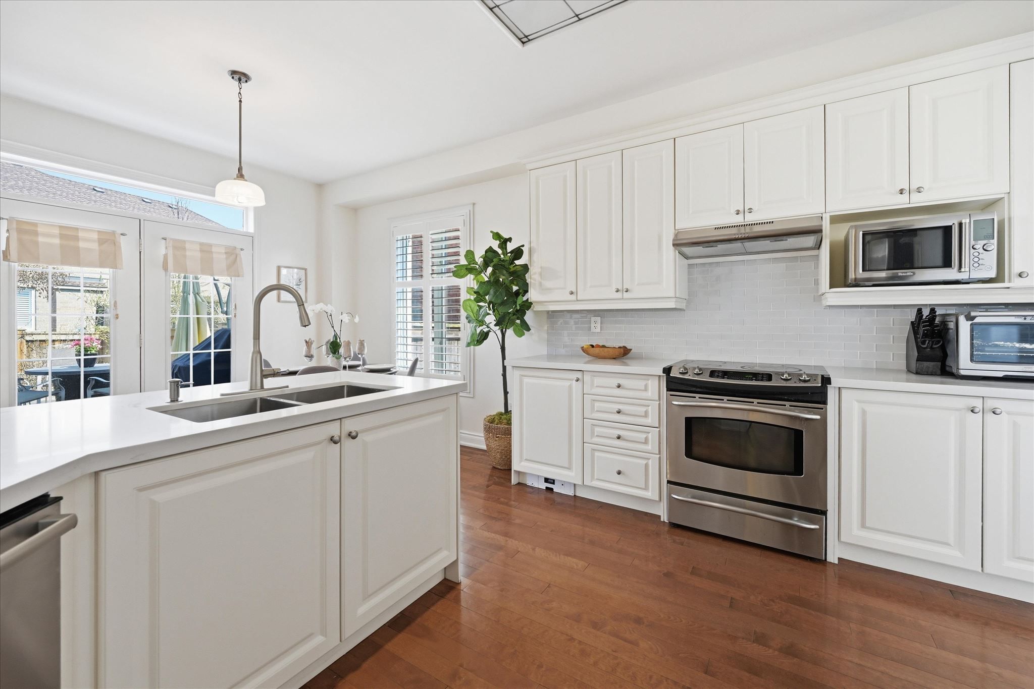 • Gourmet kitchen with modern upgrades and handy toe kick vacuum.