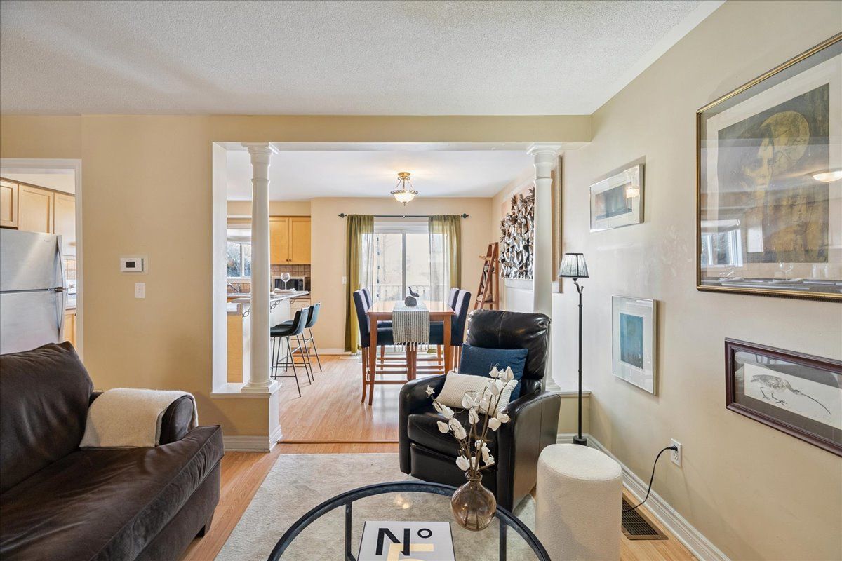 Welcome to this bright and beautifully maintained townhome in the desirable millcroft community. Offering three bedrooms, three bathrooms, a finished basement, and an open-concept kitchen and dining area, this home is well suited for a growing family. The third bedroom can also function comfortably as a home office or guest room. Enjoy peaceful park views throughout the home. The fully finished basement adds valuable living space with a den, family/games area, a spacious laundry room, and ample storage, including under the stairs. A fully fenced backyard with a private gate provides direct access to the park-perfect for outdoor living and family enjoyment. Recent upgrades include a furnace (2022), hot water heater (2019), and roof tiles (2017). Ideally located within walking distance to shopping and everyday amenities, just one minute from highway 407, and close to millcroft golf club. Low monthly maintenance fees of only $162 make this townhome an excellent value in a highly sought-after burlington neighbourhood.