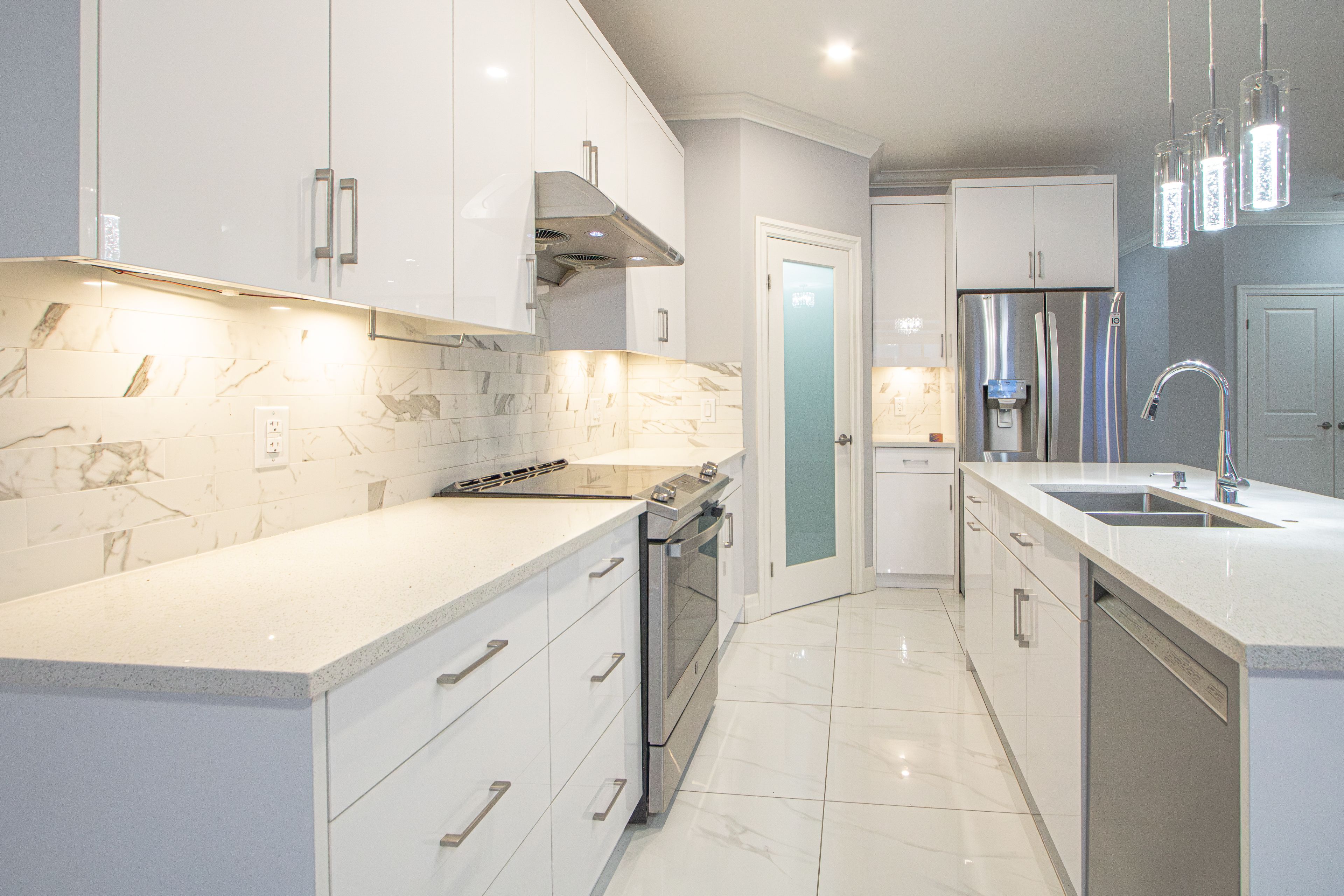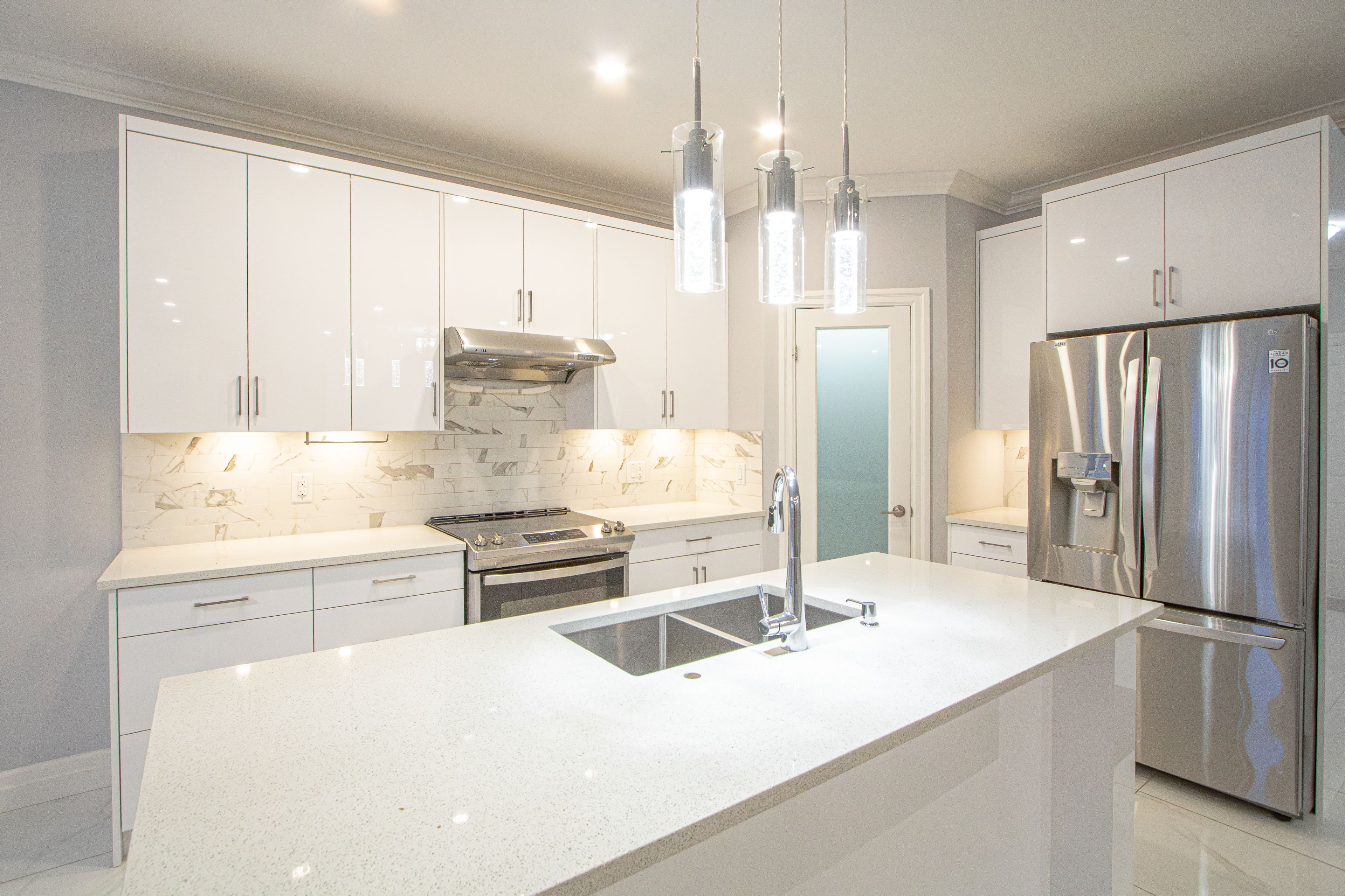 • Chef-inspired kitchen with quartz countertops and stainless steel appliances.