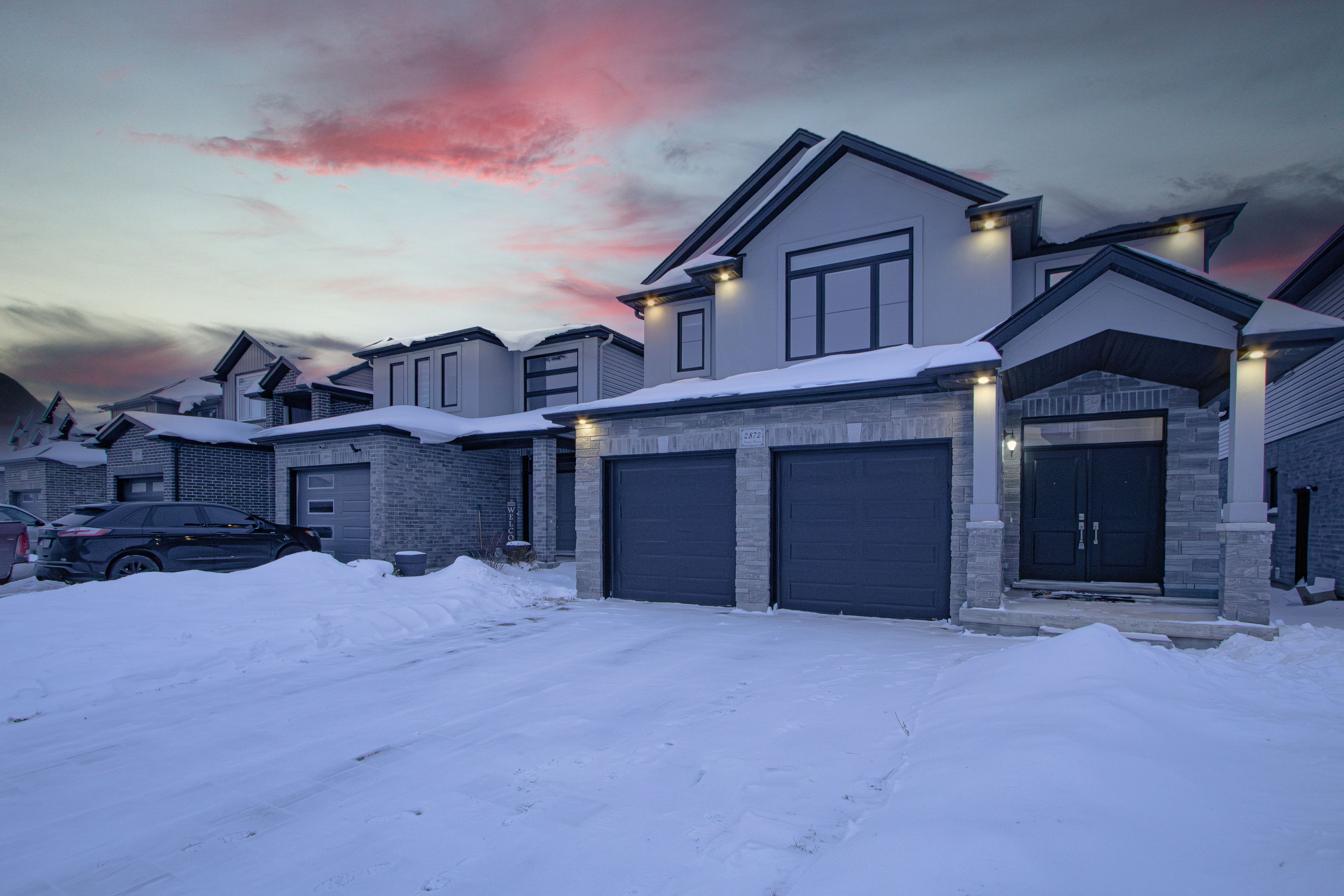Discover your dream home at 2872 doyle dr, london south-a stunning all-brick residence in the sought-after community! Boasting 2618 sqft of luxurious open-concept living, this property features 4 spacious bedrooms and 4 bathrooms, including two master suites with ensuites, a chef-inspired kitchen with quartz countertops and stainless steel appliances, and soaring 9 ft ceilings that flood the space with natural light. The expansive family and living areas are perfect for entertaining, while the large backyard offers endless outdoor enjoyment. With a separate basement entrance and big windows, there's incredible potential for future customization. Ideally located just minutes from highway 401, the university, shopping, and amenities, this home blends elegance, convenience, and comfort-perfect for families seeking upscale living in one of london's most desirable neighborhoods.