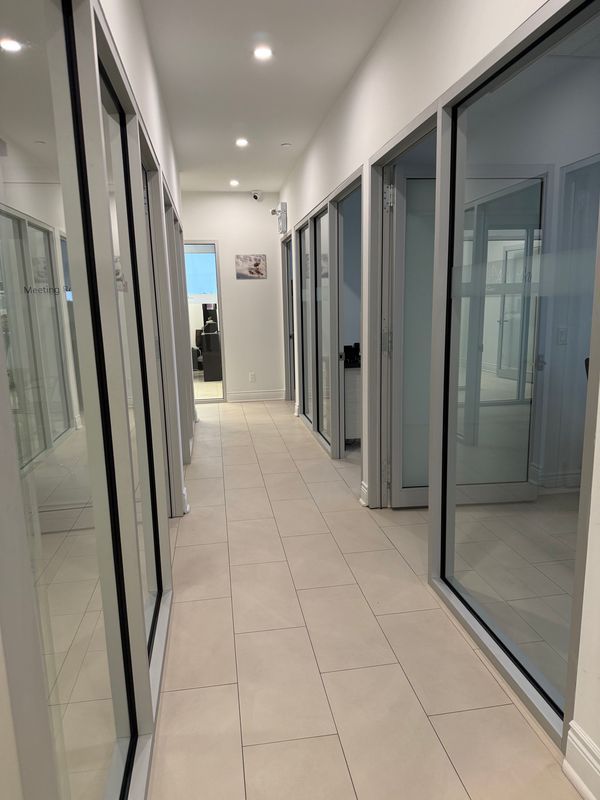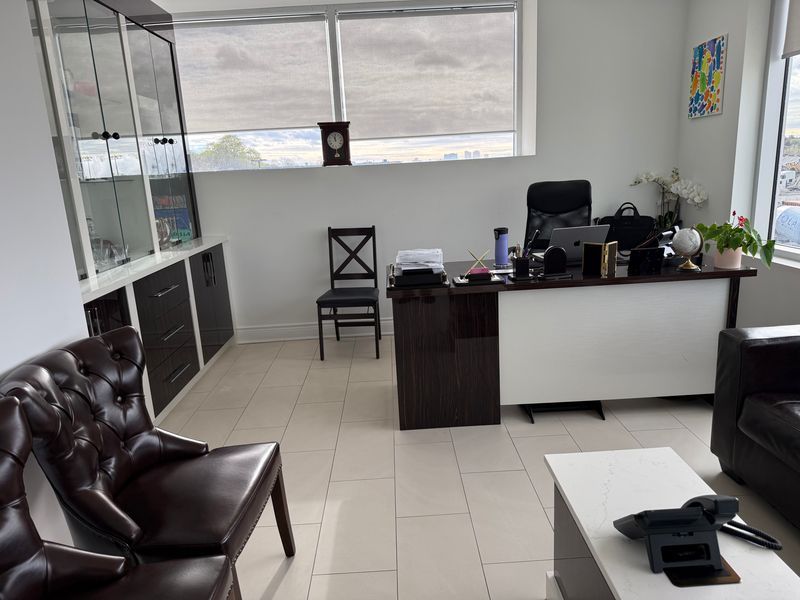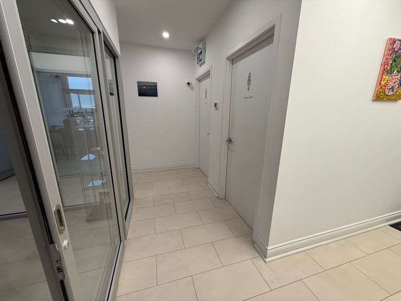 Calling all professionals! Lease this newly finished, highly upgraded, modern office in a prime commercial building with emp-ge (employment - general employment) zoning (city report available upon request). This desirable corner unit is situated on the 2nd floor, boasting exceptional natural light, porcelain tile flooring throughout, and extensive professional millwork complemented by a large glass entry door. Enjoy top-tier amenities, including a newly built kitchenette complete with a dishwasher,two-door fridge, and microwave, plus the convenience of two separate washrooms featuring great vanities, touchless light switches, a touchless faucet, and a hot water bidet. Furthermore, the unit is professionally wired for 16 phone extensions and 18 data/internet plugs, ensuring immediate and robust connectivity. Hydro and gas are extra. Parking is premium, featuring two (2) reserved parking spots plus plenty of common surface parking for all visitors and staff. This unit is perfectly suited for professional services such as lawyers, accountants, mortgage brokers, insurance brokers, and tutors. Benefit from a very convenient location with easy access to highways 404, 407, and 401, and close proximity to major amenities like costco, home depot, staples, and banks. Move-in ready with flexible lease terms available-don't miss this opportunity!