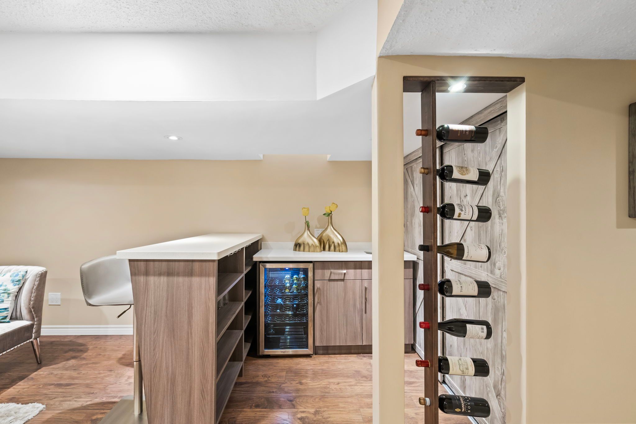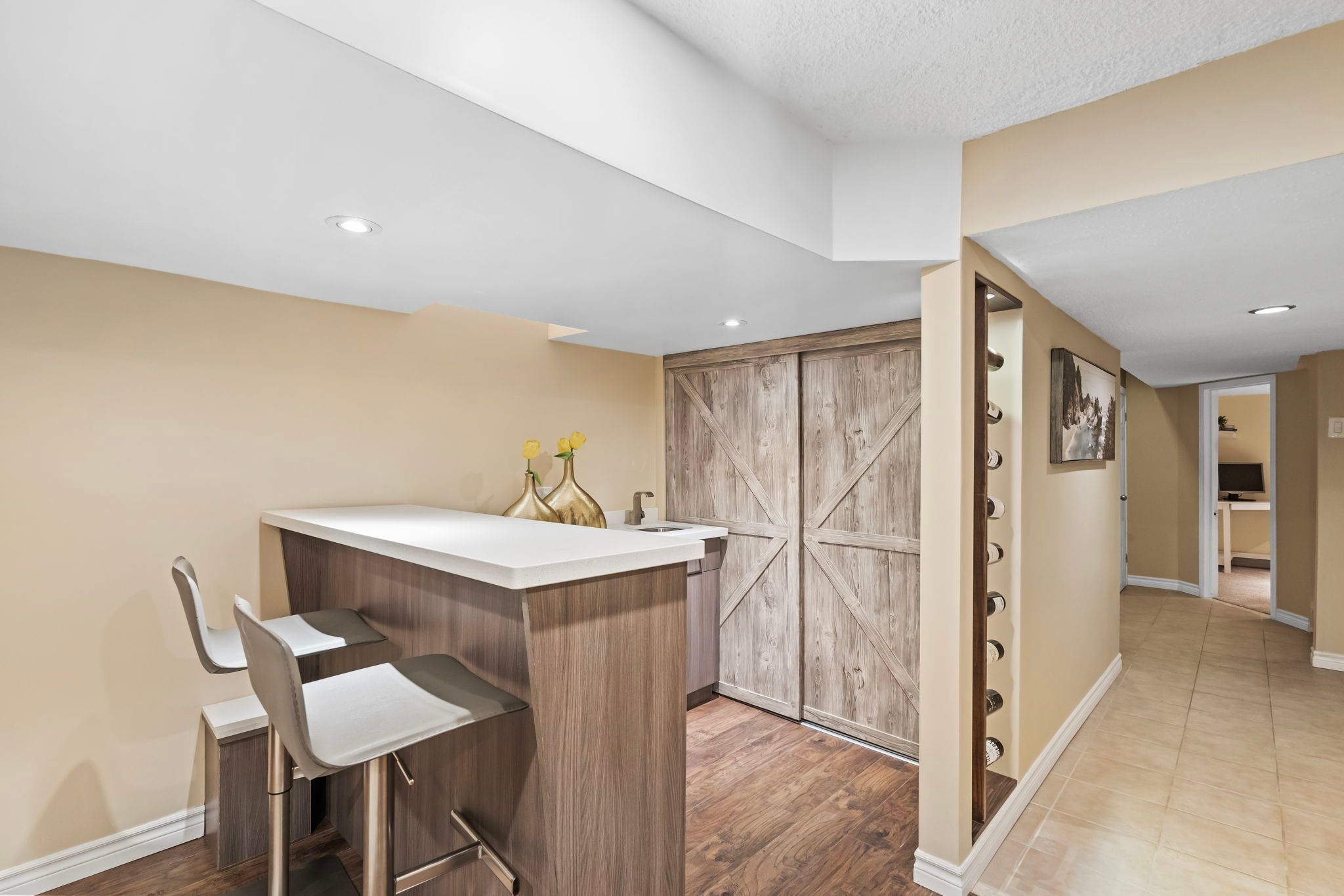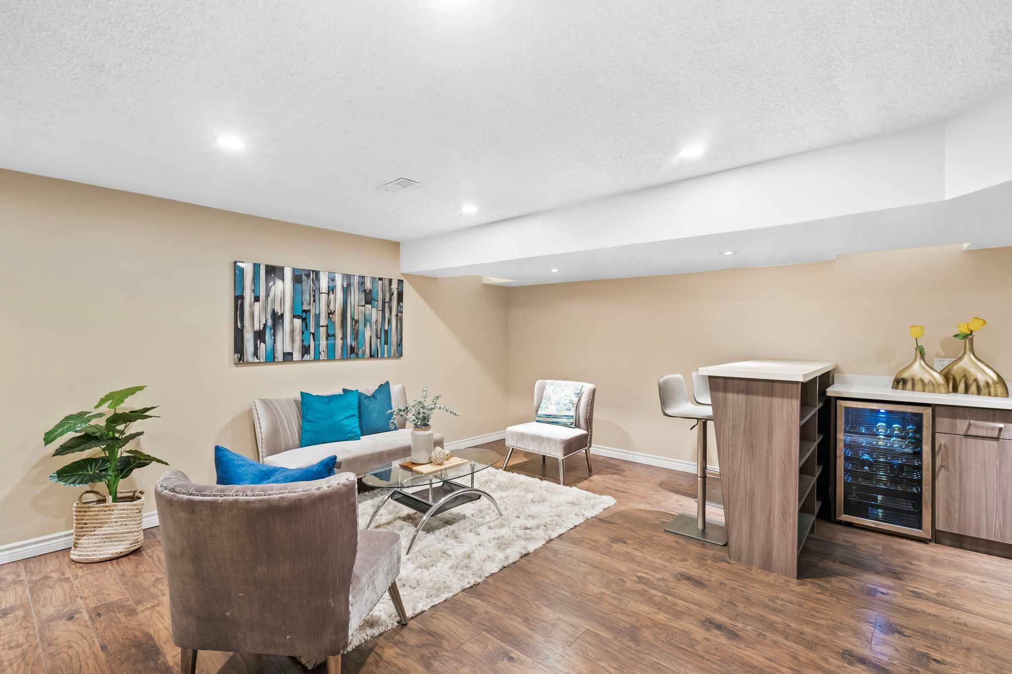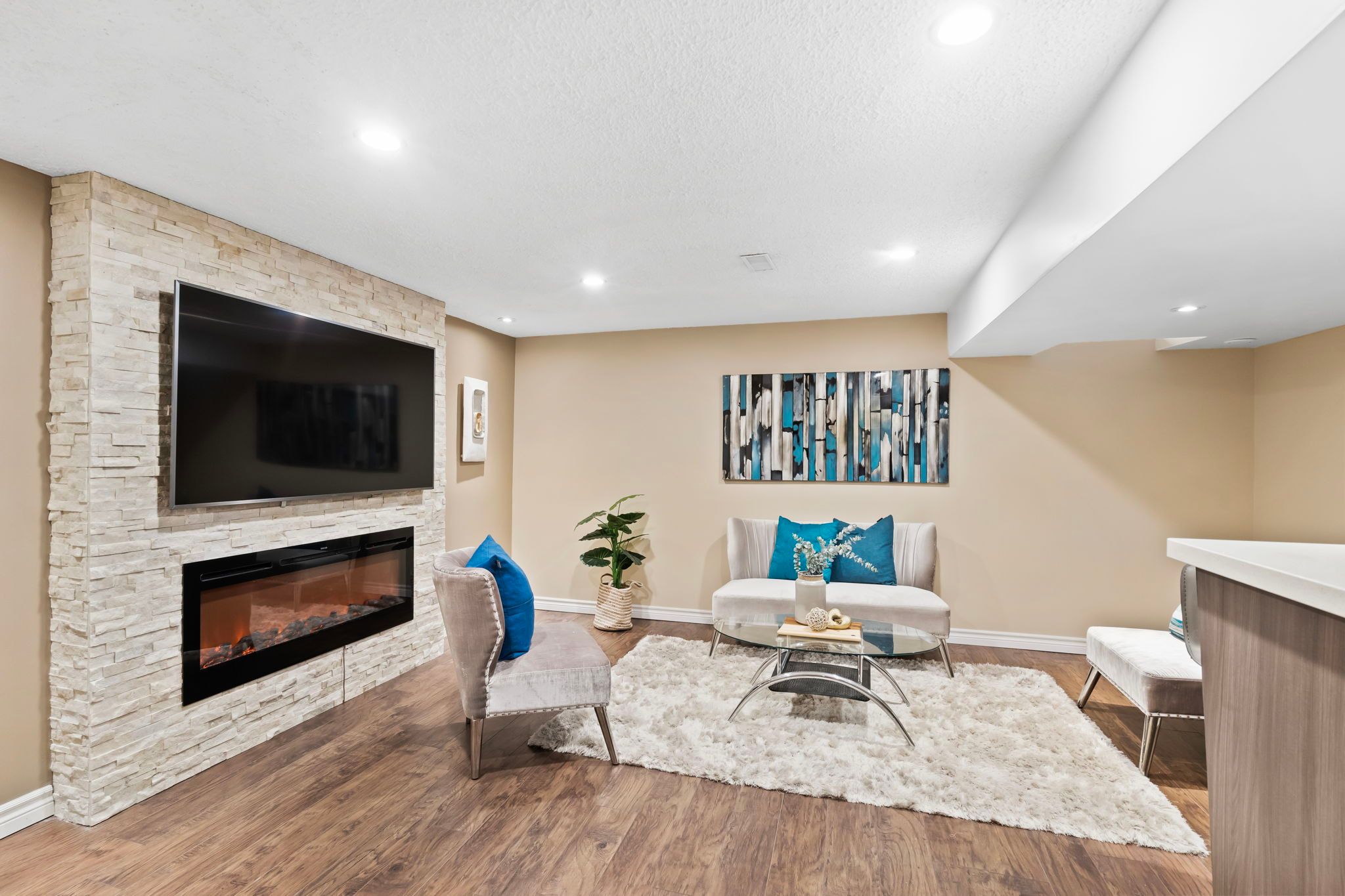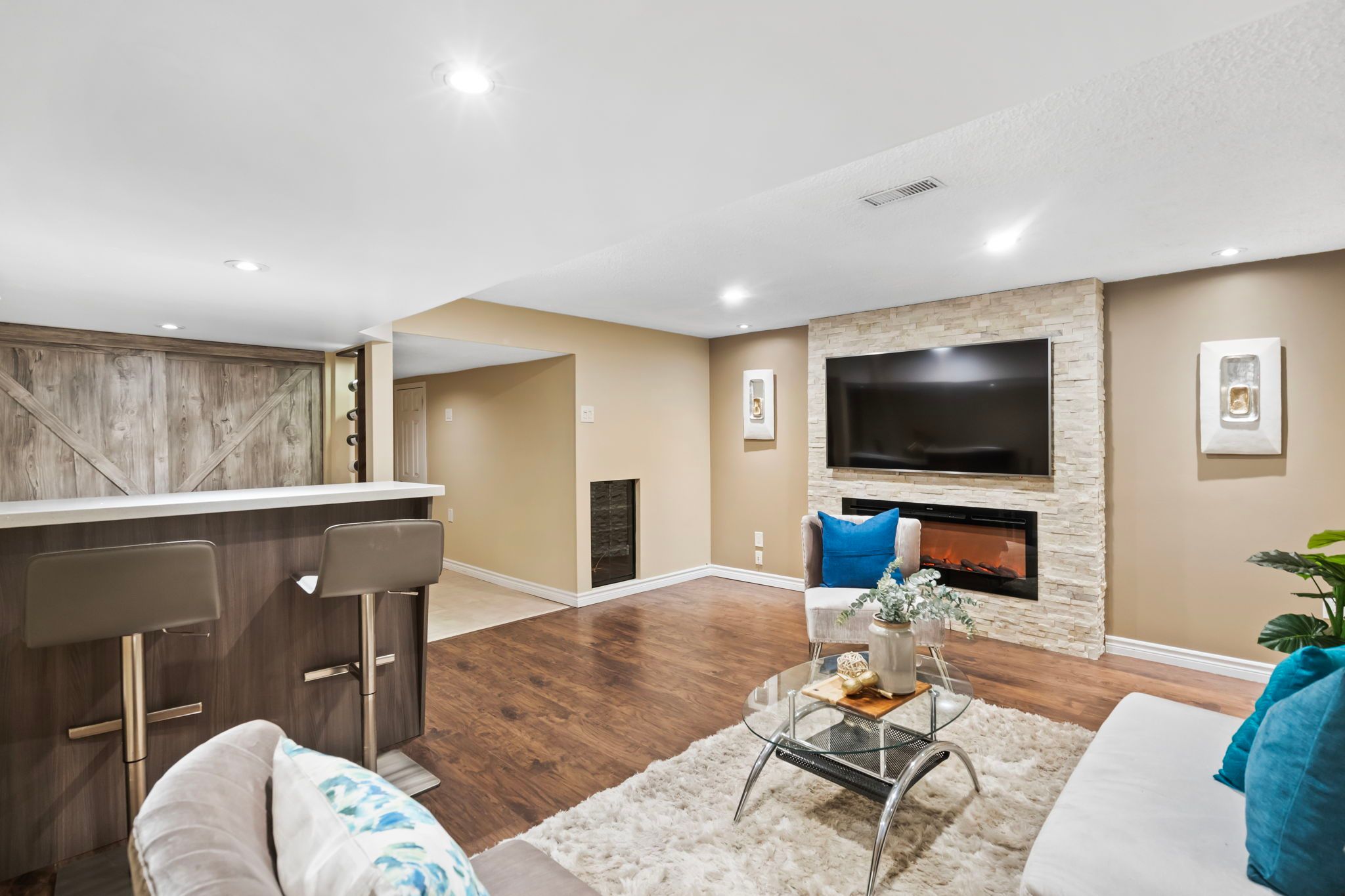 • Fully finished basement with wet bar, electric fireplace, and elegant finishes.