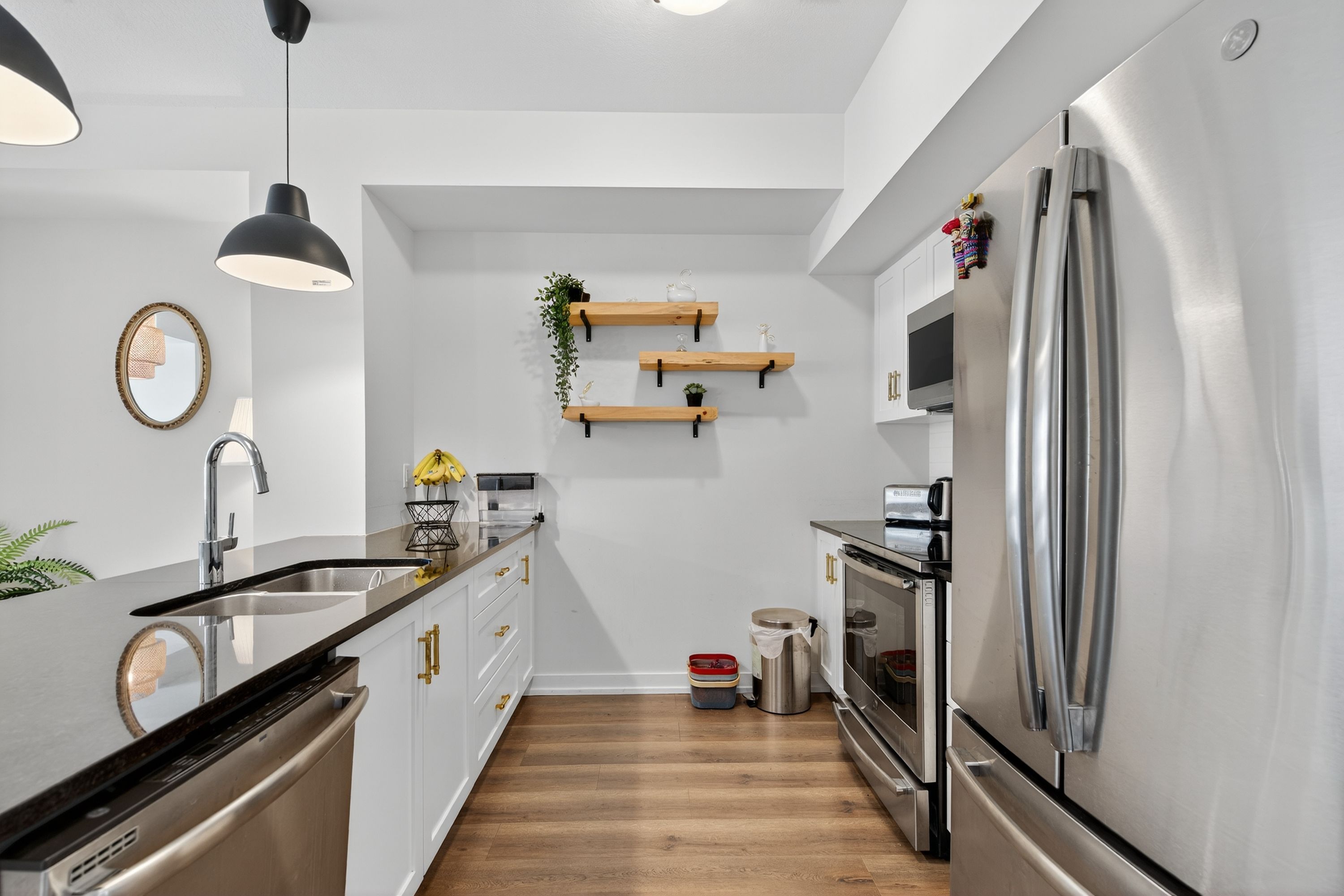 • Bright open-concept layout with stylish wide plank vinyl flooring.