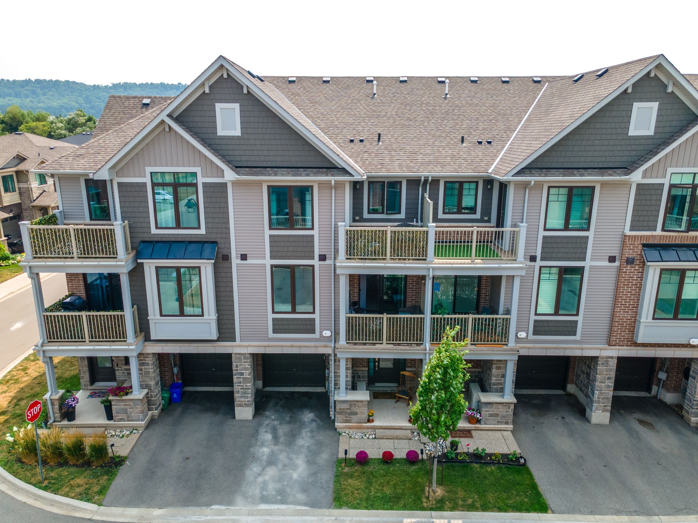 Stunning branthaven townhome in sought-after winona/fruitland neighbourhood. New go train station, only 10 minutes away. Snow removal and ground maintenance taken care of for you! Welcome to this beautifully upgraded townhome located in one of hamilton's fastest-growing communities. Ideally situated just minutes from the qew and red hill valley parkway, you'll enjoy easy access to everything you need-including trendy new restaurants, shopping, costco, and more. This home features a bright and airy open-concept layout, complete with wide plank vinyl flooring and stylish upgraded lighting throughout. The gourmet kitchen boasts sleek white cabinetry, stainless steel appliances, granite countertops, and a modern tile backsplash. The main floor also includes a spacious family room with a charming shiplap feature wall, separate dining area, and access to a private balcony-perfect for entertaining or relaxing. The powder room has been tastefully updated with new tile flooring and contemporary fixtures. Upstairs, you'll find two generously sized bedrooms, a convenient laundry closet, and a spacious 4-piece bathroom with a relaxing soaker tub. The primary bedroom features a walk-in closet and its own private balcony. Lovingly maintained, this exceptional home is built by award-winning branthaven and offers quality craftsmanship, thoughtful upgrades, and a truly move-in-ready experience.