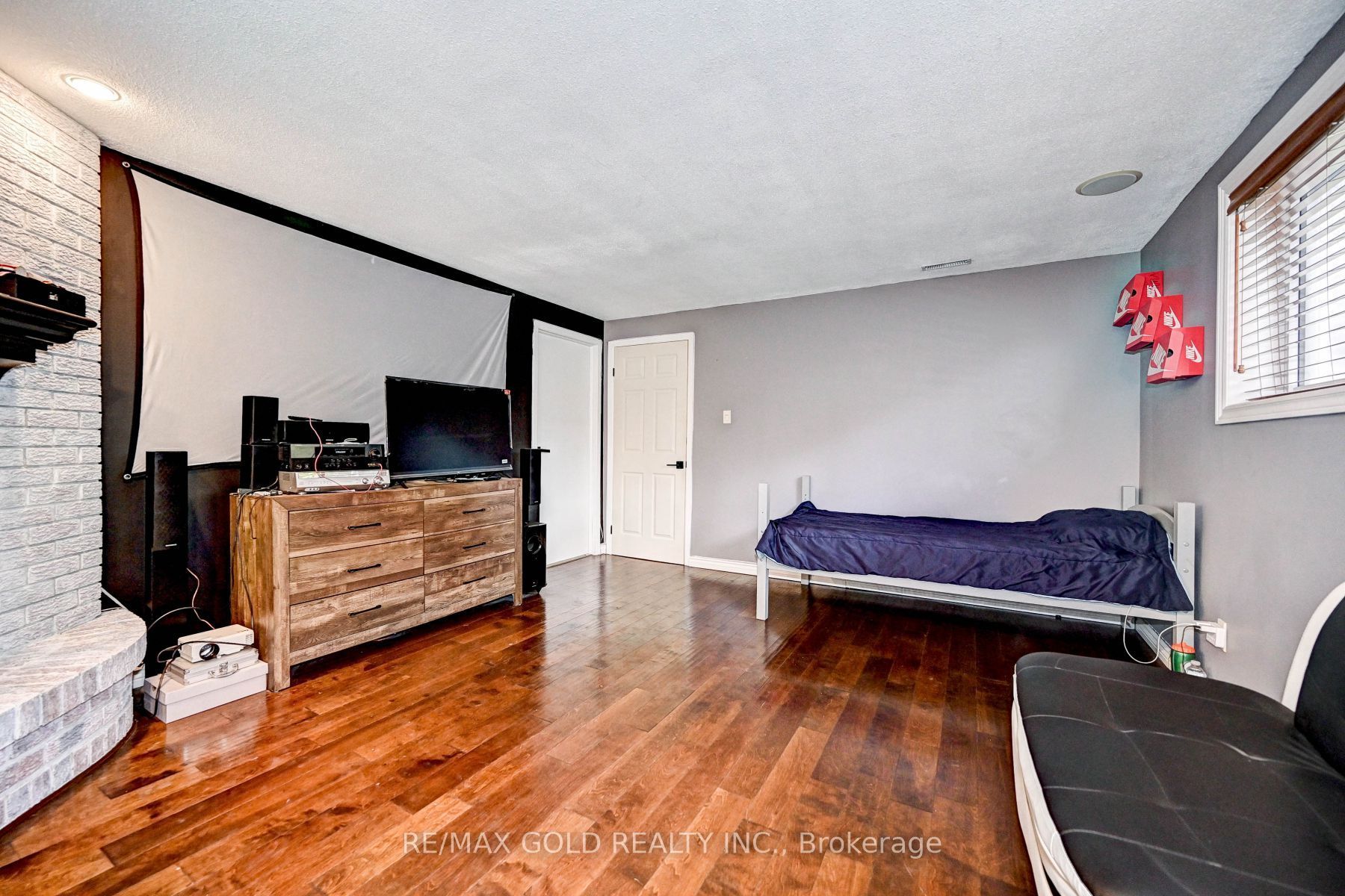 • Cozy rec room features a new built-in electric fireplace.