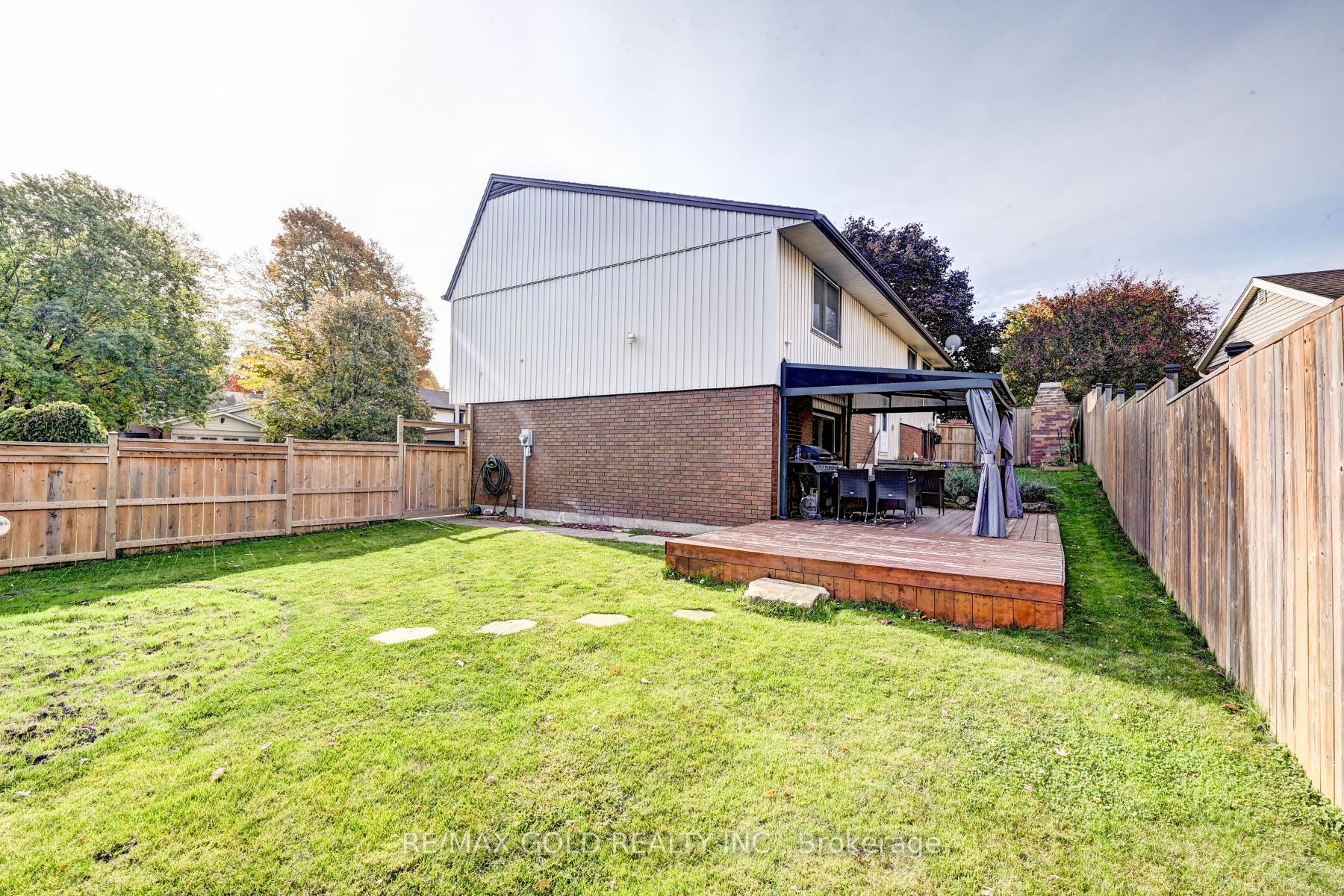 • Large fenced backyard with a deck, gazebo, and space for a pool.
