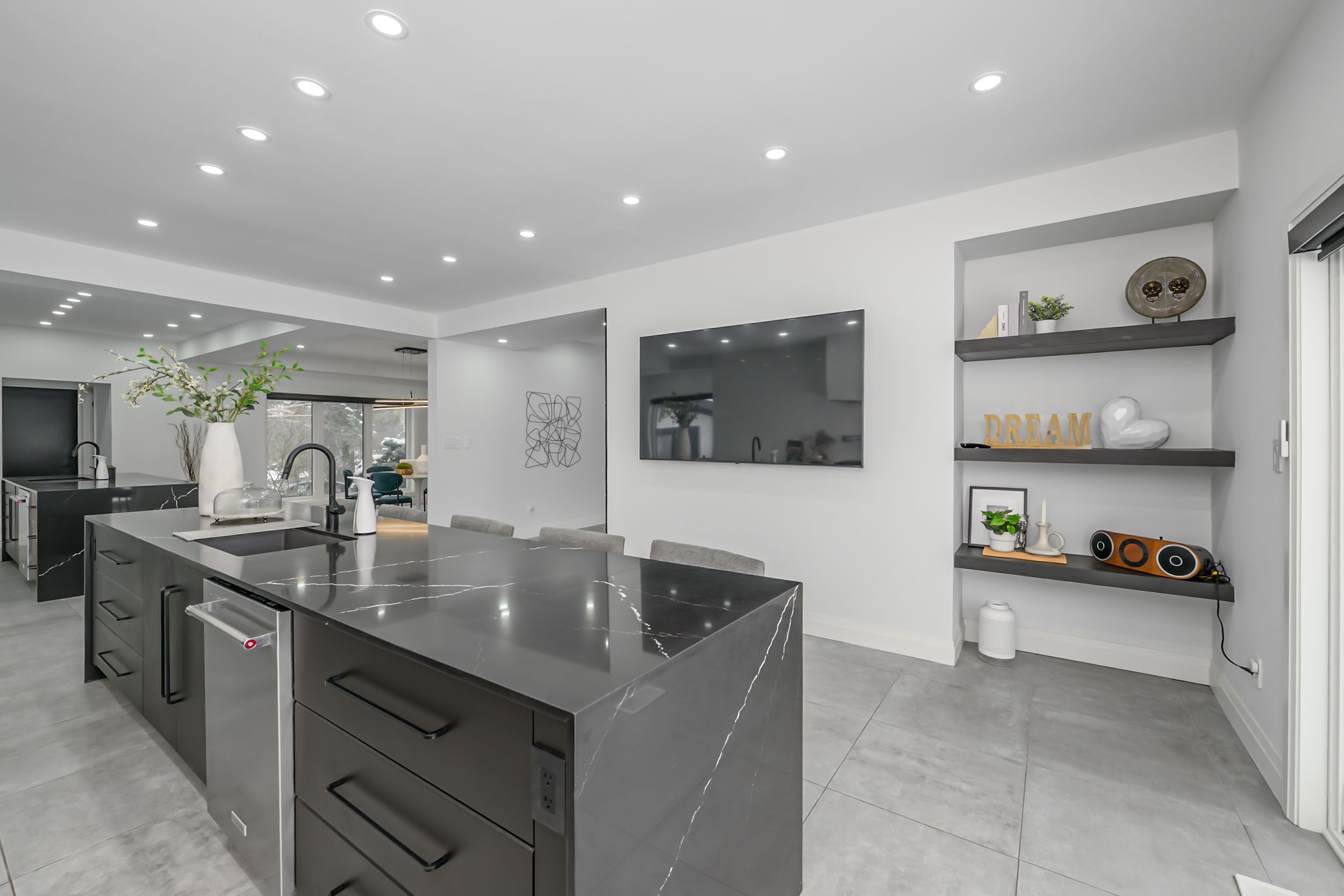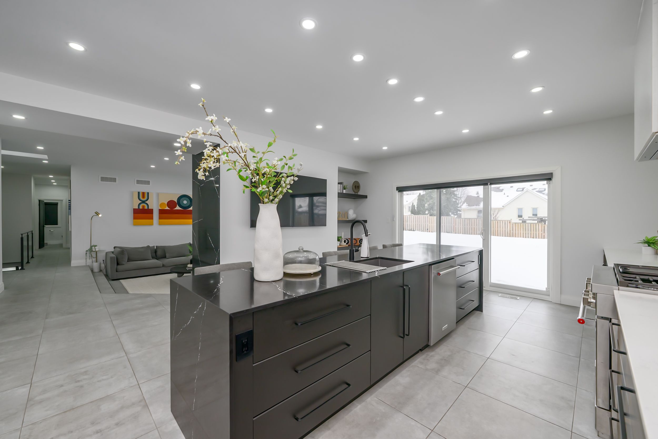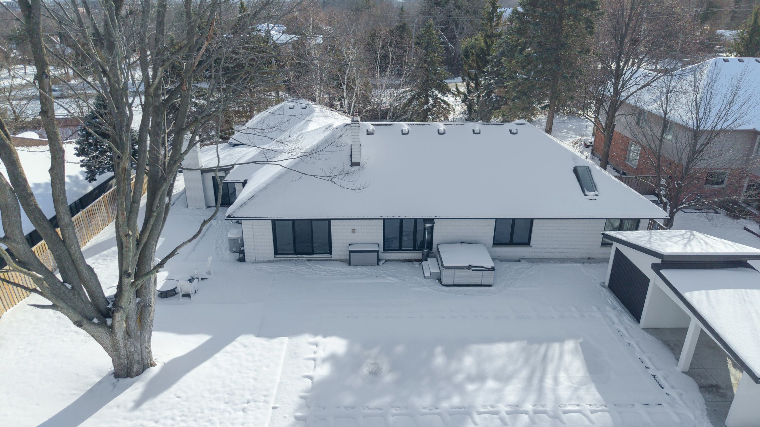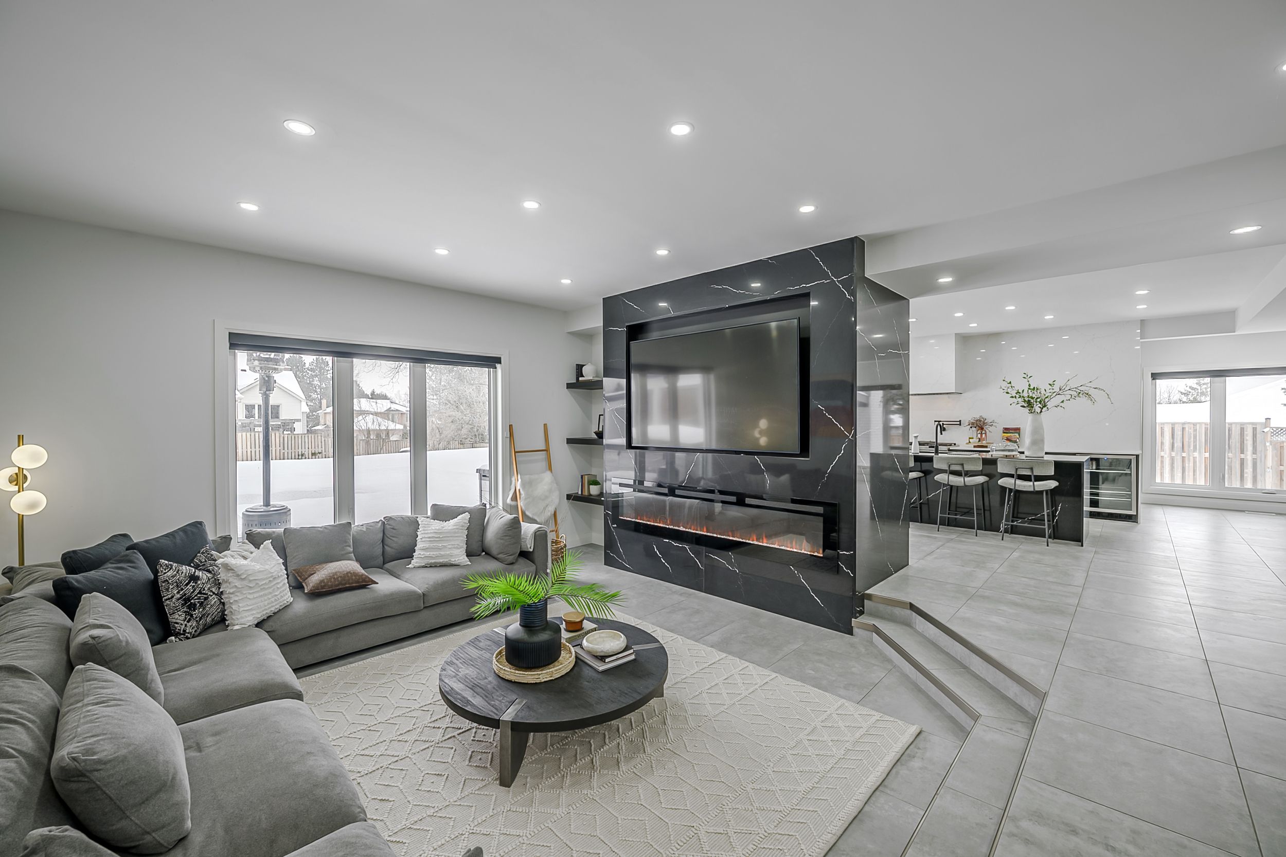 Set back on a 100-ft-wide, 0. 40 acre lot along coveted windermere court west-an exclusive, traffic-calmed lane with homes on only one side overlooking the elsie perrin estate-this fully transformed modern residence delivers 3,177 sq ft above grade and a seductive gallery-style aesthetic. The road is curbed, dead-ended, and services only the resident homes, enhancing peace and privacy. With western university, university hospital, and medway valley trails in walking distance, the setting is unmatched for buyers who value location. Inside, the main level flows with curated, art-gallery intention: newer windows and doors frame natural light, continuous flooring extends sight-lines, and a sculptural quartz fireplace surround and feature wall creates impact defining the stepped-down living room. The architectural kitchen performs as both workspace and showpiece, offering dual islands, extensive cabinetry, a porcelain/quartz feature wall, and a walk-in pantry. A generous dining area, sunroom/office, impressive main bath, and three bedrooms - including a bold, light-filled primary suite with a beautifully redesigned ensuite-complete the main level. The lower level expands the home's lifestyle narrative with nearly 2,000 sq ft of upscale finished space. Glass partitions showcase a double laundry suite, a glassed-in gym, and a glass-front bonus room ideal for a future wine cellar, adding a boutique-hotel sensibility. A large workout studio, lounge, games area, full bath, finished bonus room, and a private bedroom complete the level. Outside, the deep, fully fenced yard evolves into a private resort: heated salt-water sport-pool, hot tub, and a pool house that flows into a covered lanai-creating effortless outdoor living whether you want shade, shelter from rain, or a serene retreat after a workout. Redesigned front landscaping and lift-height garage ceilings complete this modern sanctuary. Windermere court west is a rare address-and this is one of its most compelling homes.