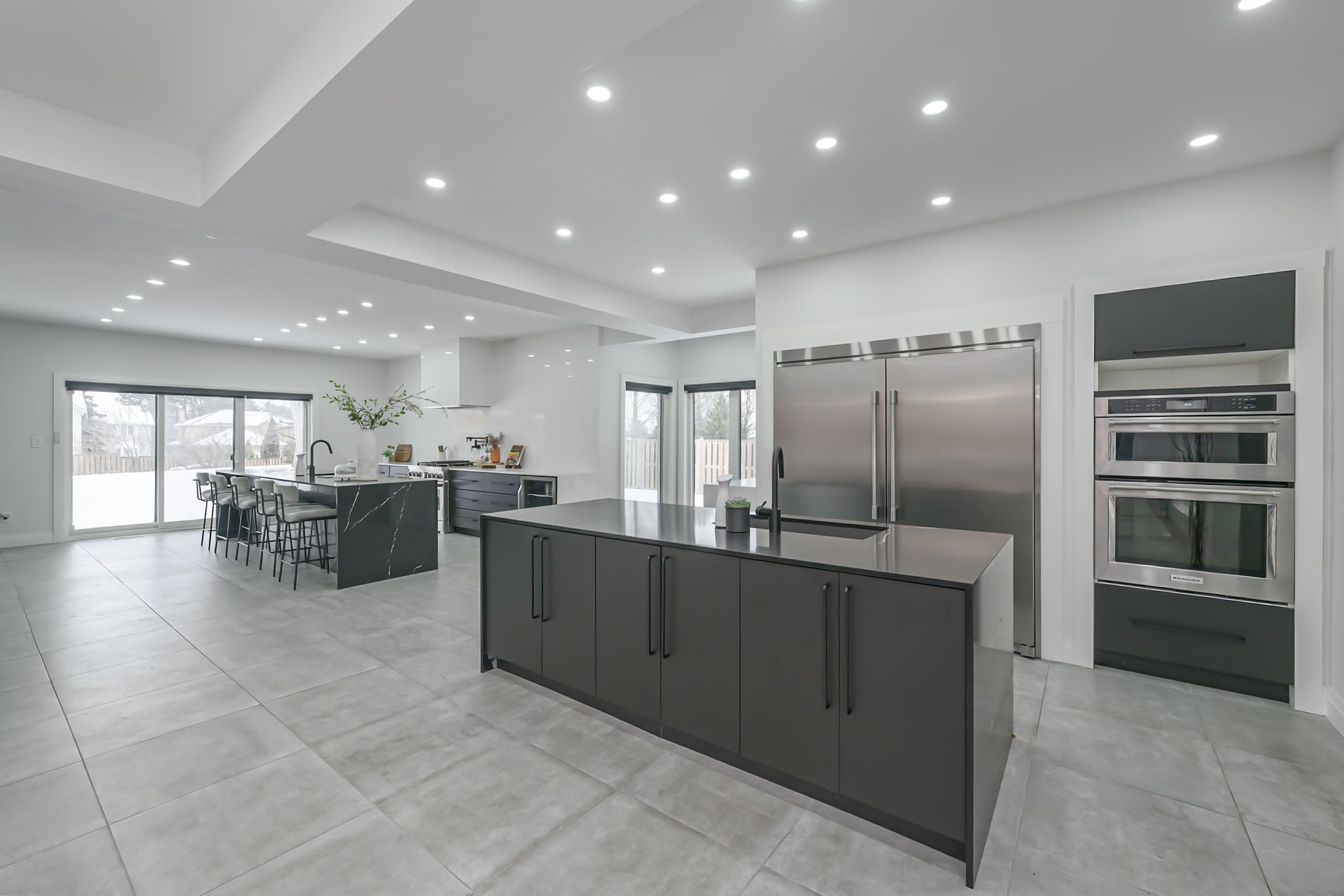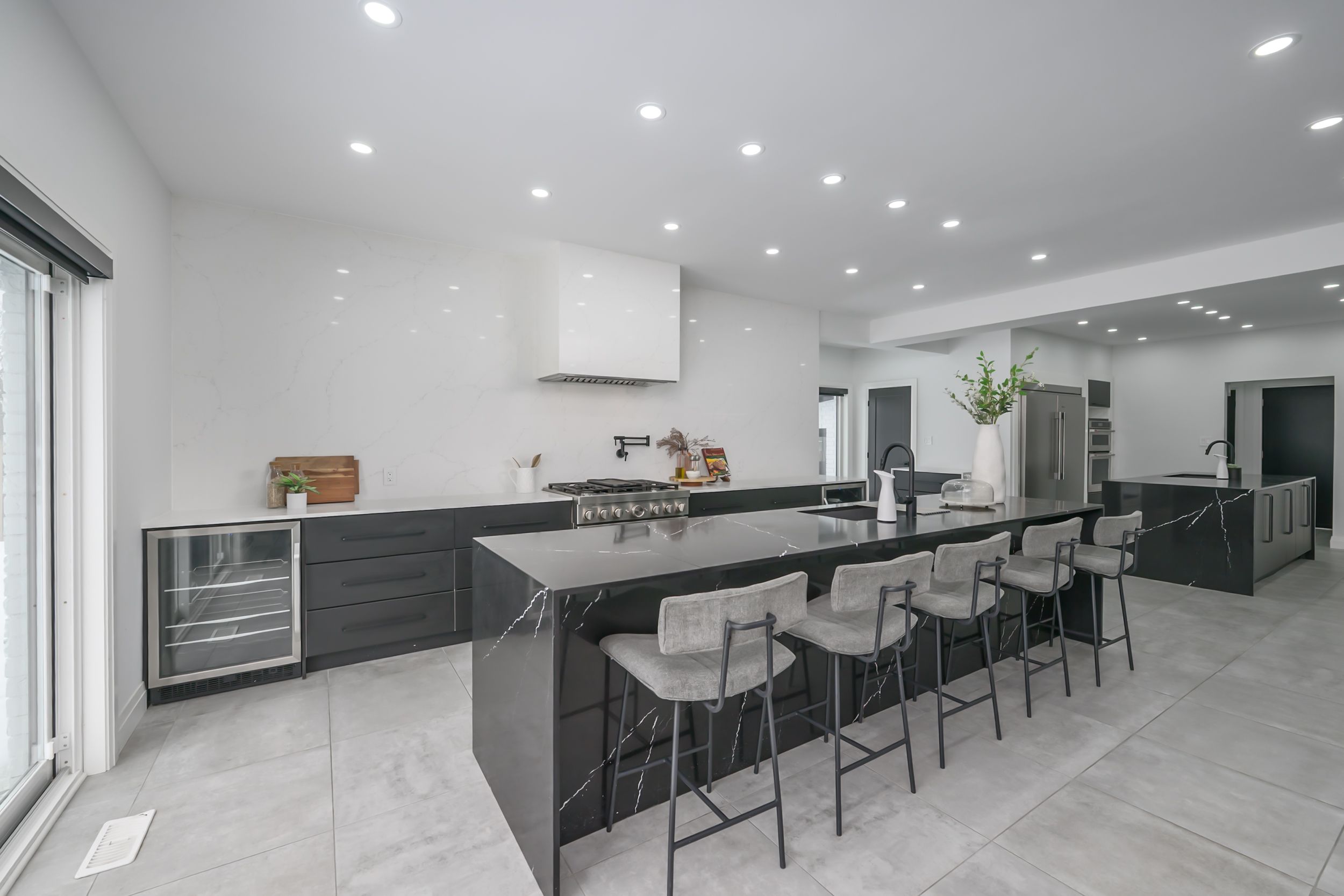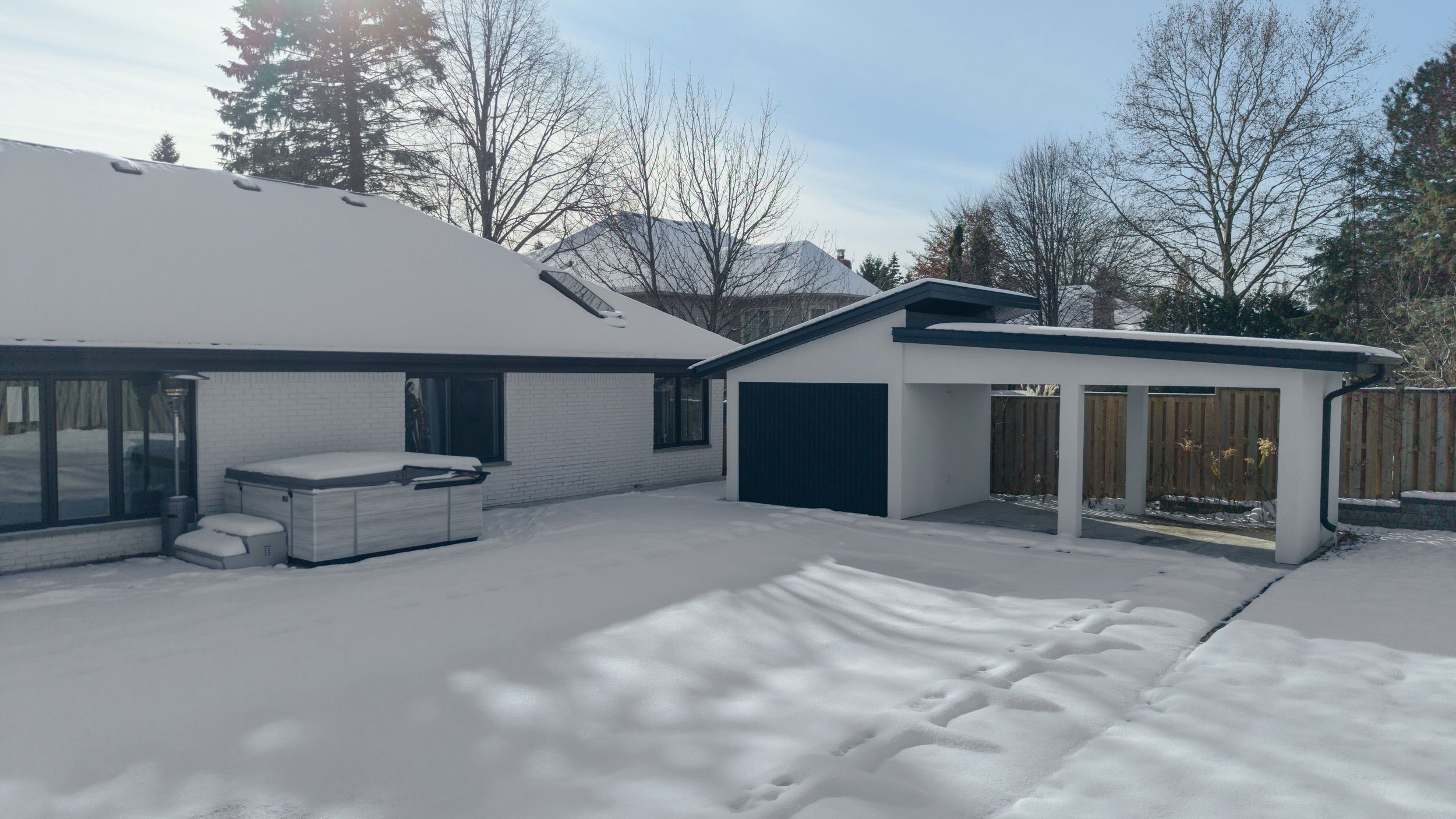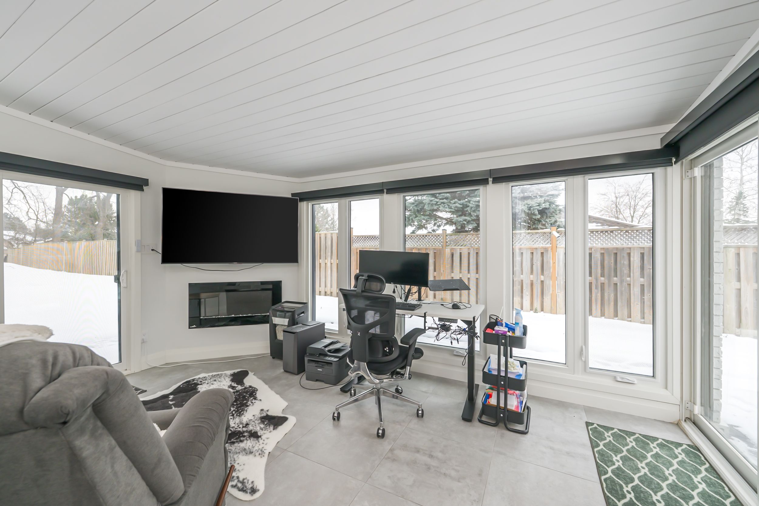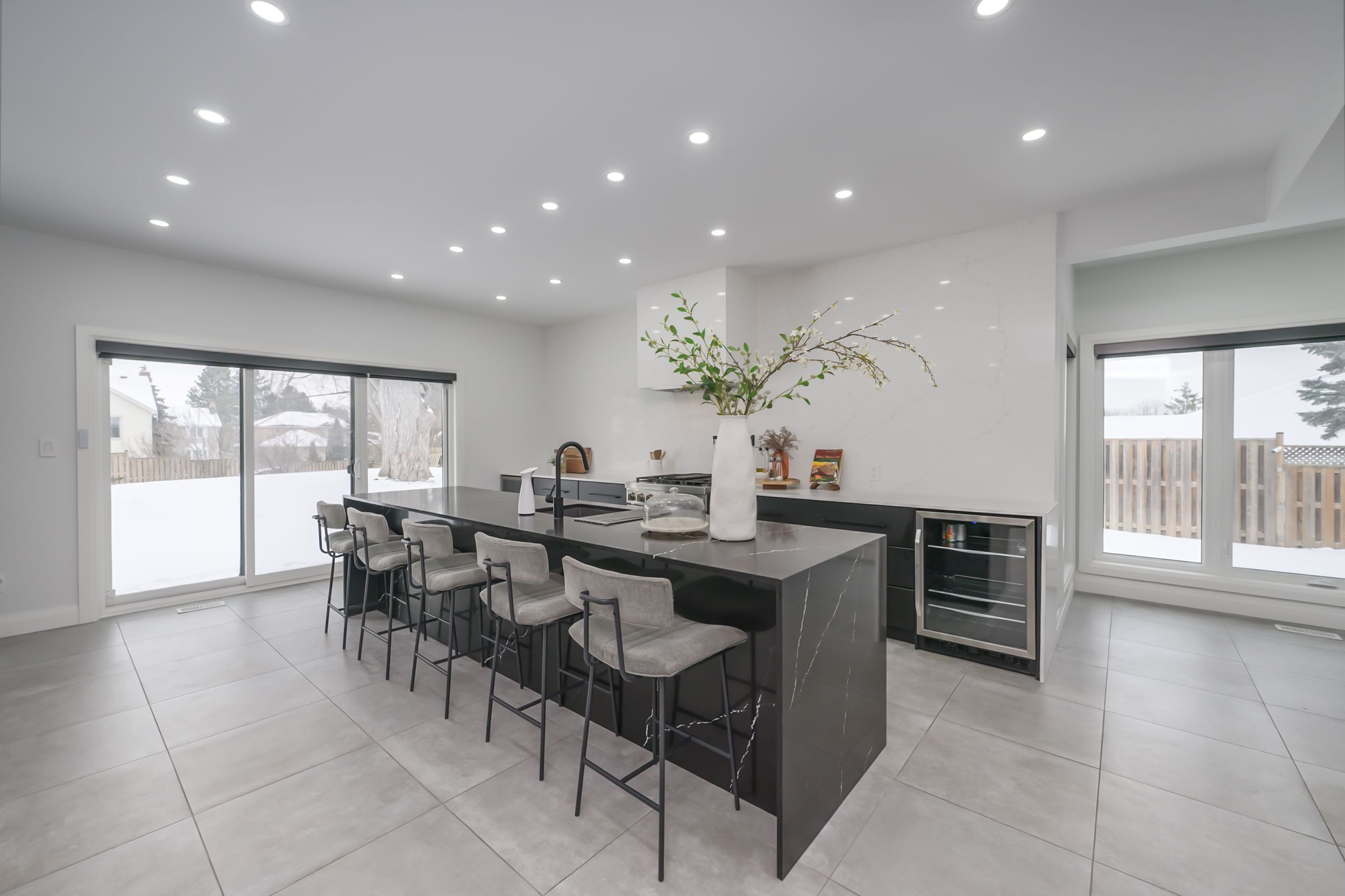 Set back on a 100-ft-wide, 0. 40 acre lot along coveted windermere court west-an exclusive, traffic-calmed lane with homes on only one side overlooking the elsie perrin estate-this fully transformed modern residence delivers 3,177 sq ft above grade and a seductive gallery-style aesthetic. The road is curbed, dead-ended, and services only the resident homes, enhancing peace and privacy. With western university, university hospital, and medway valley trails in walking distance, the setting is unmatched for buyers who value location. Inside, the main level flows with curated, art-gallery intention: newer windows and doors frame natural light, continuous flooring extends sight-lines, and a sculptural quartz fireplace surround and feature wall creates impact defining the stepped-down living room. The architectural kitchen performs as both workspace and showpiece, offering dual islands, extensive cabinetry, a porcelain/quartz feature wall, and a walk-in pantry. A generous dining area, sunroom/office, impressive main bath, and three bedrooms - including a bold, light-filled primary suite with a beautifully redesigned ensuite-complete the main level. The lower level expands the home's lifestyle narrative with nearly 2,000 sq ft of upscale finished space. Glass partitions showcase a double laundry suite, a glassed-in gym, and a glass-front bonus room ideal for a future wine cellar, adding a boutique-hotel sensibility. A large workout studio, lounge, games area, full bath, finished bonus room, and a private bedroom complete the level. Outside, the deep, fully fenced yard evolves into a private resort: heated salt-water sport-pool, hot tub, and a pool house that flows into a covered lanai-creating effortless outdoor living whether you want shade, shelter from rain, or a serene retreat after a workout. Redesigned front landscaping and lift-height garage ceilings complete this modern sanctuary. Windermere court west is a rare address-and this is one of its most compelling homes.