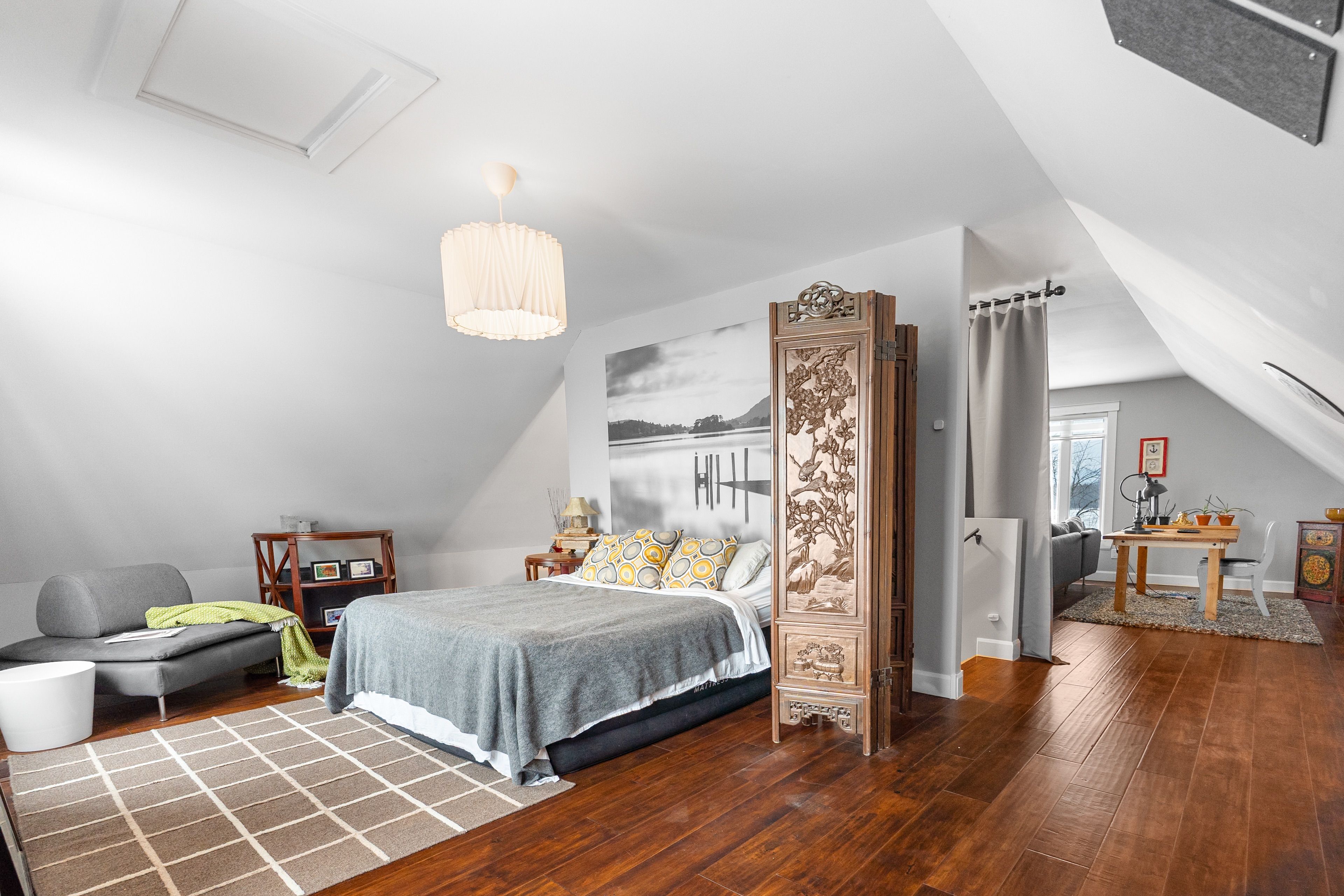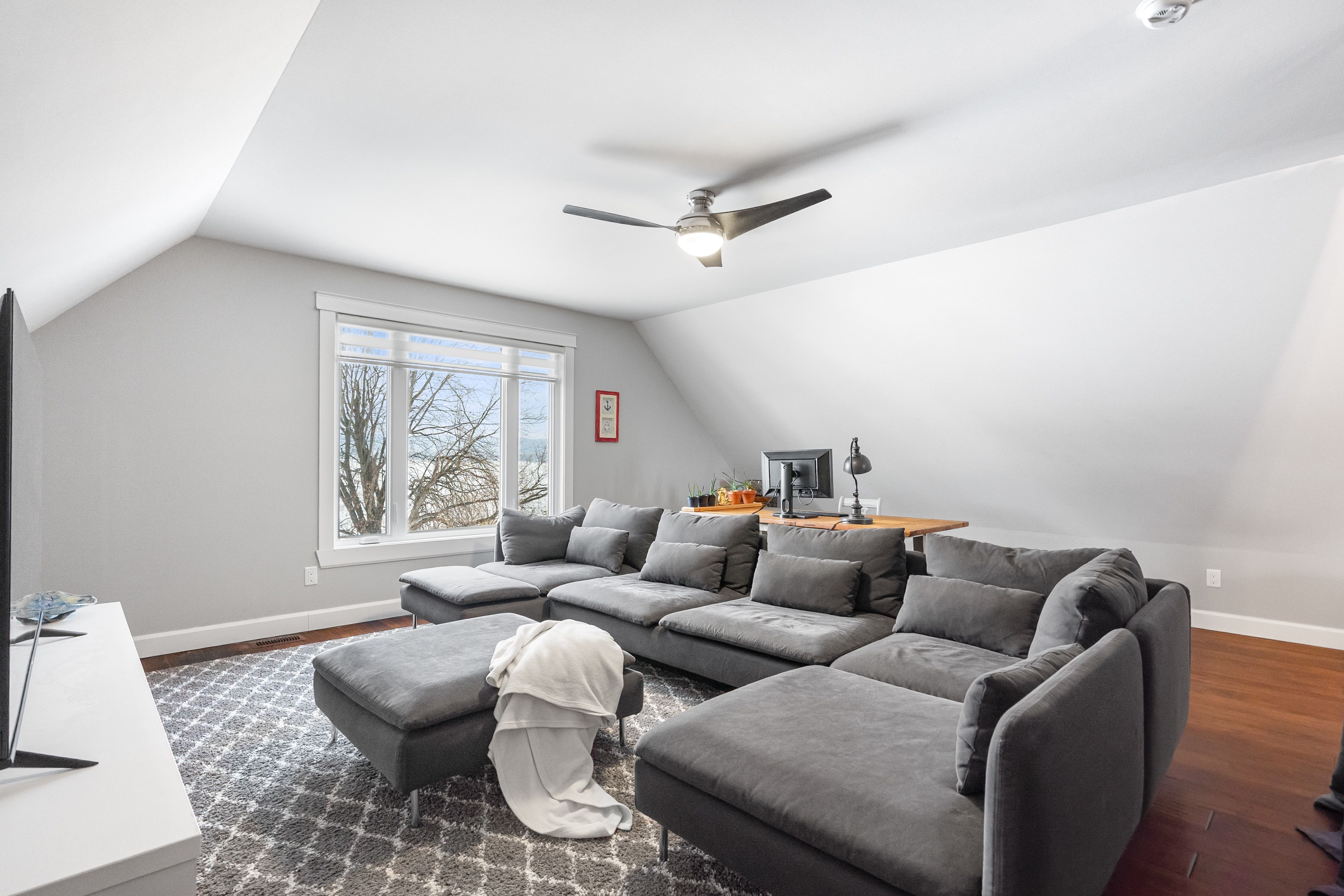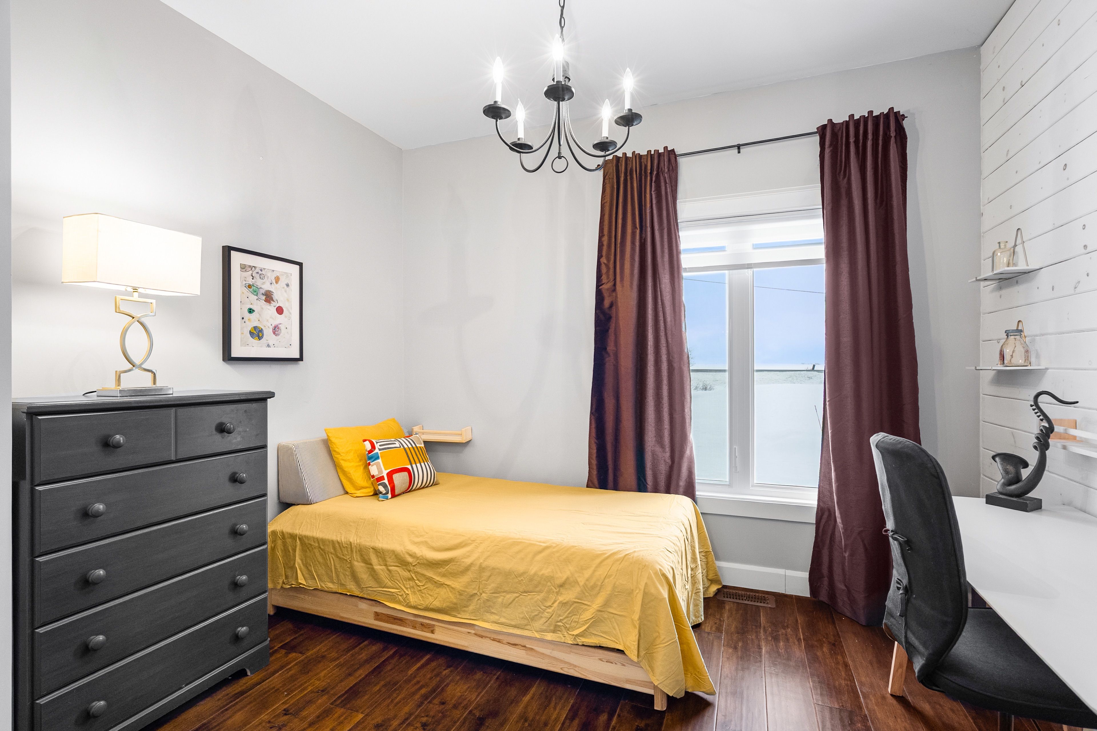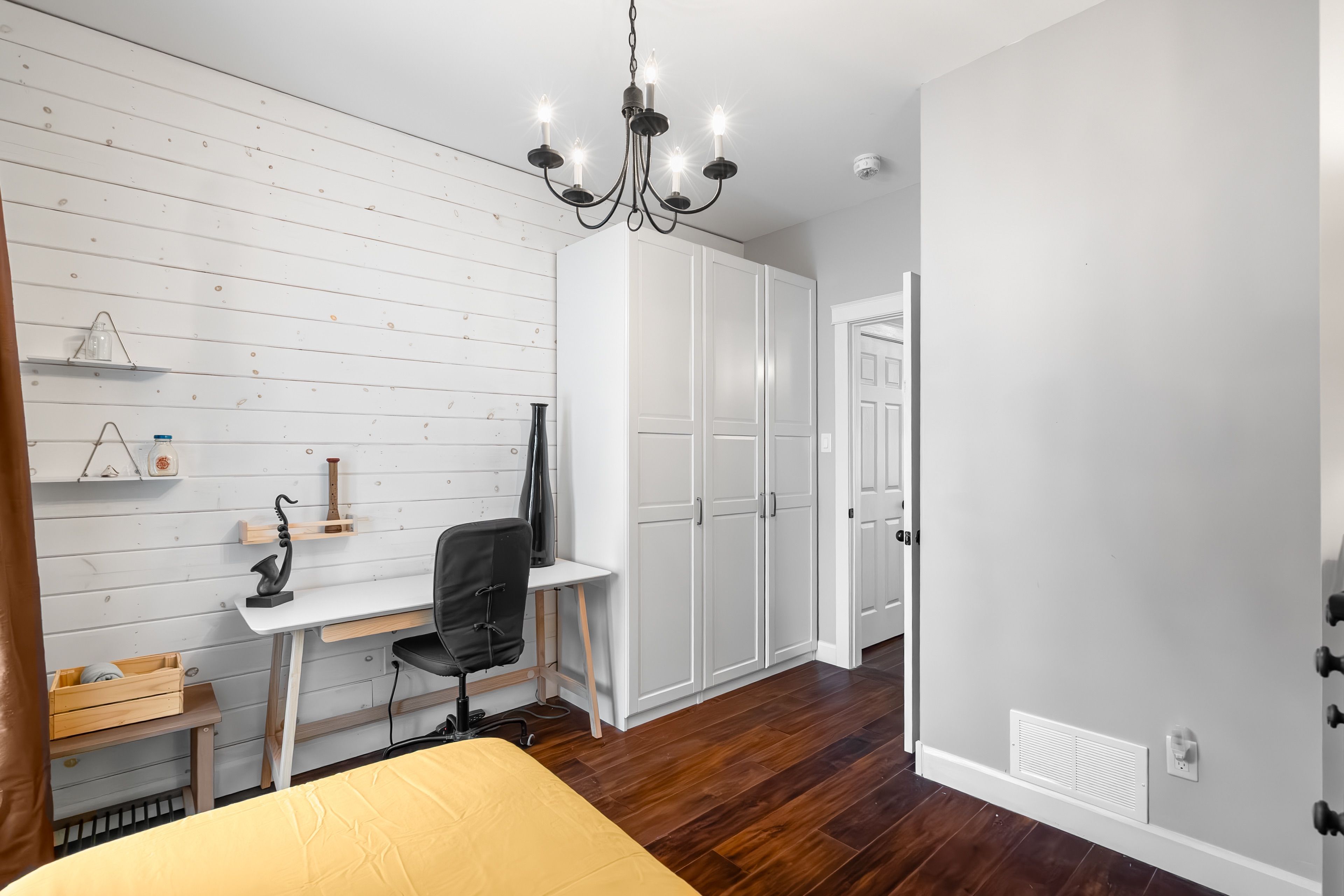 • Bright main floor with two bedrooms, a bathroom, and natural light.