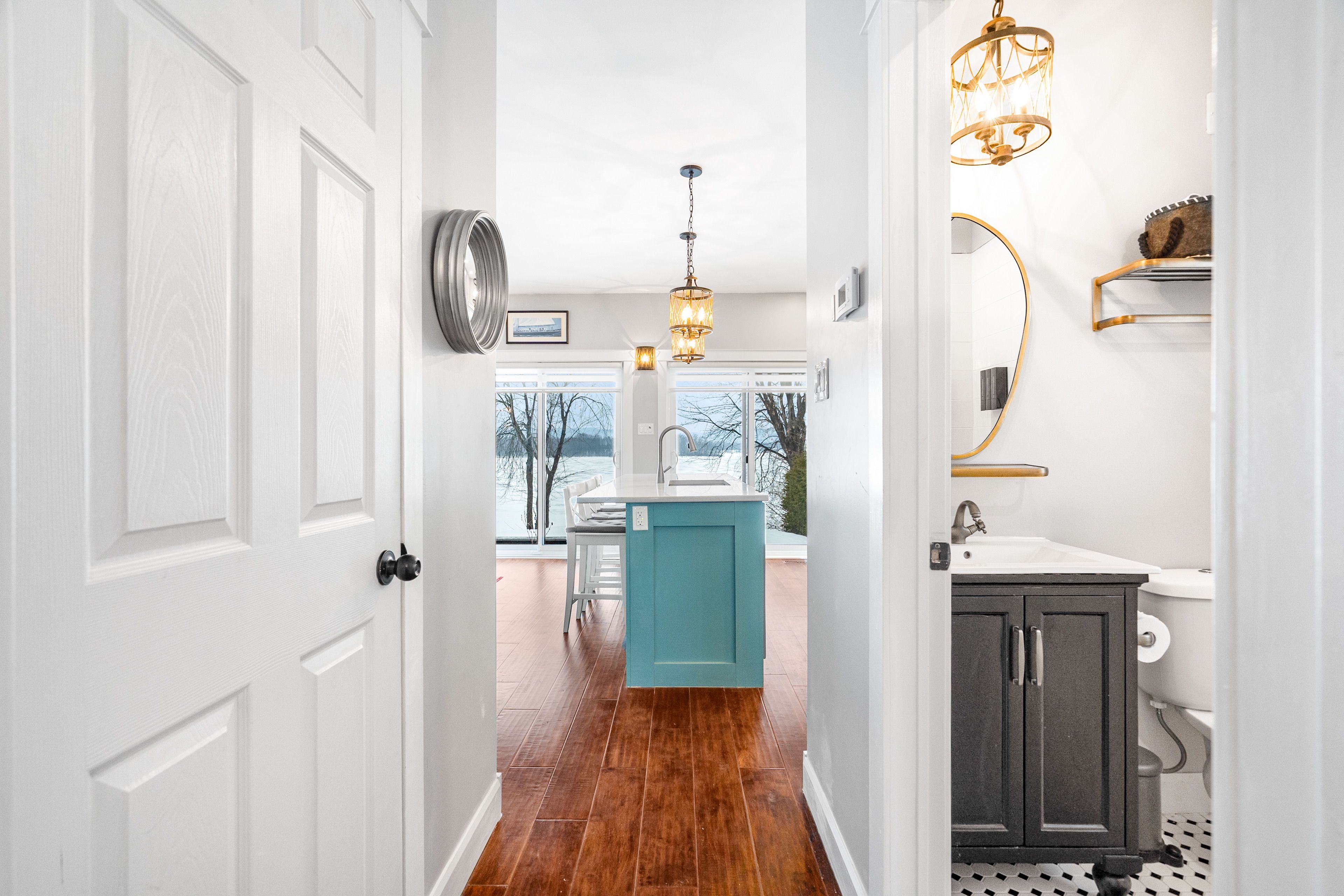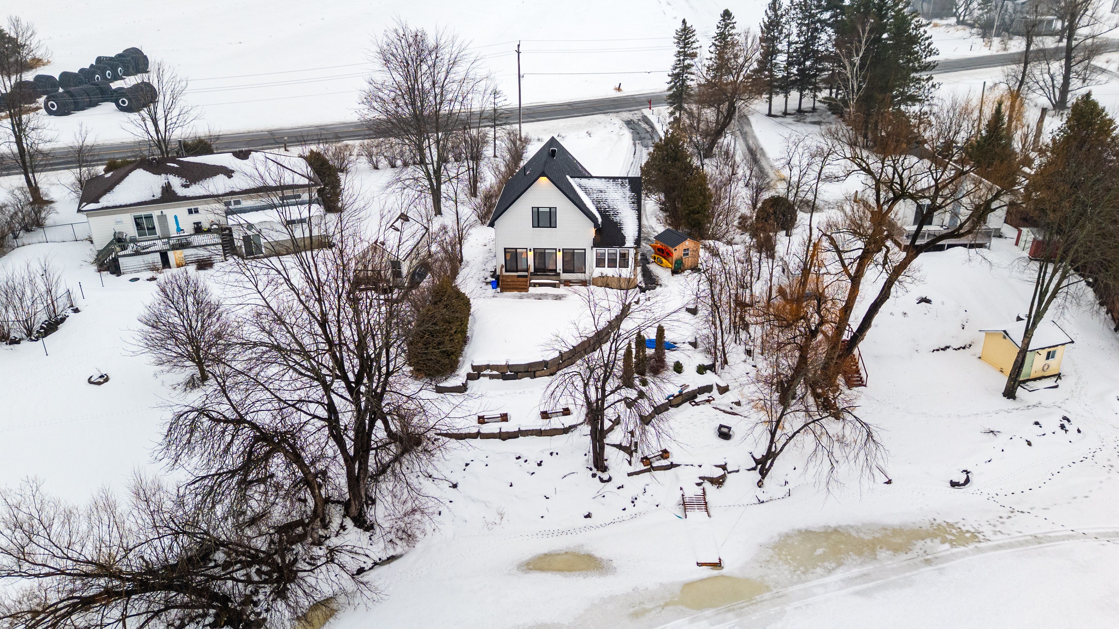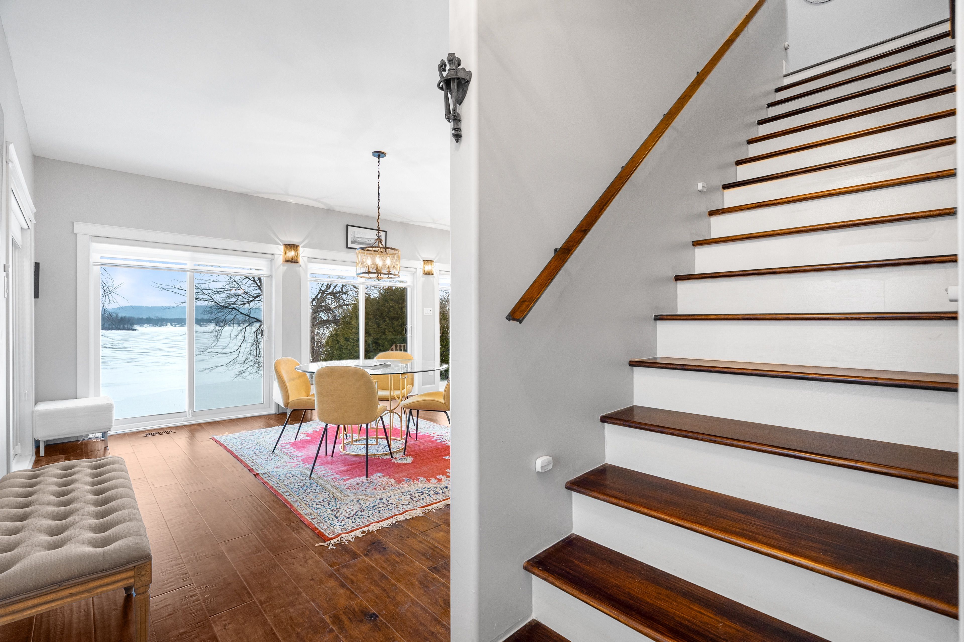 Get ready to fall in love! Wake up to calm water views and end your days in complete peace in this move-in ready two-storey waterfront home, built in 2019. The moment you step inside, you're welcomed by a bright, inviting main floor offering two bedrooms and one bathroom in a comfortable, functional layout that has been meticulously maintained. Large windows flood the space with natural light and beautifully showcase the ever-changing waterfront views. The open-concept living space features hardwood flooring throughout, a inviting dining area, a cozy sunroom with a gas fireplace, and a spacious kitchen complete with quartz countertops, stainless steel appliances, and a built-in dishwasher and microwave. Upstairs, you'll find a generous size family room and an additional bedroom perfect for guests, relaxing, or extra living space. Step outside to a private backyard featuring a tiered natural stone landscape, perfect for year-round fun, spend summer days kayaking, boating, or hosting gatherings, and winter days snowshoeing, cross-country skiing, or cozying up by the fire. Located near the hospital, shopping, and everyday services, and just one hour from ottawa and montreal, this property offers the perfect blend of waterfront tranquility and convenience, with excellent potential as an airbnb or short-term rental, attracting guests seeking a relaxing waterfront escape.