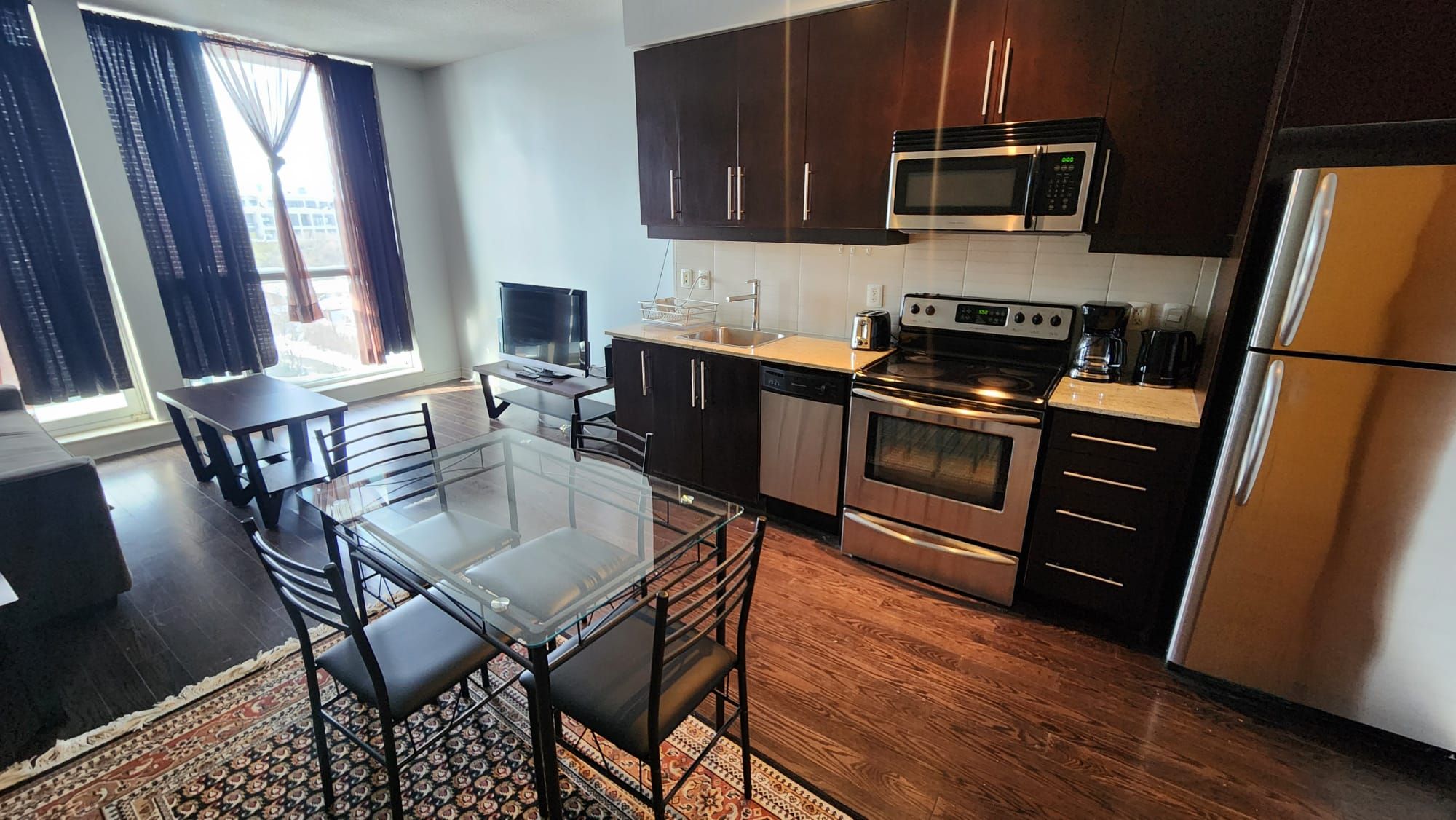 • Bright open-concept bachelor studio fully furnished for convenient living.