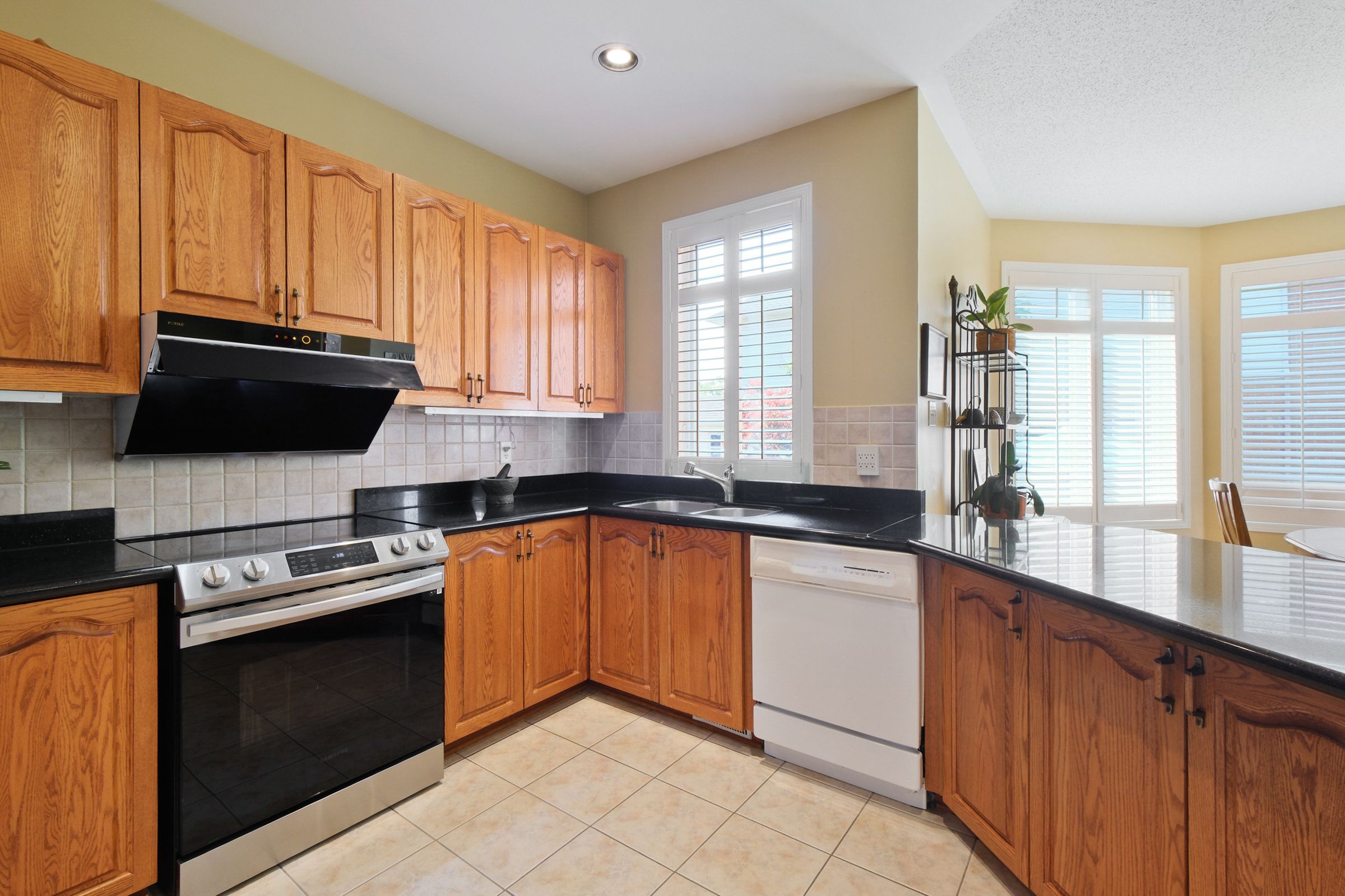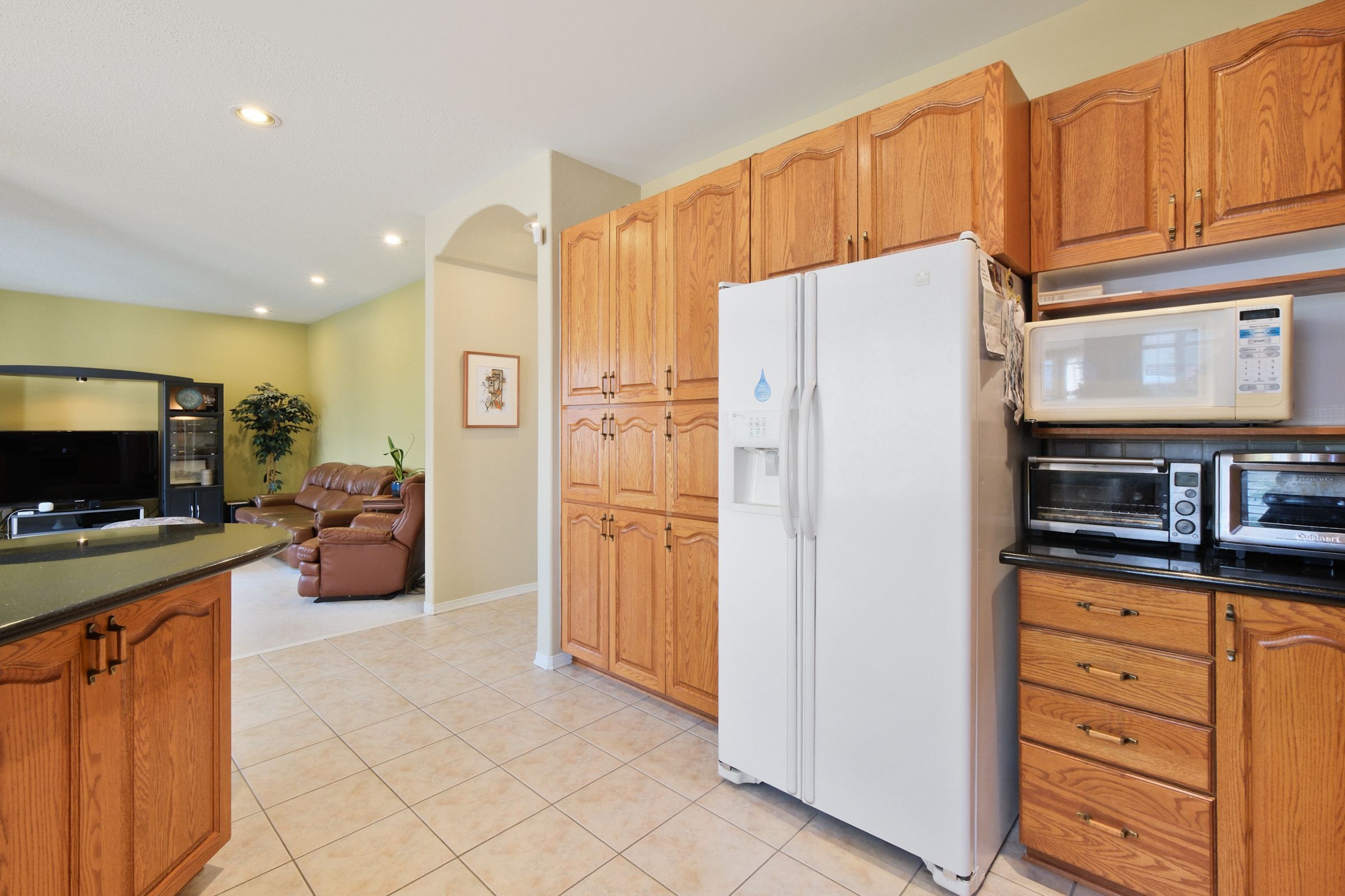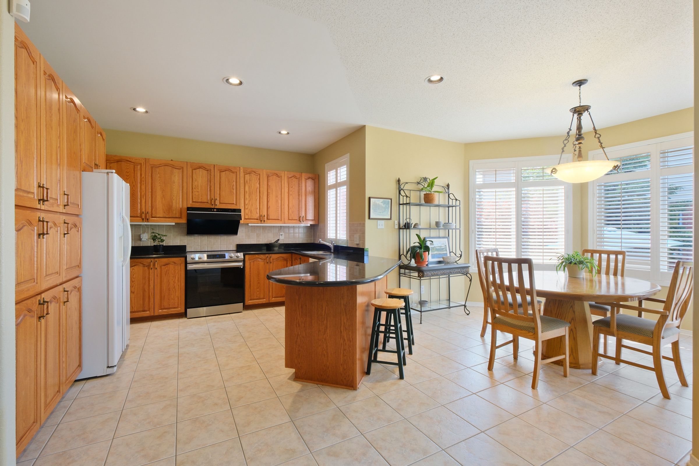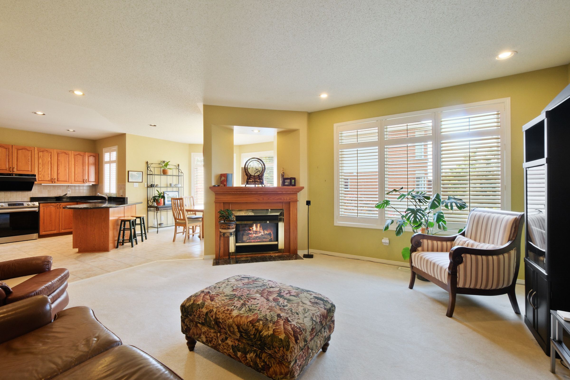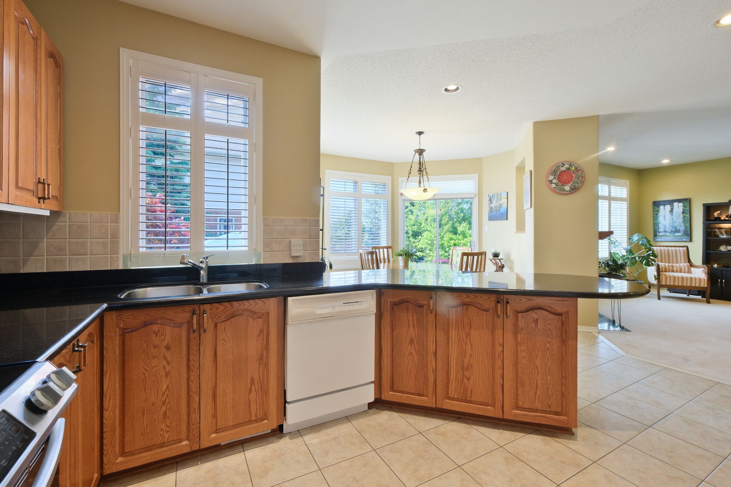 • Open concept kitchen with granite countertops and high-end appliances.