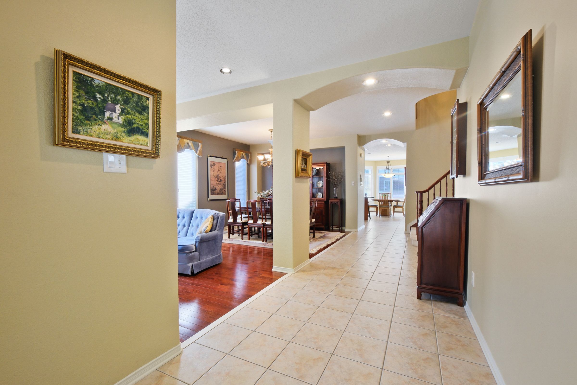 2885 brigham way. Original owners have maintained this lovely home since new. Enlarged minto 'naismith' model. (over 3000 sq ft from builder's plan) the primary bedroom was enlarged with a 'retreat' or sitting area above the breakfast nook. Window added in the powder room and exterior door added in the mudroom. Beautifully appointed with ceramic tile from the front entry extending through to the kitchen, breakfast nook, powder room and main floor laundry room. (note: laundry chute) 9 foot ceilings through the main level with hardwood flooring in the living and dining room. Open concept kitchen has granite counter tops and a high end exhaust fan for the cook in the family. Main floor family room is carpeted and has a gas fireplace. Many pot lights added throughout the home. Also note the hunter douglas shutters. Luxurious primary bedroom with a sitting area, walk-in closet and ensuite offering a soaker tub, separate shower and 2 sinks. Bedroom 2 is very spacious and has a walk-in closet plus a full ensuite bathroom. Bedroom 3 has a walk-in closet and bedroom 4 has a double closet. Main bathroom has a laundry chute directly to the main floor laundry. Fully finished basement has a huge family room with laminate flooring and ports for speakers. 2 hobby rooms or dens. (one with french doors) plus a full bathroom with a jacuzzi tub. Roof shingles approximately 10 years, hwt 2012, 200 amp panel, insulated garage door, gas dryer, wrought iron fencing and interlock patio. Note pot lighting in the porch and upper eaves! *** 24 hourirrevocable on all offers ***some photos have been virtually staged.***