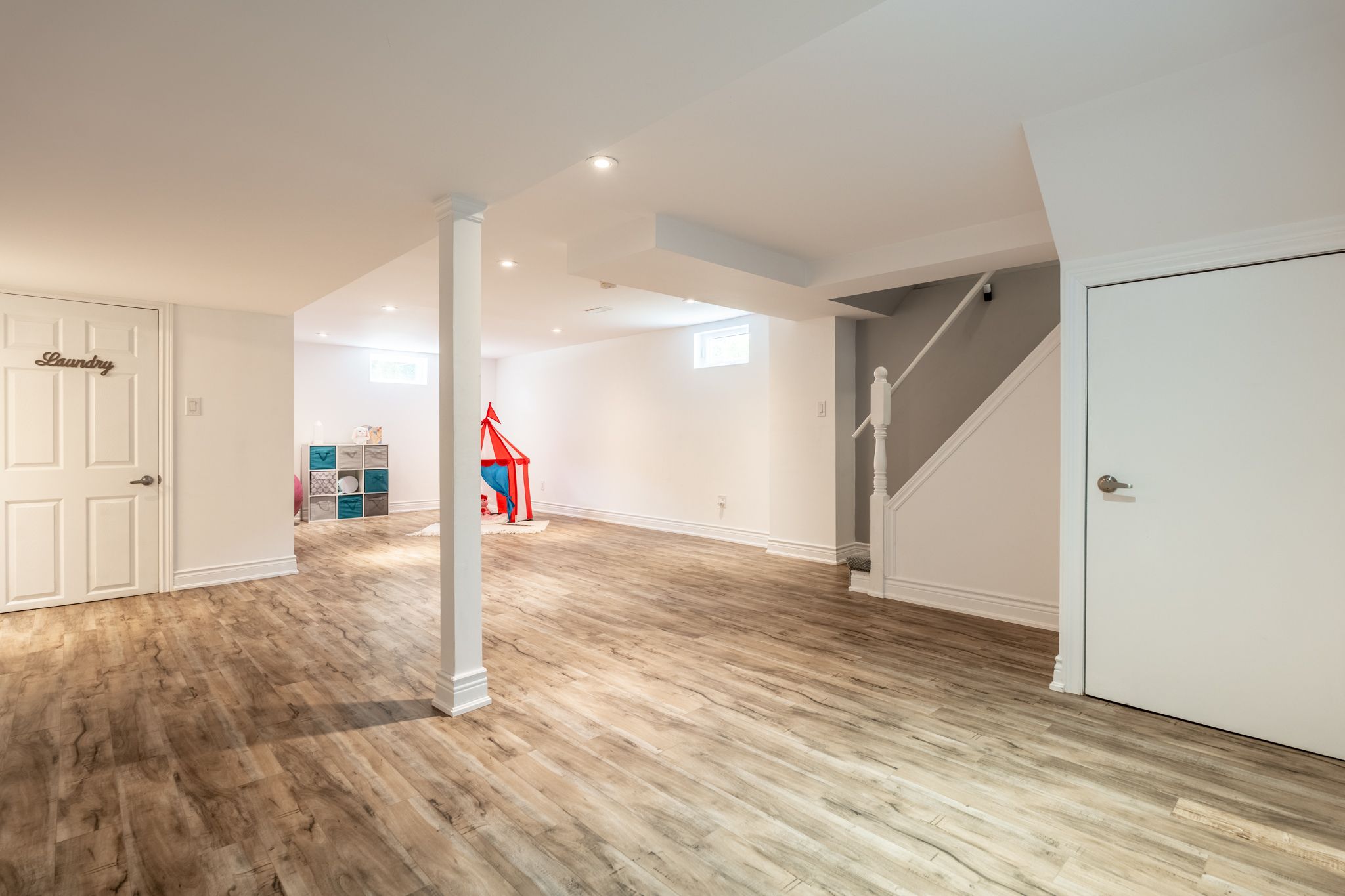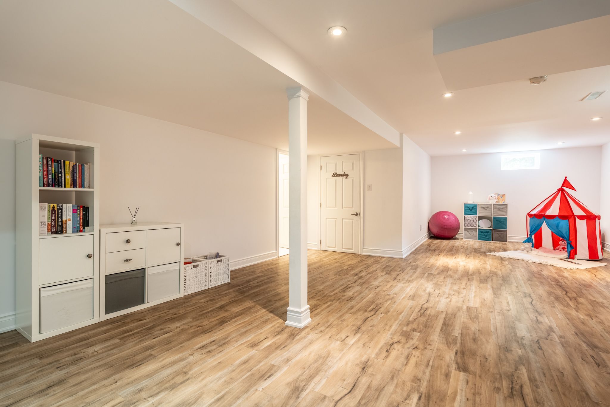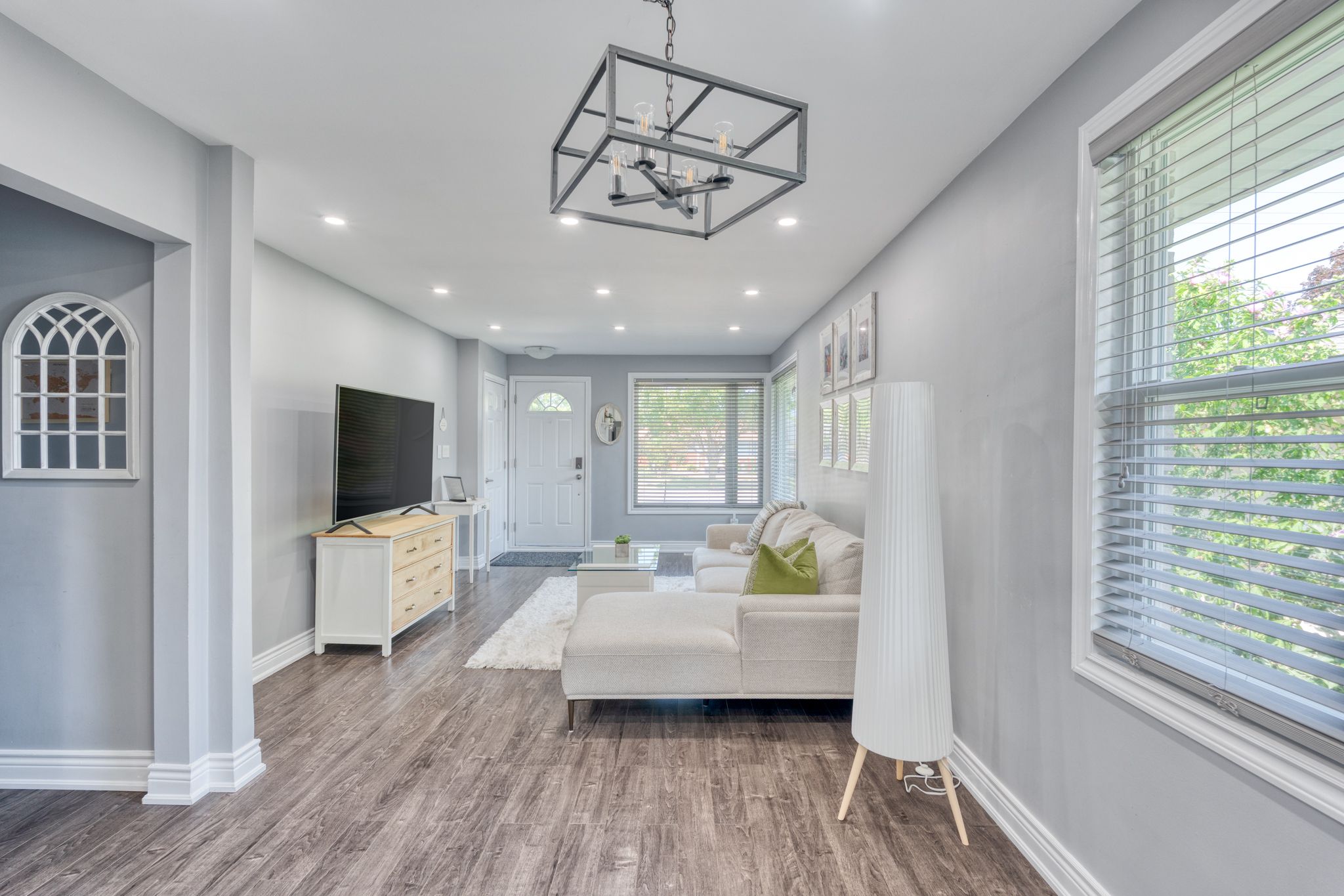 • Bright living room with new pot lights, perfect for gatherings.