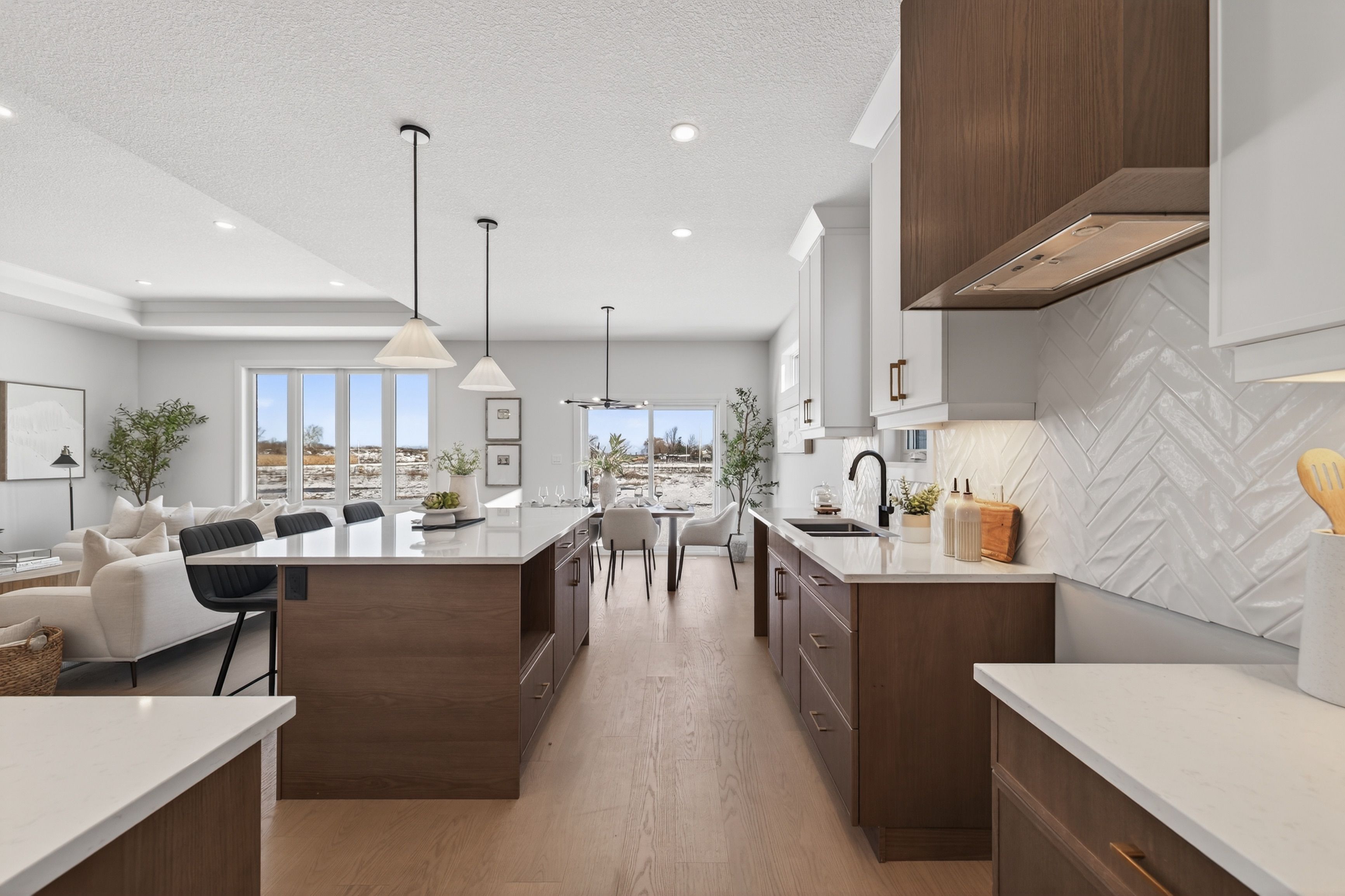 • Open-concept main floor with a gourmet kitchen and large island.