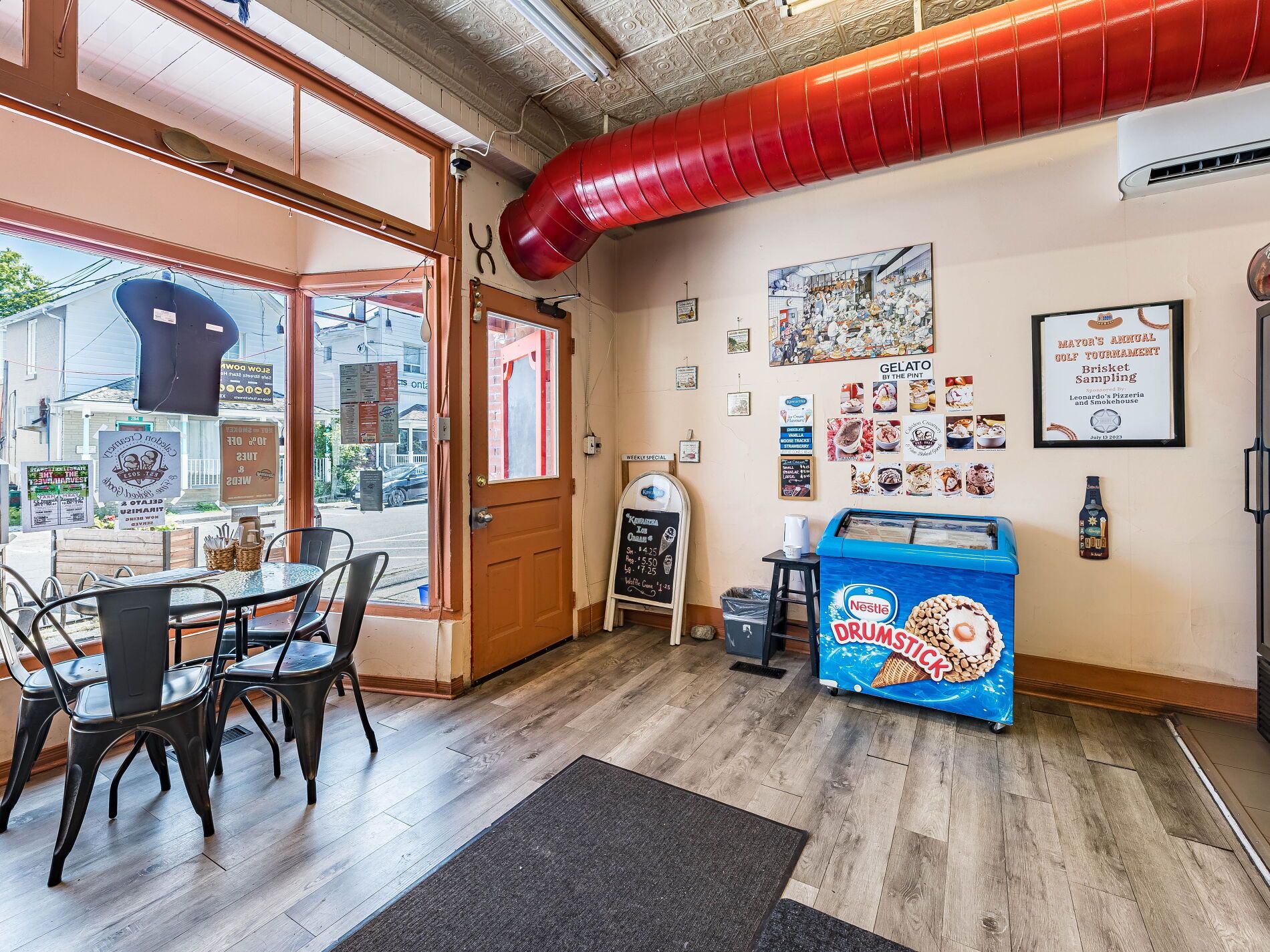 Exceptional opportunity for a food lover to own a long established, turnkey take out and eat in business in the heart of schomberg. Situated at hwy 9 & 27, this establishment has served the families of king township since 1987 with its famous pizza and wings and expanded in 2020 as the township's only smokehouse offering brisket, pulled pork, bbq chicken and more. As part of king township, this business benefits from local demographics showing median household income (2021) of $150,000-$160,000, compared to nearby newmarket where household median income was $100,000. Located steps from the trisan community centre and schomberg fairgrounds, this high visibility operation has strong foot traffic, street parking plus 1-3 private rear spaces, solid financials of approx. $5,000/week in sales, low overhead, and a competitive $2,100/mo (+hst) gross lease through 2026 with only 3% annual increases to 2030; features include 800 sq. Ft. Main floor with 10 ft fire suppression hood, walk in cooler, basement storage, indoor seating for 10-14 plus a 6 month seasonal patio for 12-14, along with a branded website, online ordering, delivery services, part of local school lunch program and excellent customer reviews. Sale includes experienced staff, full recipe and operations manual, proprietary sauces, vendor contacts, and safecheck certification-making this a rare chance to acquire a thriving, one of a kind schomberg staple with strong household income demographics and outstanding growth potential for an owner operator or investor.