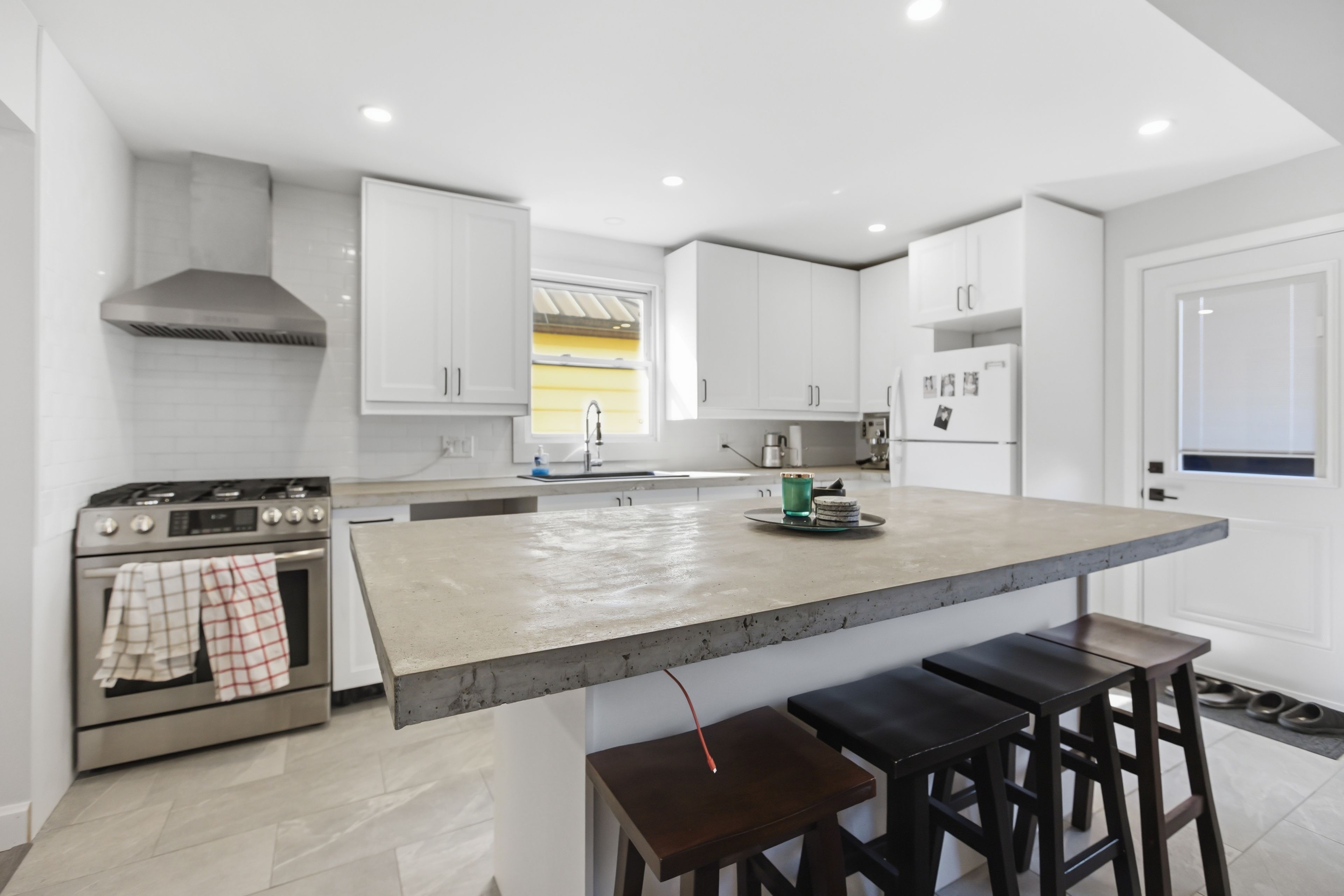 • New kitchen cabinetry, countertops, and island for modern cooking.