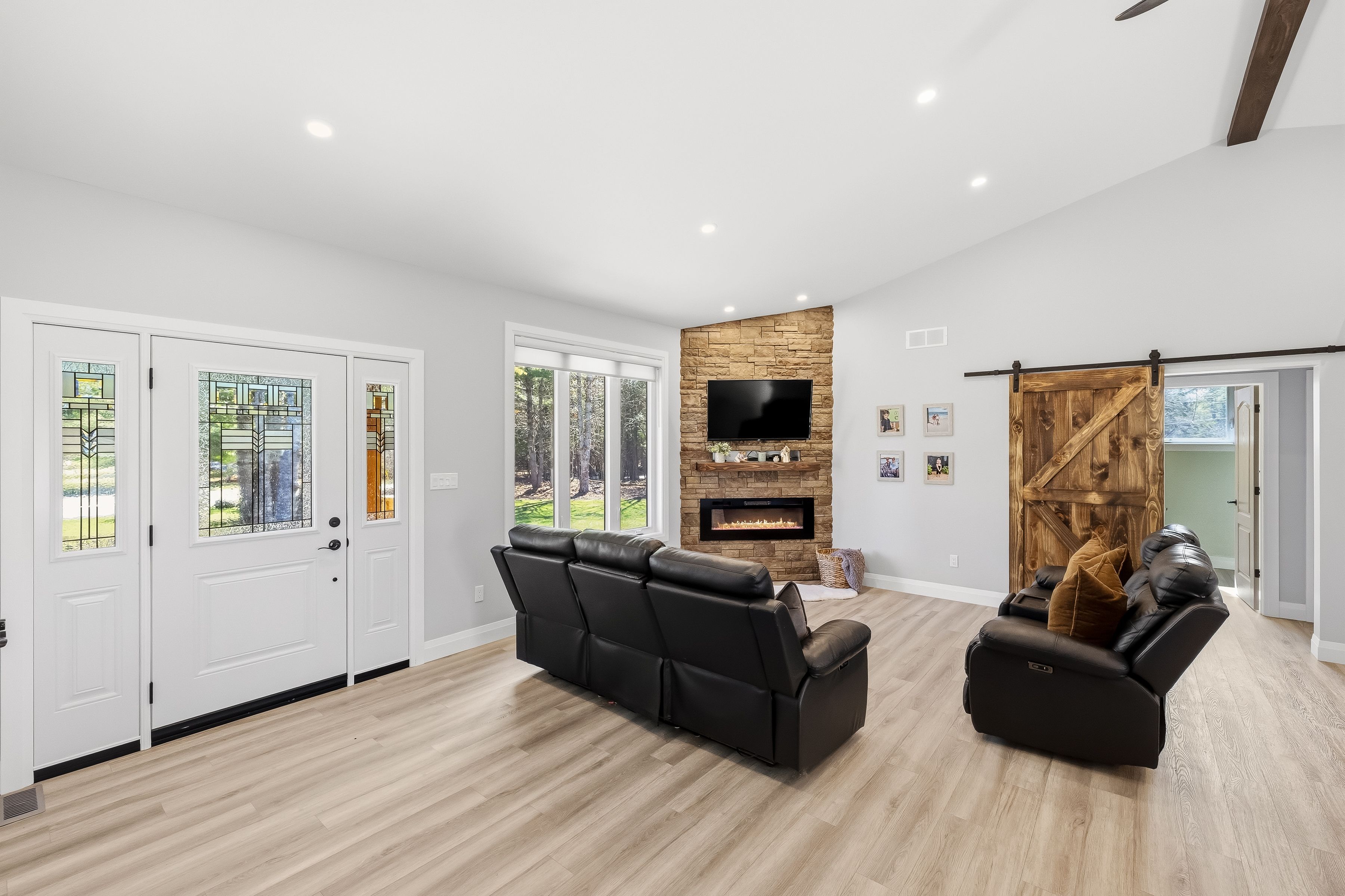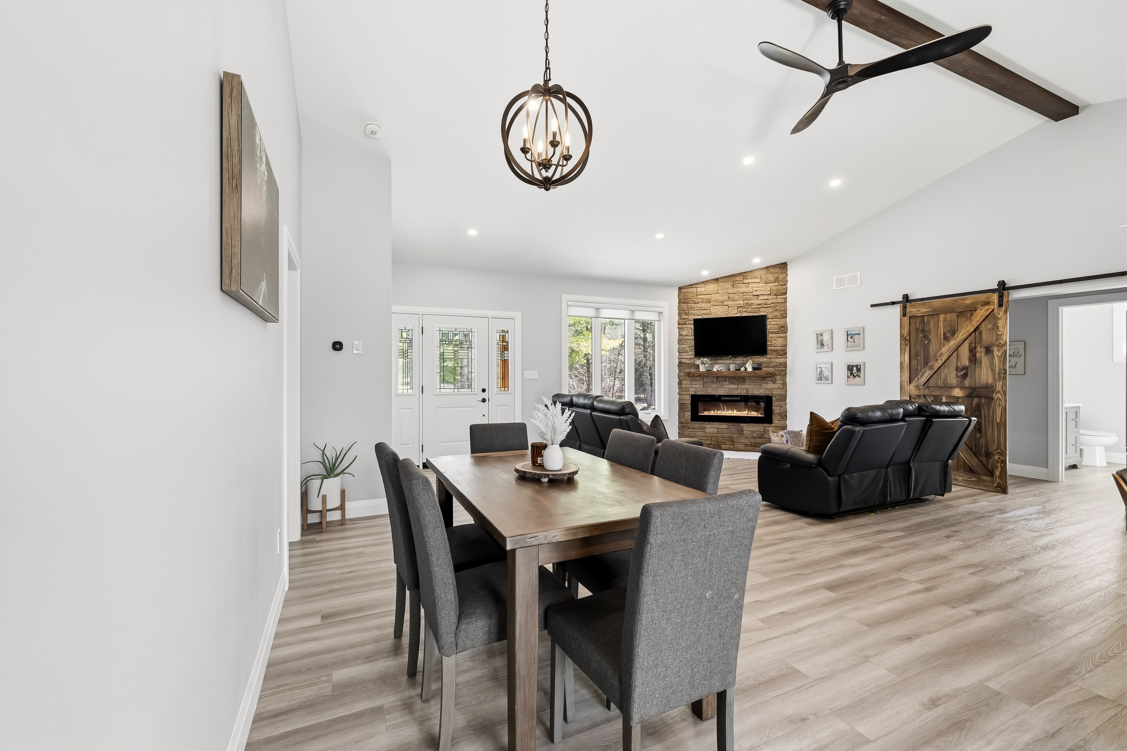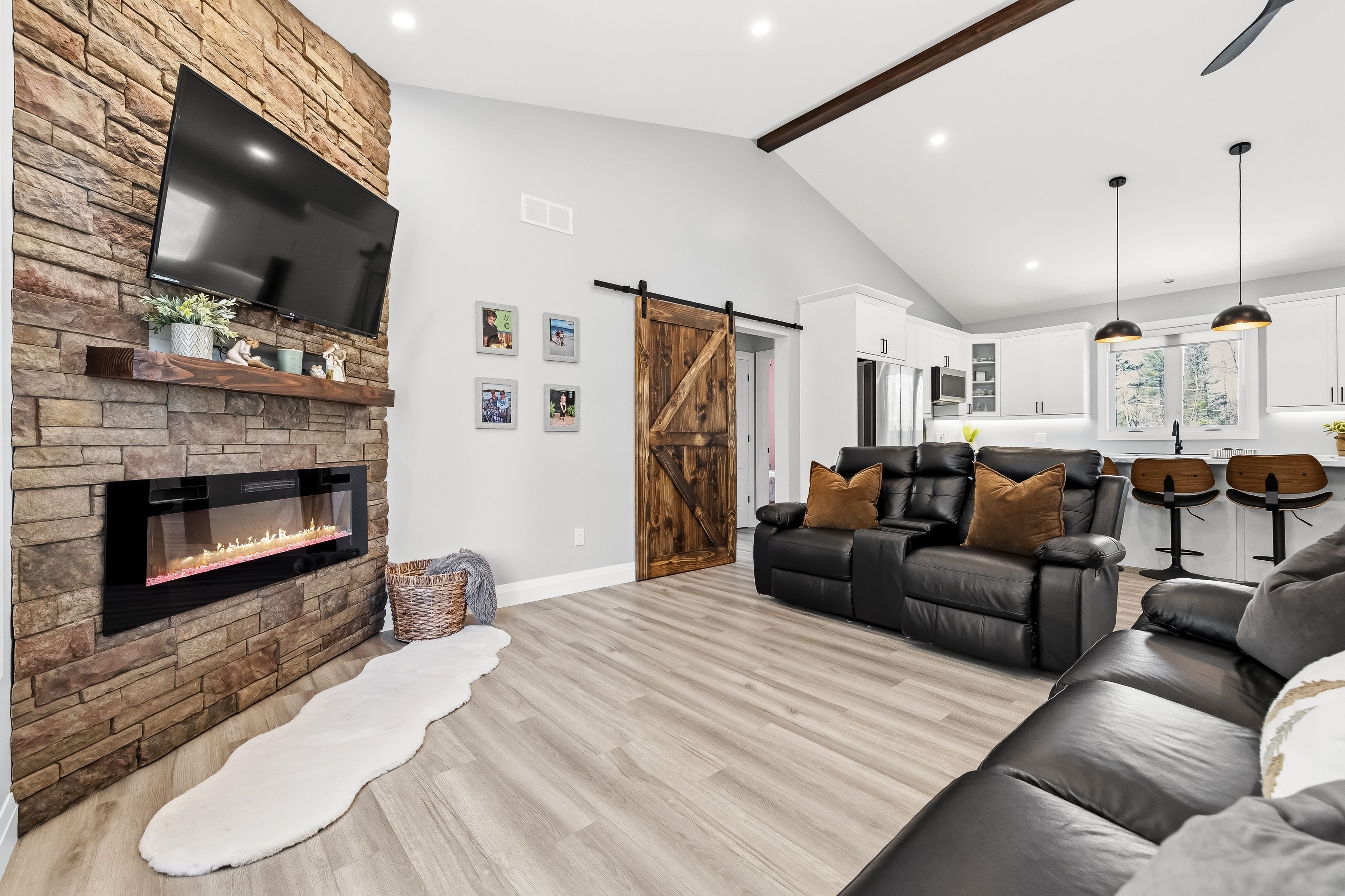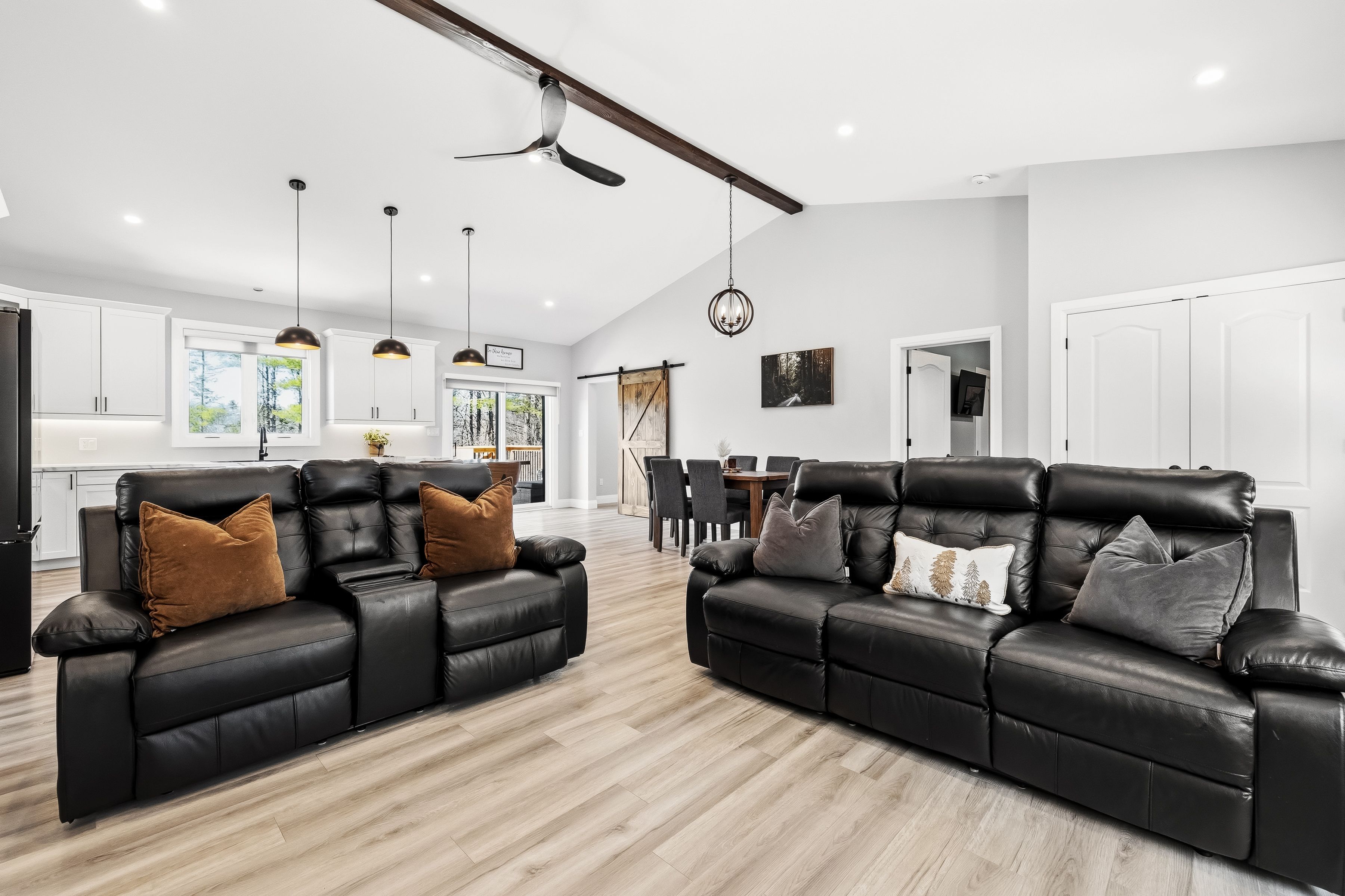 • Open-concept living area with impressive vaulted ceilings for spaciousness.