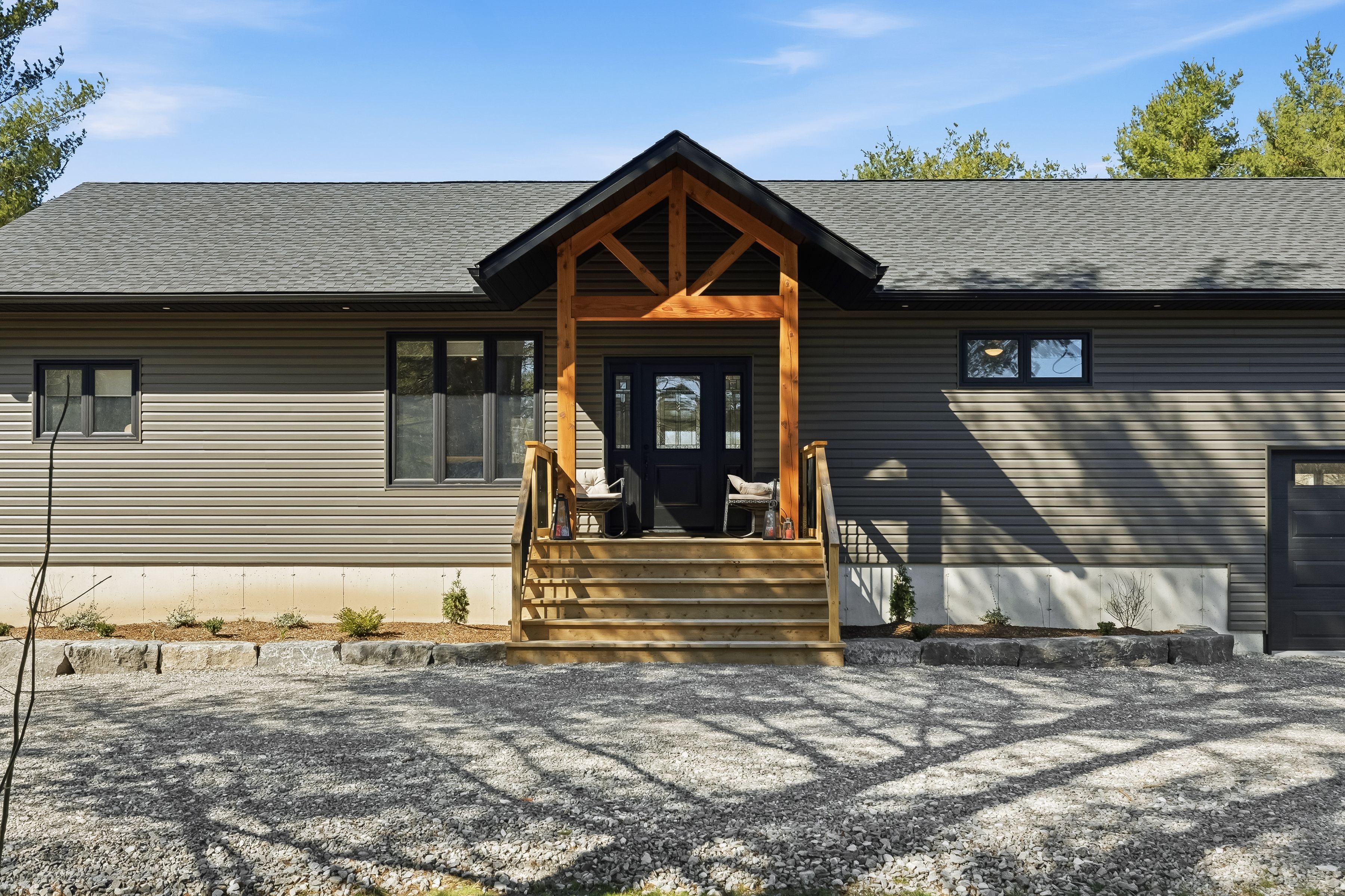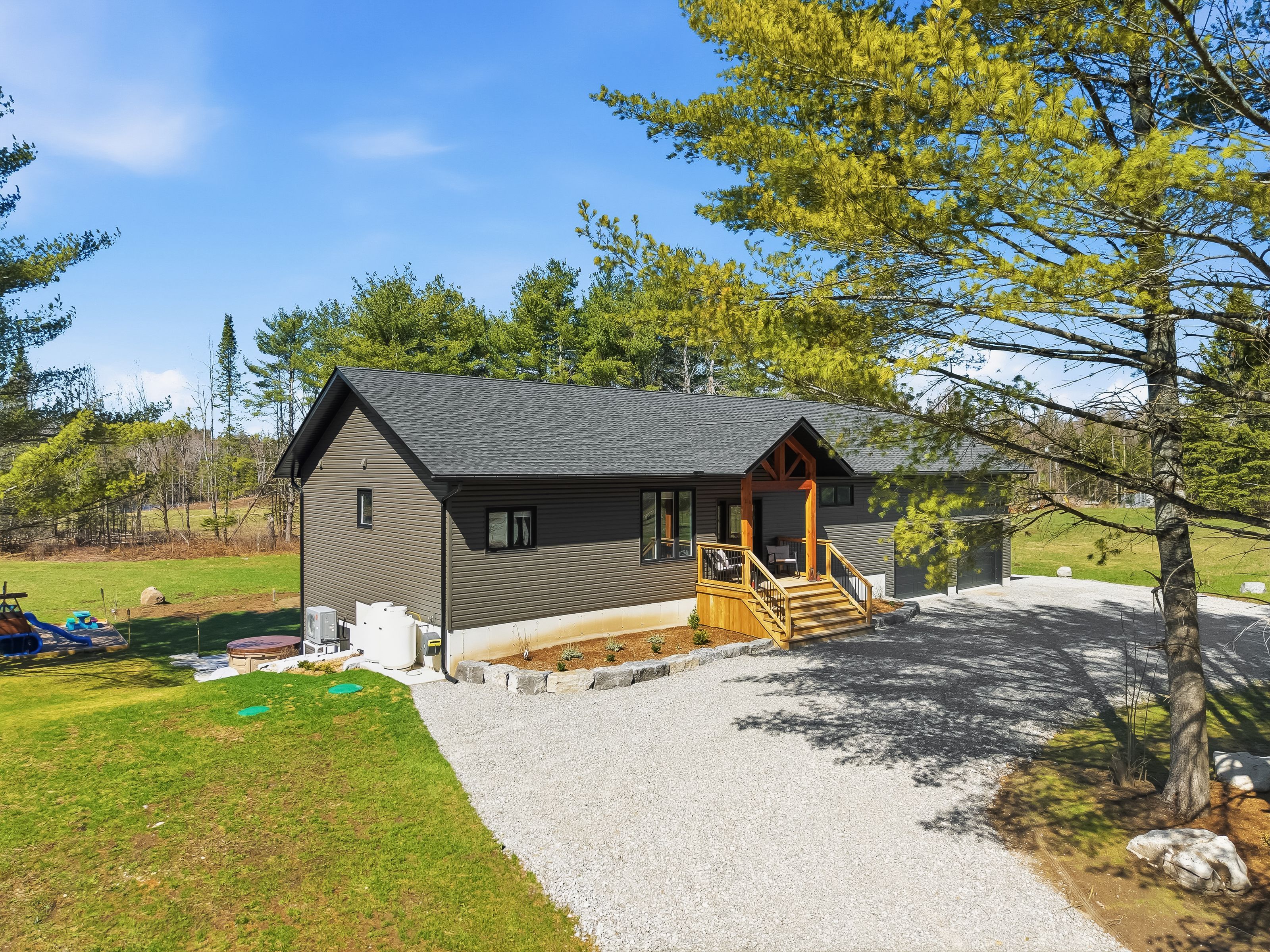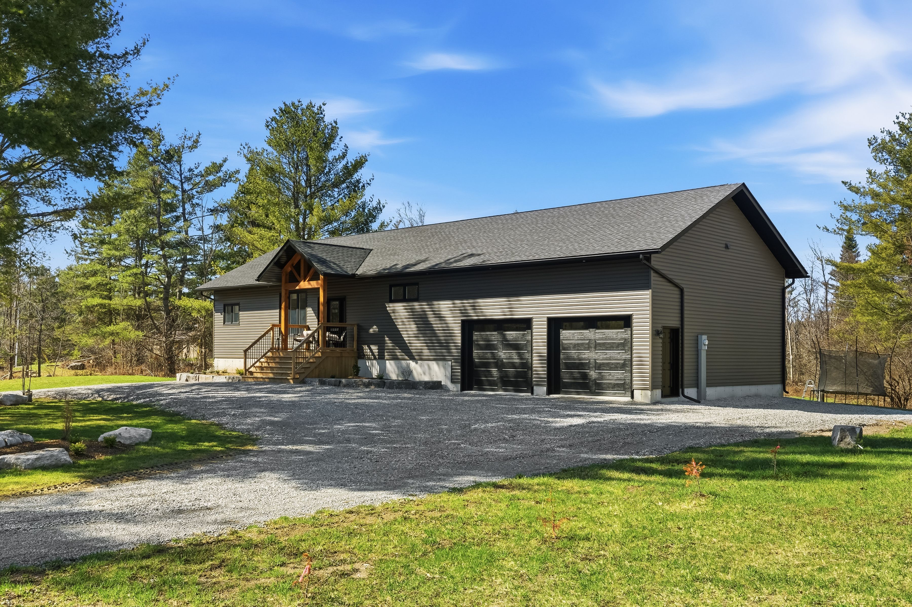 • Custom-built bungalow located on a private country lot with mature trees.