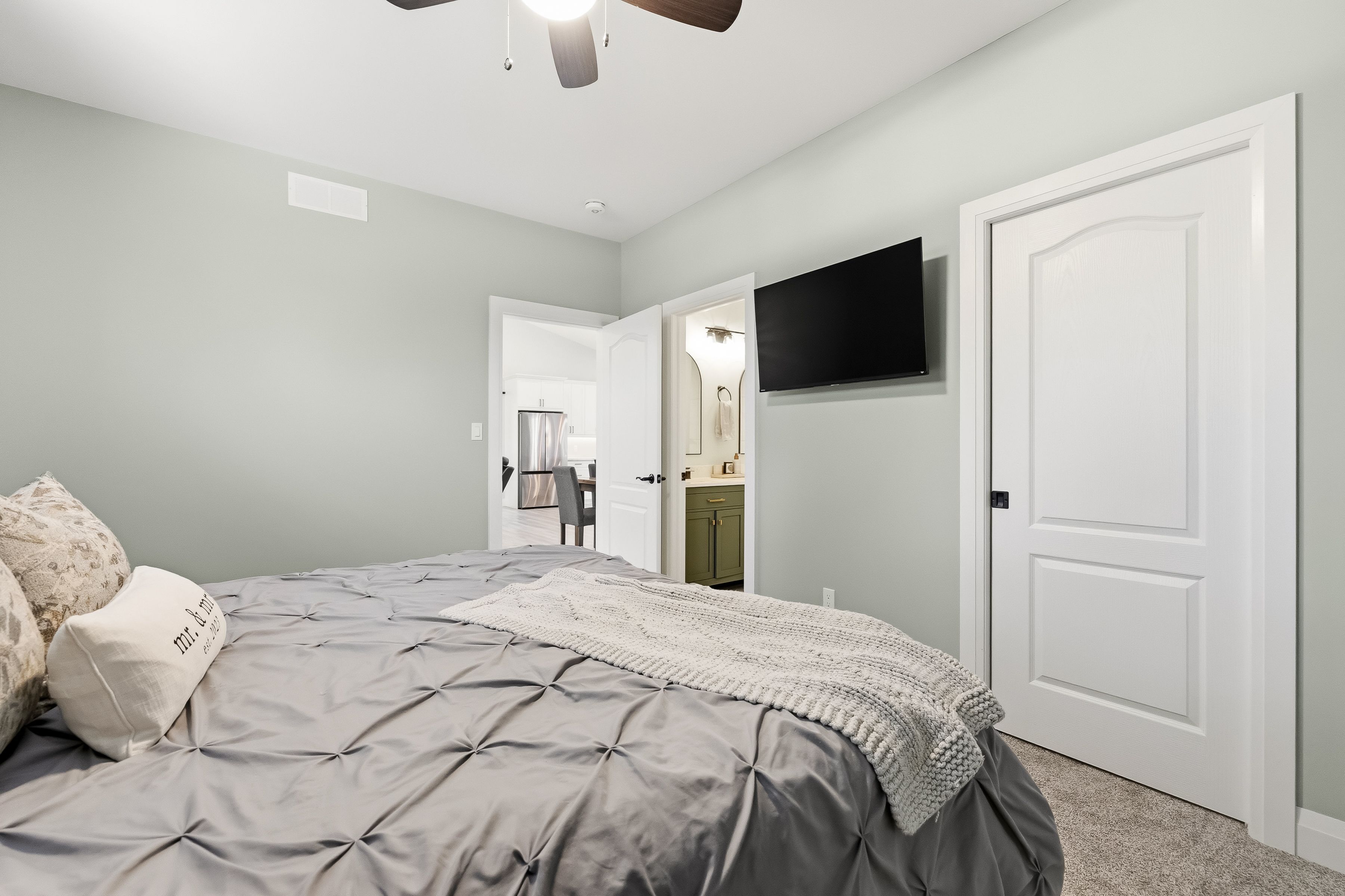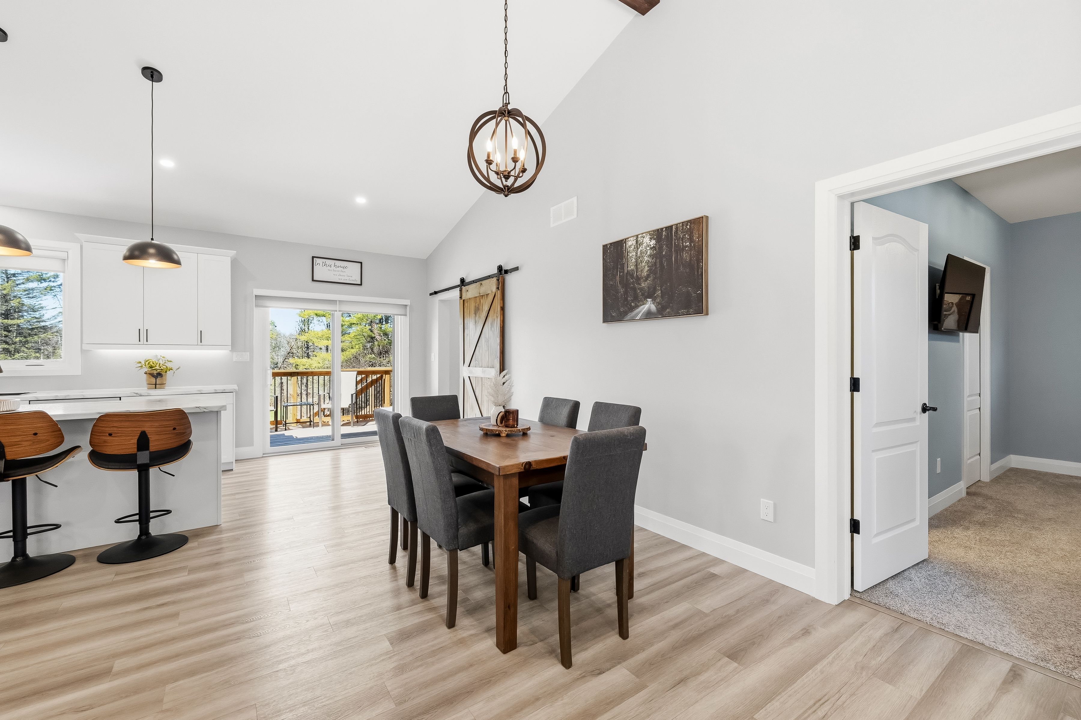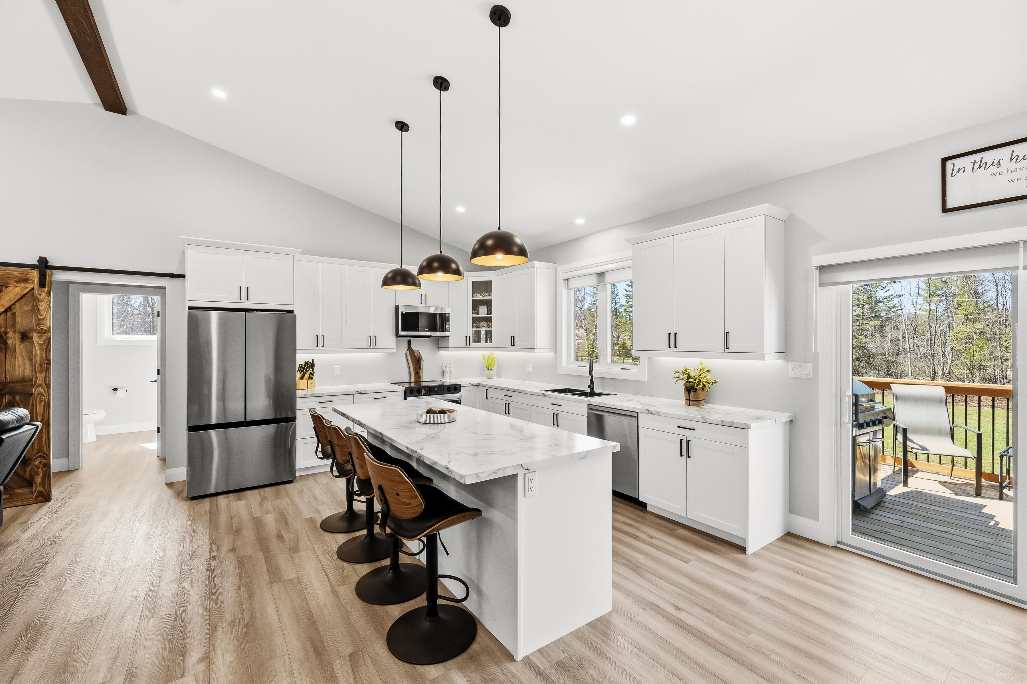 • Well-appointed kitchen with center island and patio doors to the deck.