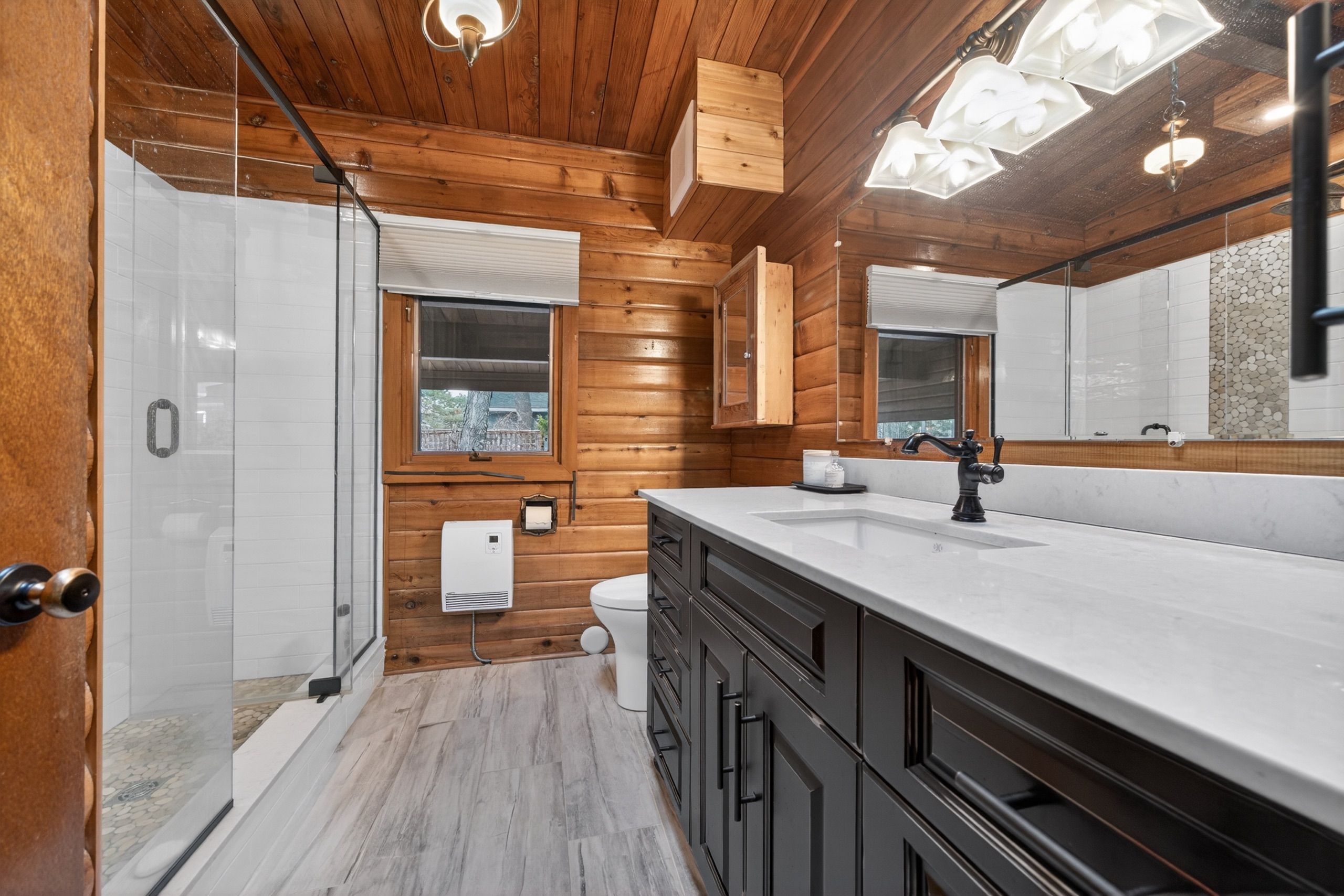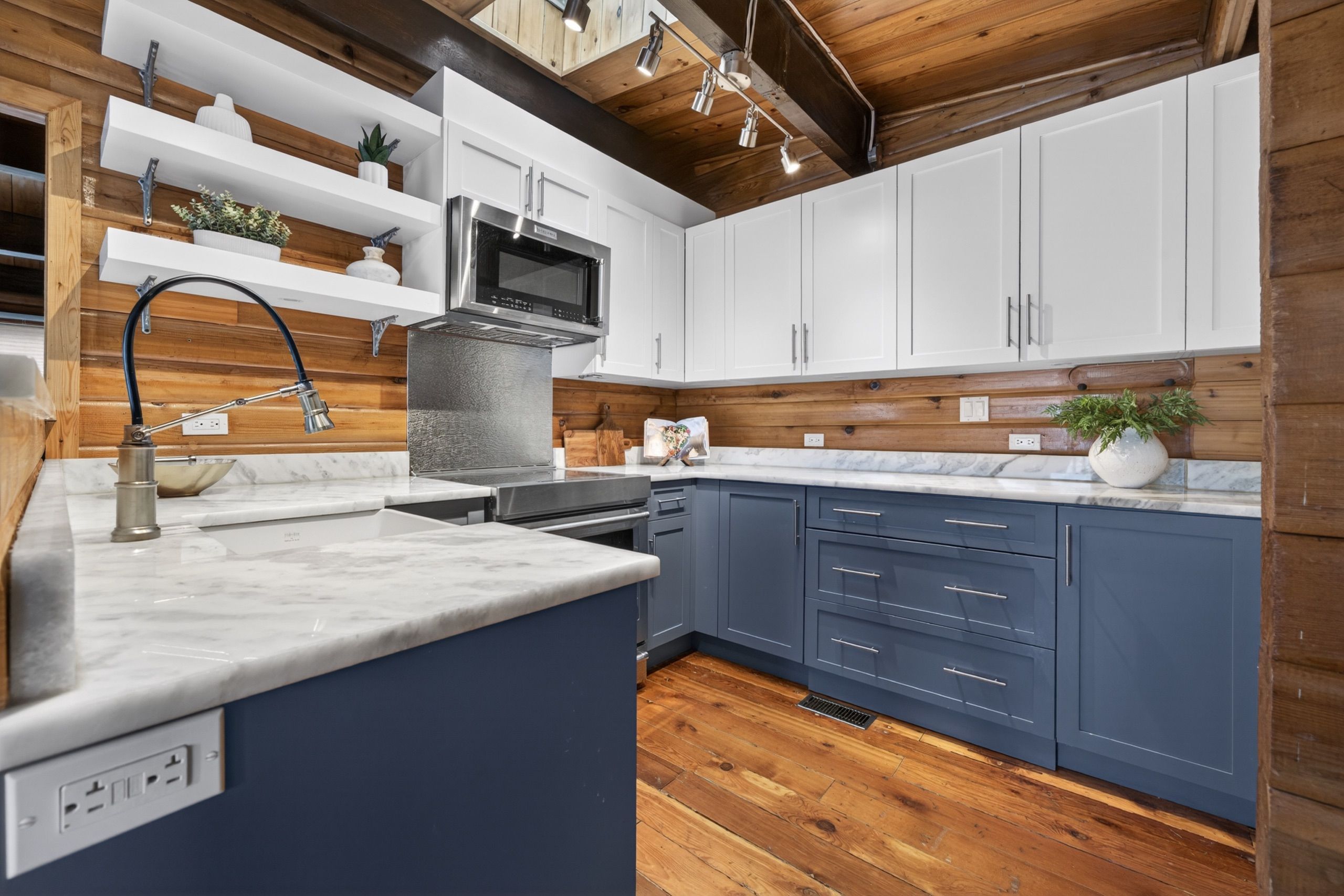 • Warm wood accents and craftsmanship give the home a cozy retreat feel.