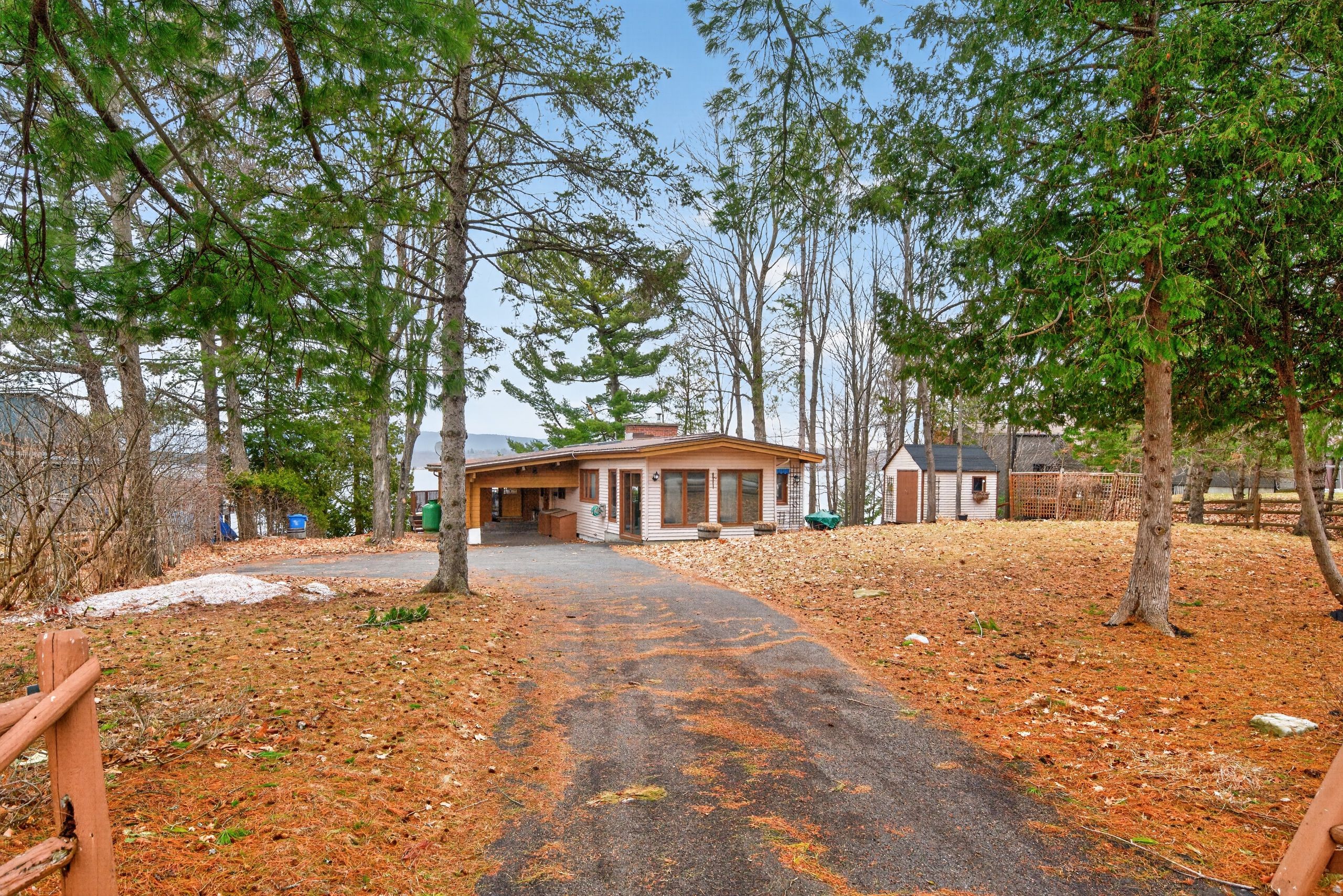 Open house sunday 2-4pm. Exceptional retreat w/warm wood accents throughout interior, positioned with unobstructed water views on a premium in the ultra-private and sought after majestic dunrobin shores... Where every day feels like an escape to nature's most peaceful and inspiring landscapes! From the moment you open the door, the craftsmanship and warmth of the home are unmistakable, with its rich cedar, exposed beams, and inviting architectural character that blends rustic charm with modern comfort. Note the renovated kitchen and bathroom! A spectacular 37-foot deck spans the entire length of the home, offering panoramic views of the ottawa river and the gatineau hills-an ideal setting for morning coffees, golden sunsets, or gatherings with family and friends. Inside, wall-to-wall windows flood the interior with natural light, while the stunning floor-to-ceiling stone wood-burning fireplace becomes the heart of the home and a retreat year round. Numerous updates enhance the property, including a beautifully redesigned kitchen featuring sleek, modern cabinetry, stone countertops, and high-end appliances that make cooking a pleasure. A cozy four-season room which had been used as an office and a bedroom overlooks the front gardens. The walkout lower level expands your living space with a bright recreation room, bathroom, and workshop, along with a spacious patio door leading to the covered lower deck, where you can unwind rain or shine in either the soft tub... Ready for use... Or enjoy a quiet sitting area with a coffee and a book! Meticulous landscaping, mature trees, and thoughtfully curated gardens surround the entire property, creating a sense of tranquility and privacy rarely found so close to city conveniences. Located on prestigious barlow crescent-one of dunrobin's most sought-after addresses-this home stands as one of its finest offerings, merging the very best of country living with easy access to every amenity. 20 minutes to kanata high tech!
