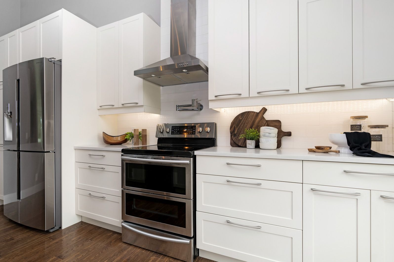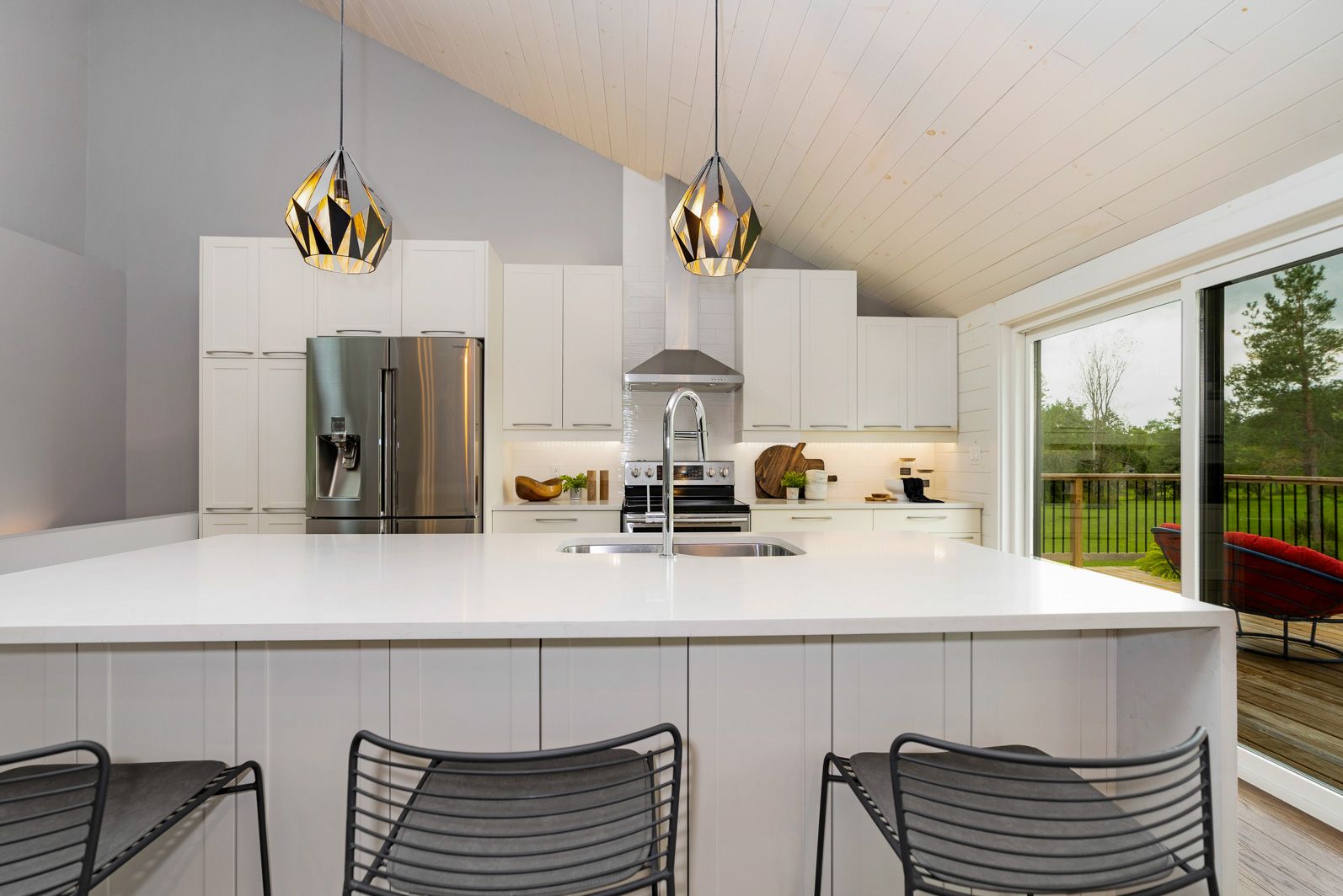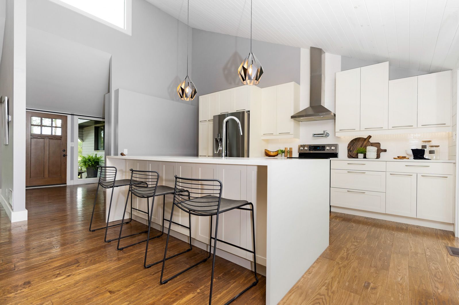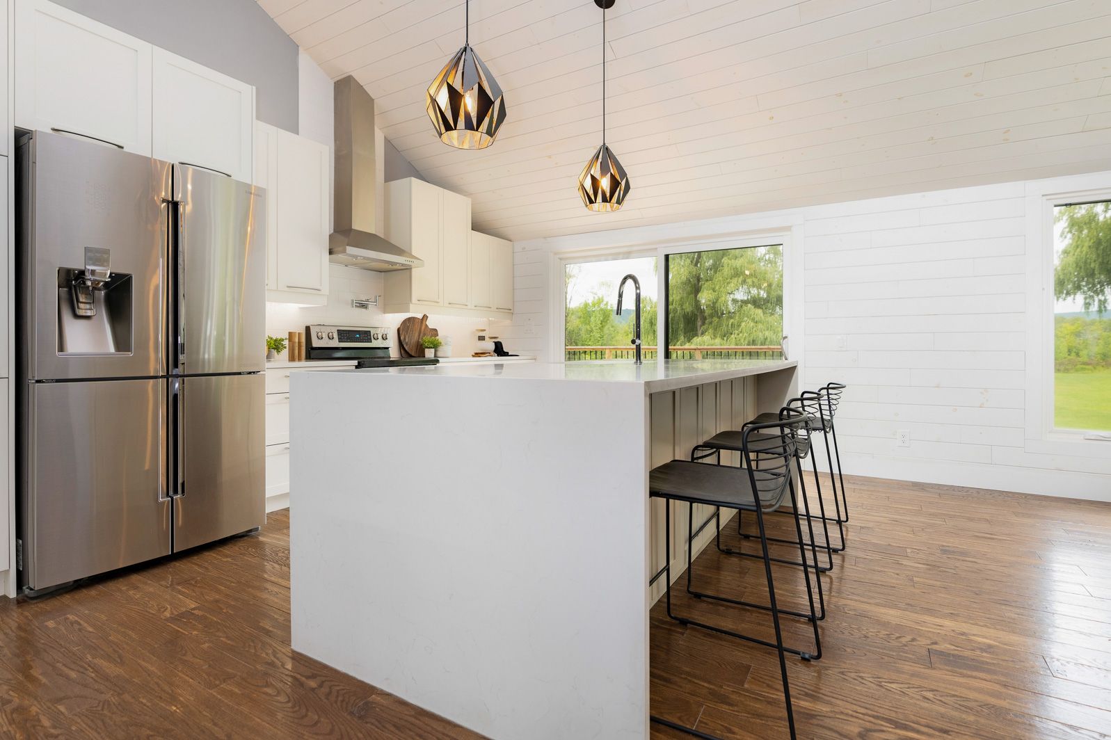 • Enjoy a large kitchen island with vaulted ceilings for a modern feel.