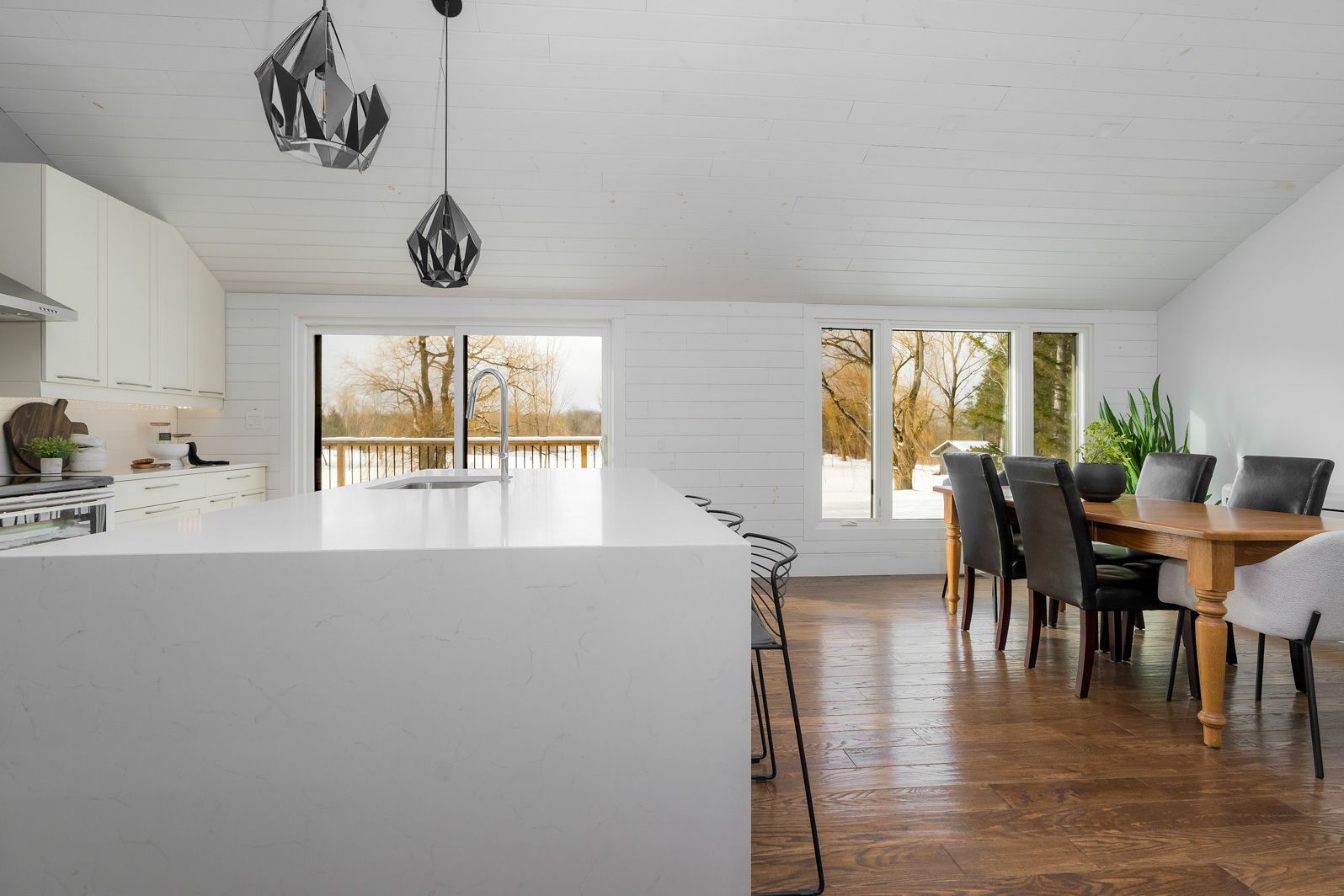 Location! View! 3+ acres! Considered the top 3 must haves. You will appreciate the value in your 3 bedroom 3 1/2 bathroom bungalow with walkout basement. A pond and two garages - attached garage with inside entry and an oversized detached garage/shop round out the attractive features of this property. The attention to detail is apparent throughout, with open concept living, the kitchen boasting a large island with waterfall counter and vaulted ceilings; spacious primary bedroom with generous ensuite bath completed with walk in shower, walk in closet and walk out to balcony. Convenient main floor laundry with inside access to attached garage and rear deck & yard. The lower level features a family room with wood burning fireplace, games room/entertainment area with wet bar, 3 pc bathroom, and office. Lower level walk out to patio area, yard, and pond. Ample storage throughout including a storage room. Rogers fibre internet makes working from home, streaming, or gaming a breeze. Propane furnace installed 2024, basement and detached garage are spray foamed insulted. Enjoy the outdoors, with breathtaking sunsets over the pond and the escarpment, or wake up with early morning sunrises on the front deck. An idyllic setting in the country minutes to collingwood and area amenities, including georgian bay, ski hills, golf courses and pickleball courts. Appreciate your new home after you check out the photos and video - visit in person!