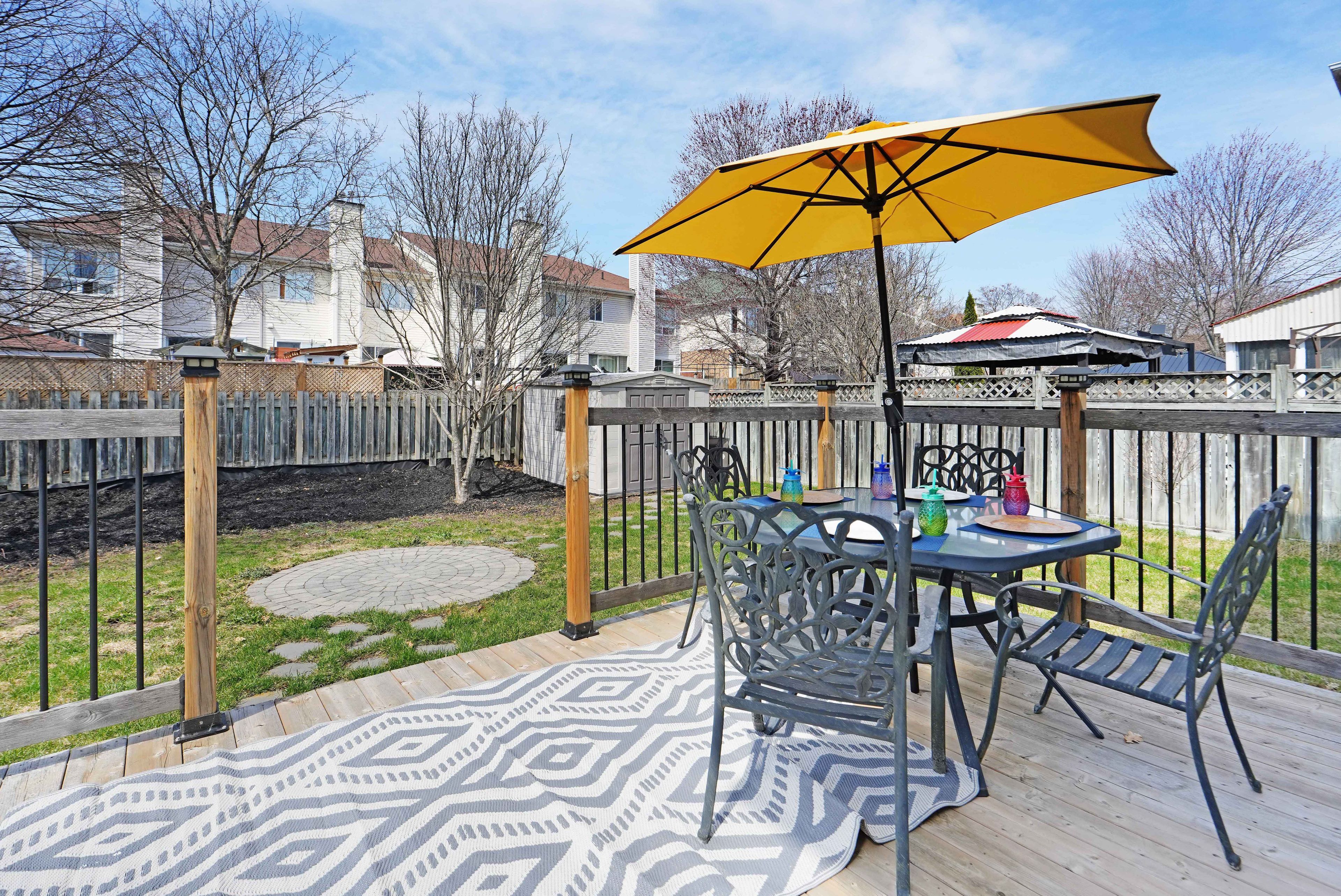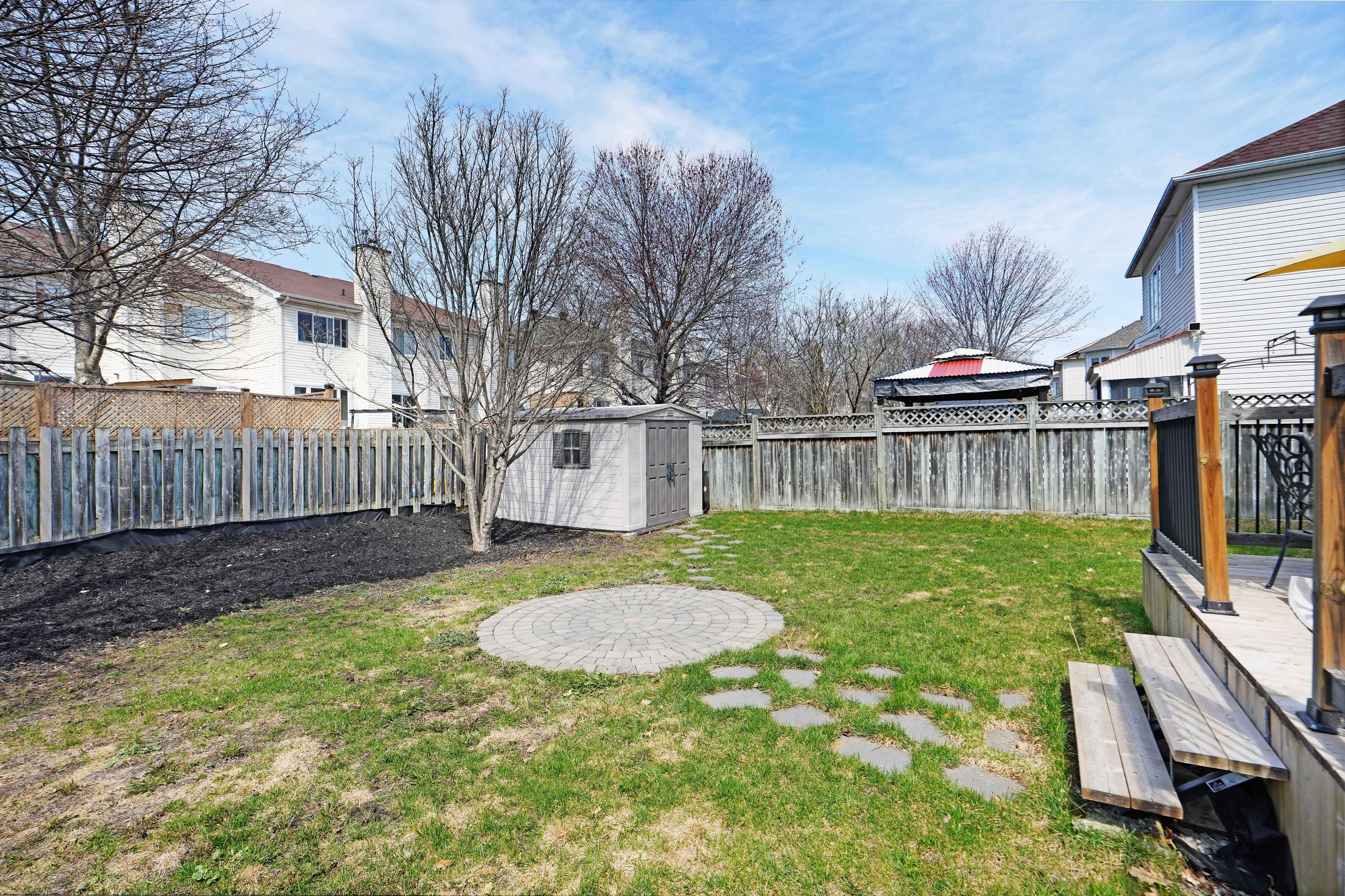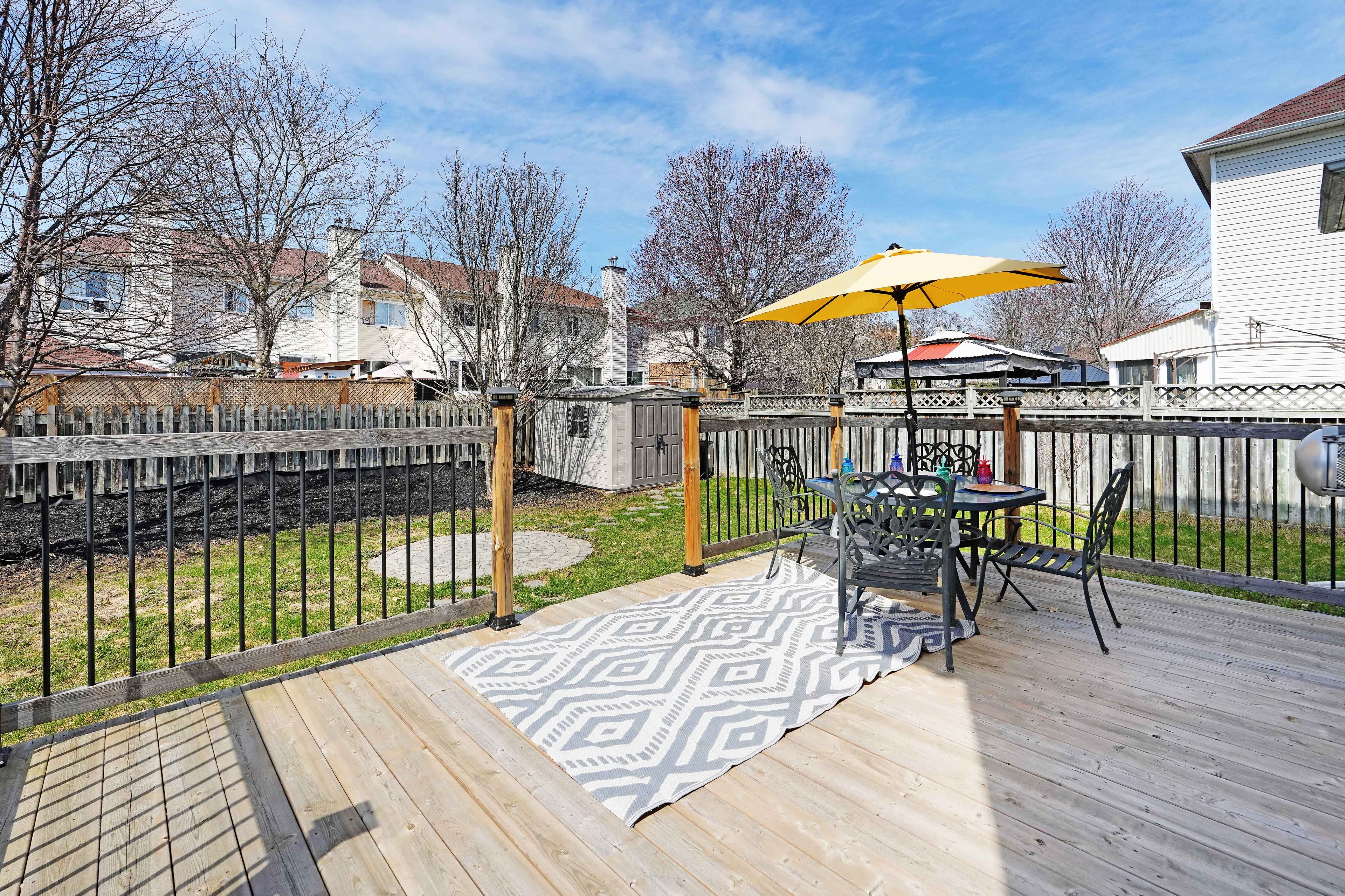 • Private backyard featuring an XL deck, shed, and mature trees.
