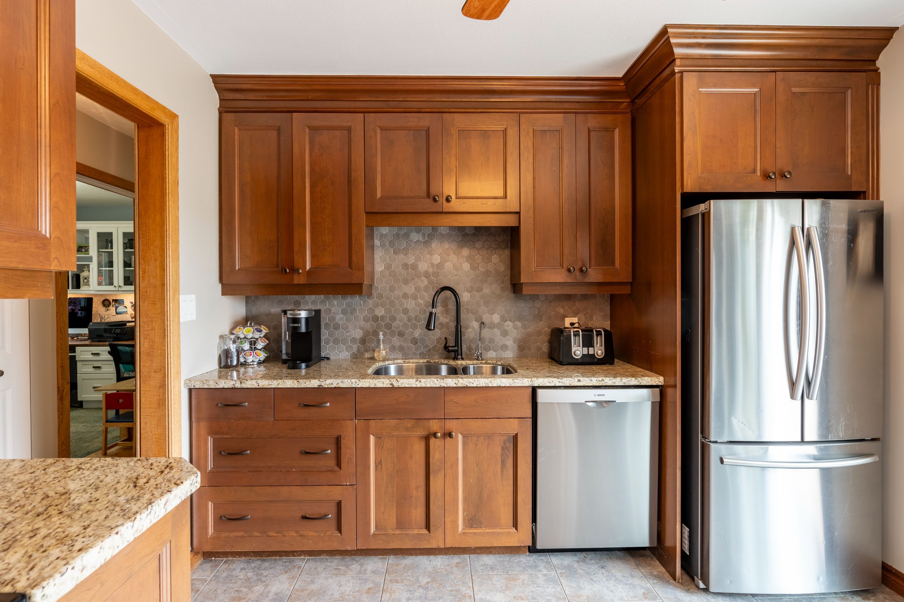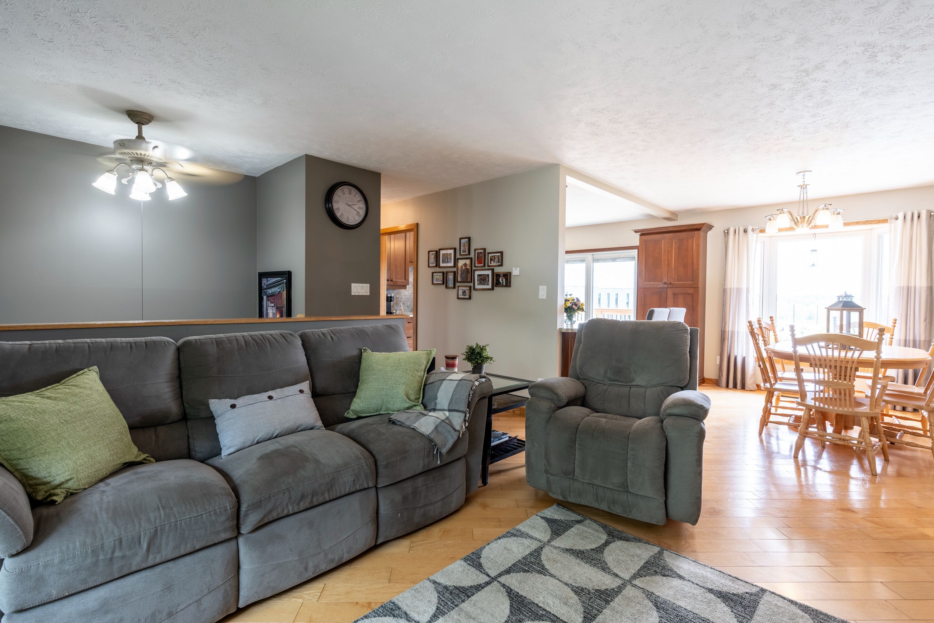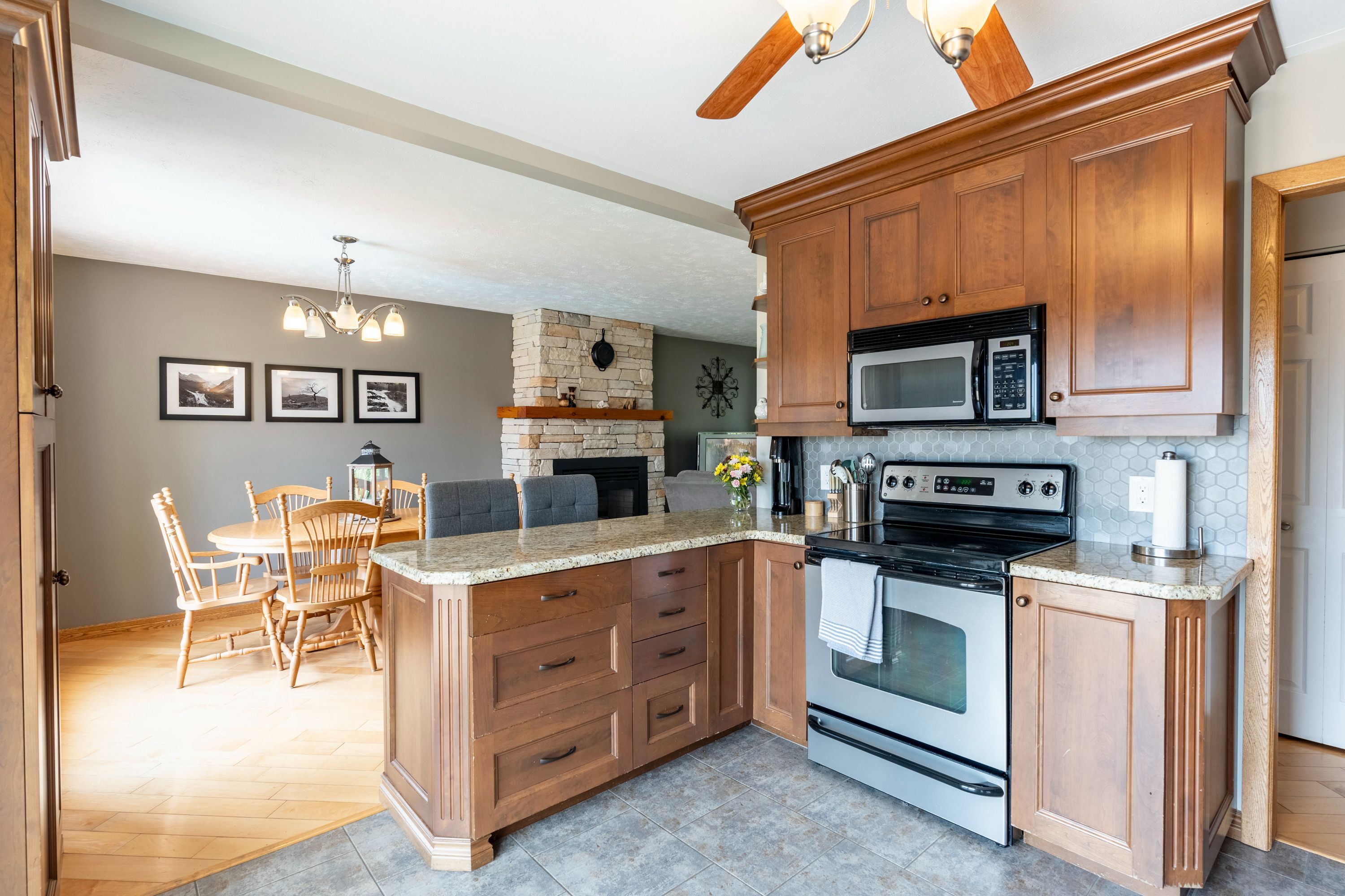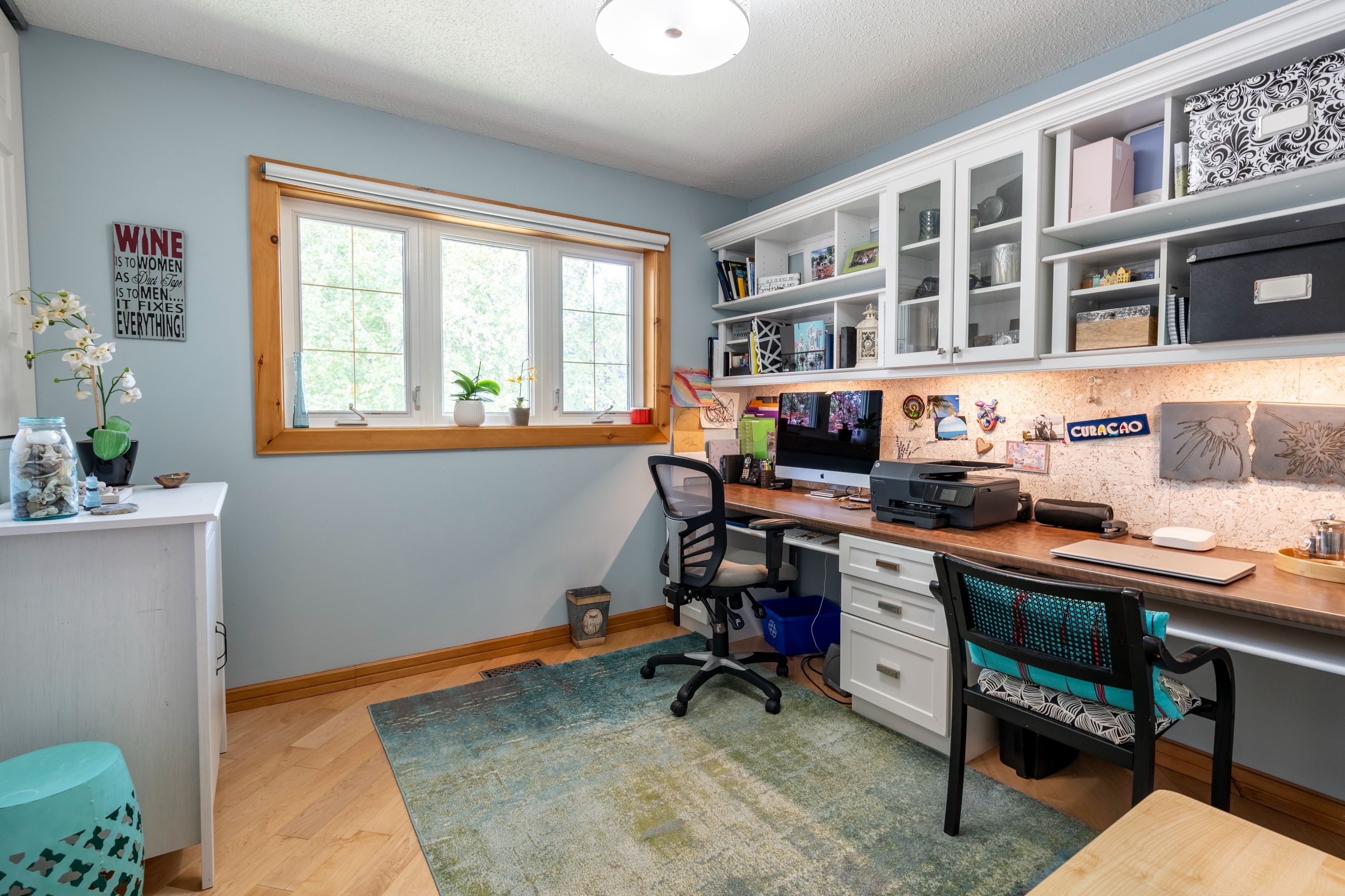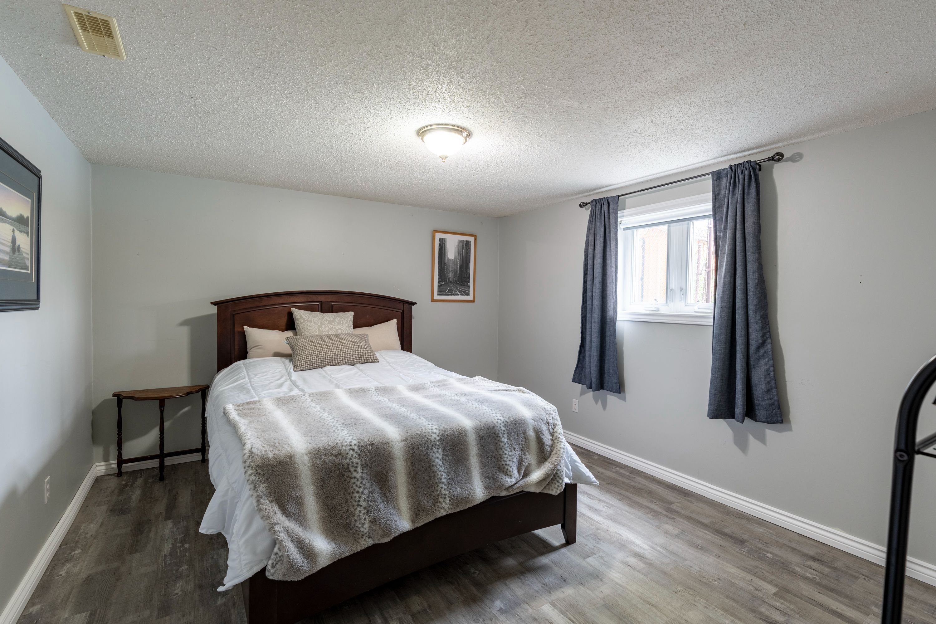 This beautifully maintained all brick bungalow is set in one of the areas most sought-after neighbourhoods. The main floor showcases gleaming hardwood floors, a bright and spacious living room with a stone fireplace, and a dining room featuring a large bow window with picturesque countryside views. The kitchen offers a breakfast bar and french doors that open to a 24' x 12' deck, ideal for outdoor dining and entertaining. Three bedrooms complete the main level, including a primary suite with a private en-suite bath. The fully finished lower level provides a fourth bedroom, a combined laundry and 2-piece bath, a versatile hobby or flex room, and a family room with walkout access to the backyard. Outside, enjoy summer living in your private, fully fenced yard with a 38' x 23' heated inground pool and 6-person waterfall spa. A perfect home for comfortable family living and effortless entertaining.
