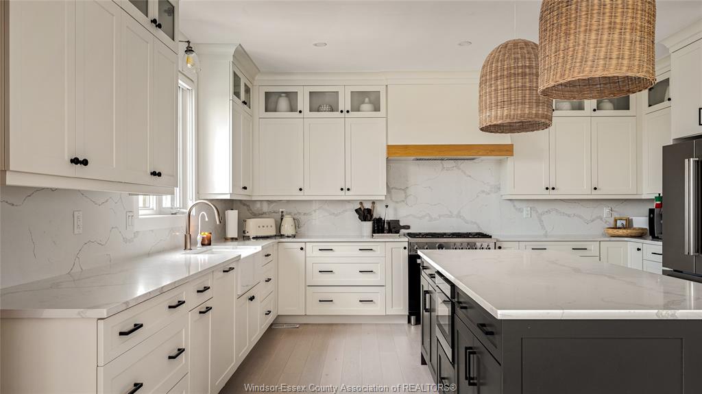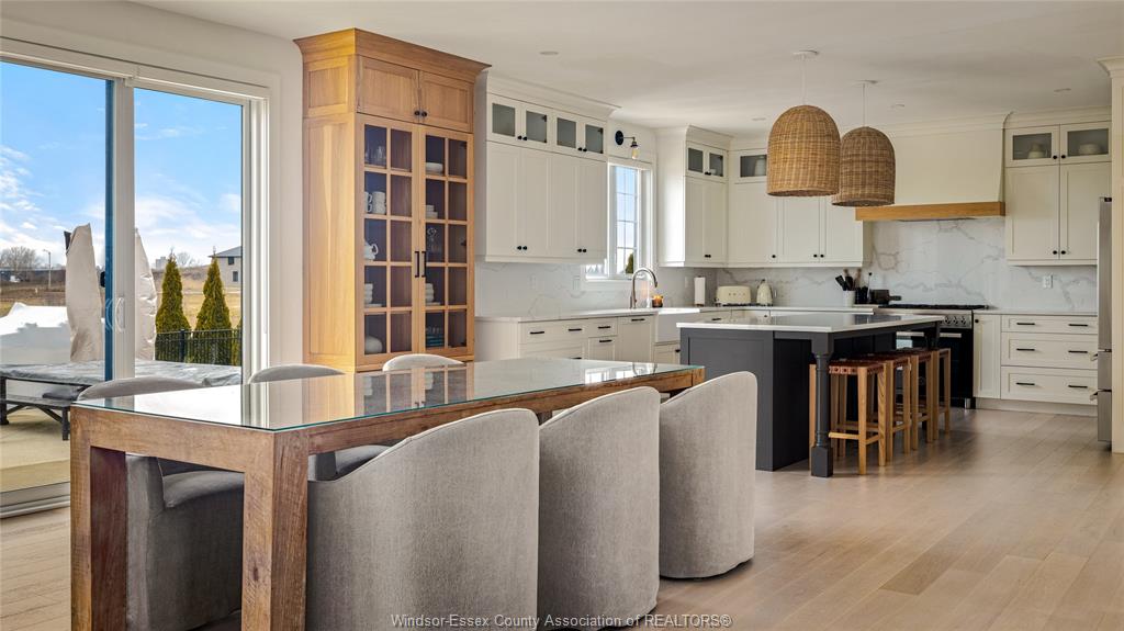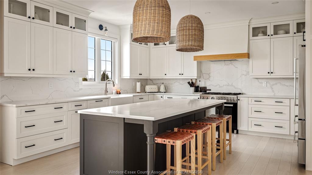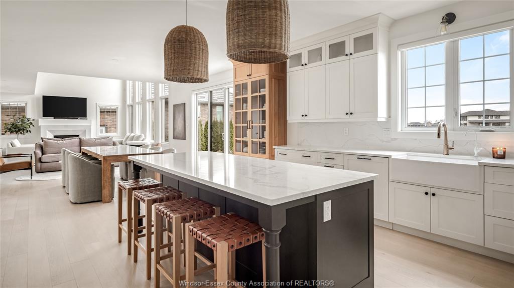 Welcome to the highly coveted golfwood estates. This remarkable two-story residence, boasting nearly 3500 sqft, is truly magazine-worthy in both design and functionality. The expansive open-concept main floor provides an ideal setting for both family life and entertaining guests. The kitchen showcases quartz countertops, custom wood cabinetry with a built-in china cabinet, bertazonni appliances including a 36" gas range, apron front porcelain sink, cabinet-ready dishwasher, and an 8' island. The family room is adorned with stunning oversized windows, allowing an abundance of natural light, and features an impressive 48" gas fireplace with herringbone detail. Conveniently located on the main floor are the laundry and powder room. The primary bedroom boasts a spacious walk-in closet and ensuite bathroom. The fully finished basement expands the home’s living area with a well-designed, multi-purpose space- perfect for home gym, guest suite,or entertaining. Custom window treatments throughout. Outside, the fully landscaped property offers a beautiful backyard overlooking a large pond, providing tranquility and added privacy from rear neighbors. Enjoy a short proximity to lake erie, the marina, point pelee provincial park, erie shores golf course, and more!
