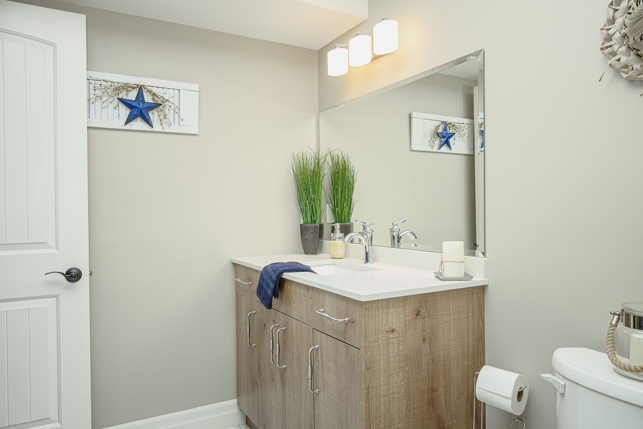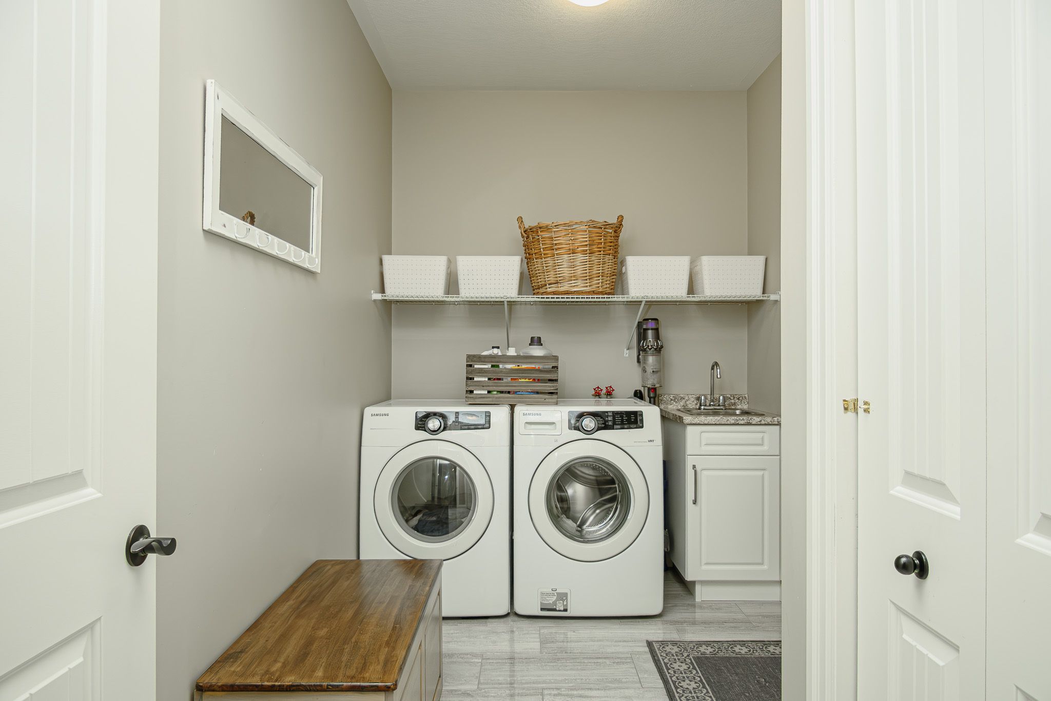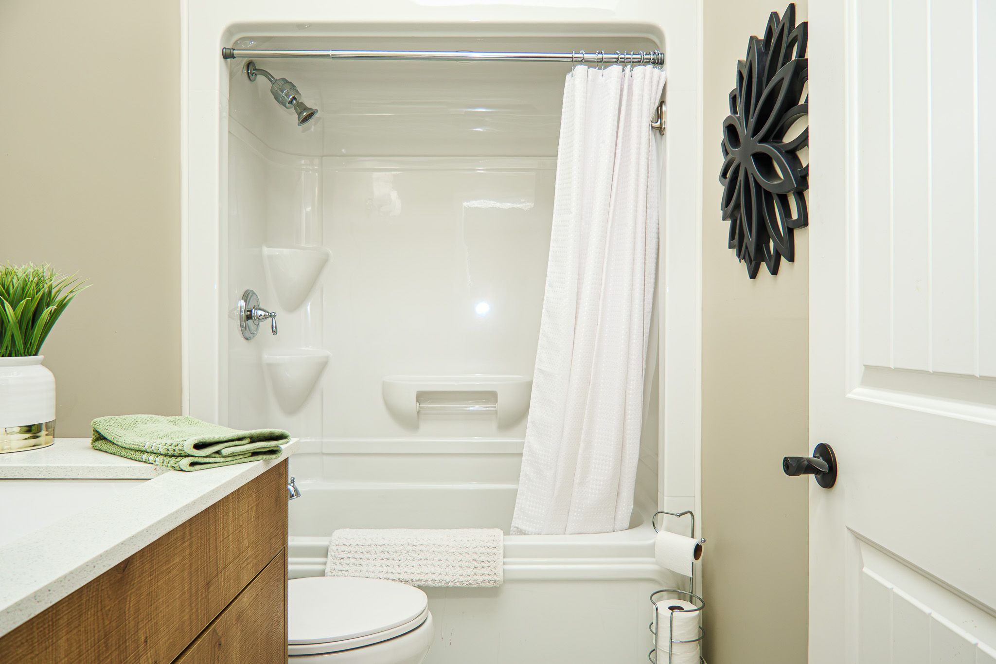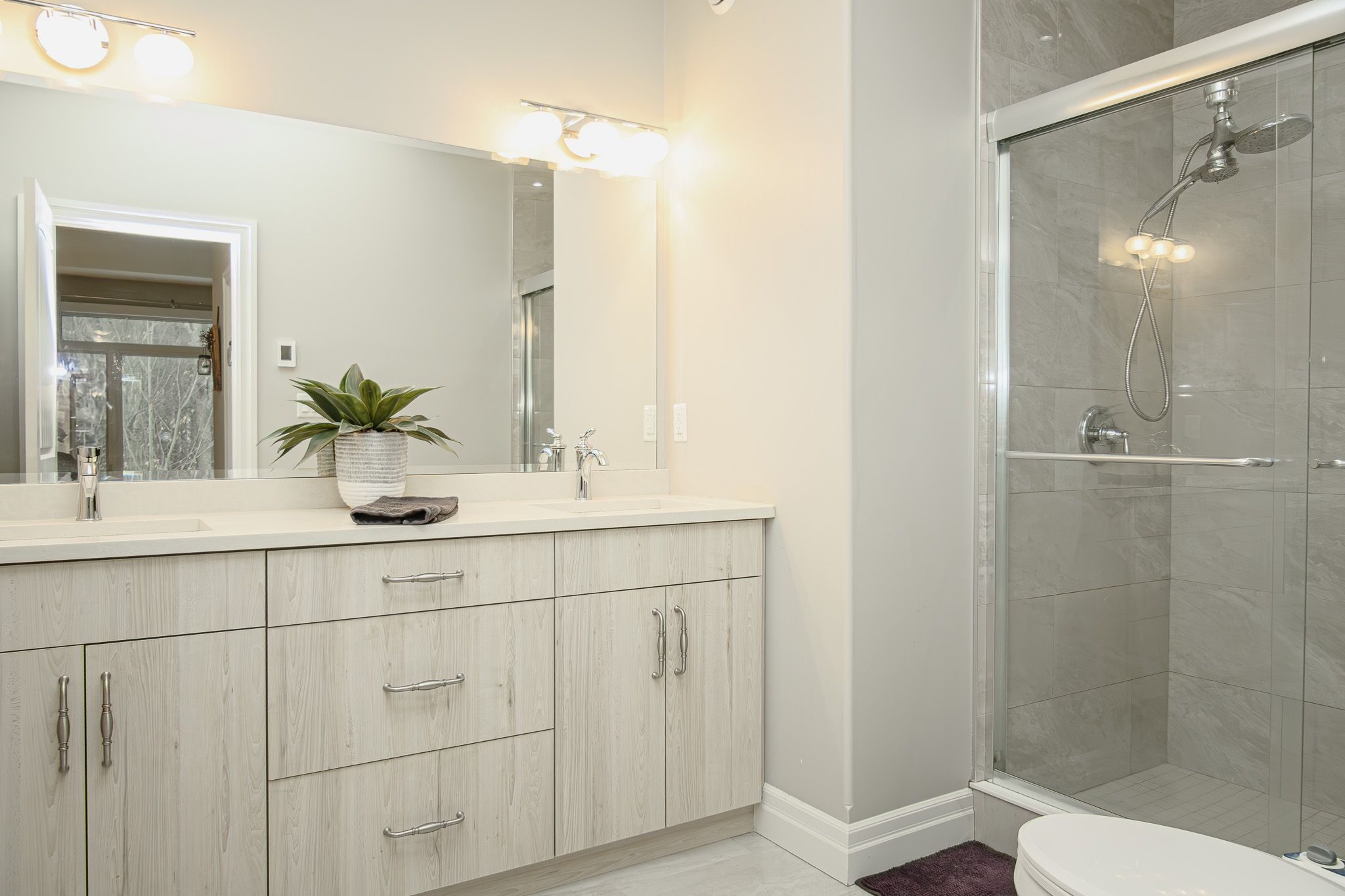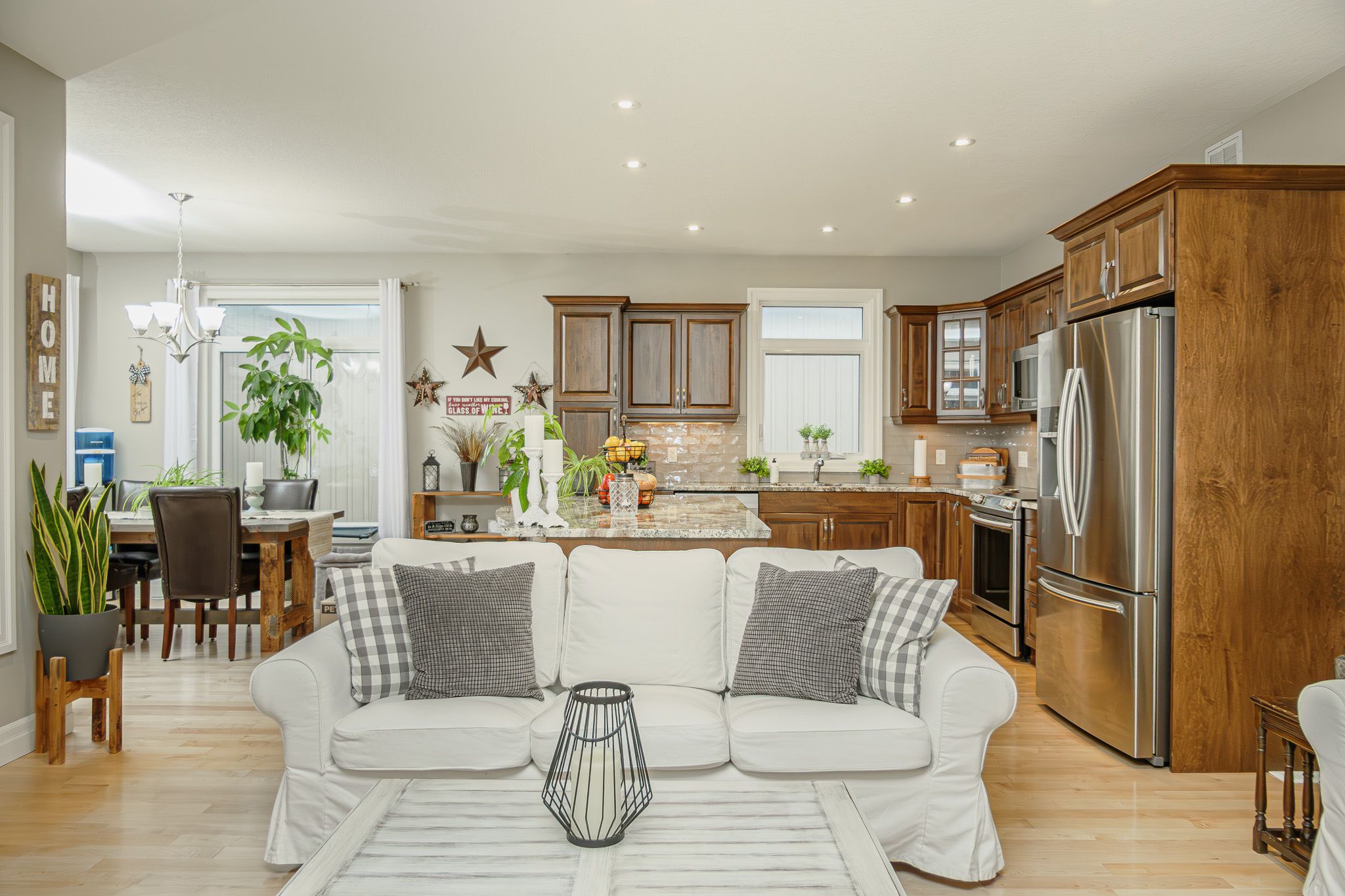 • Custom kitchen with quartz countertops and stainless-steel appliances for easy cooking.
