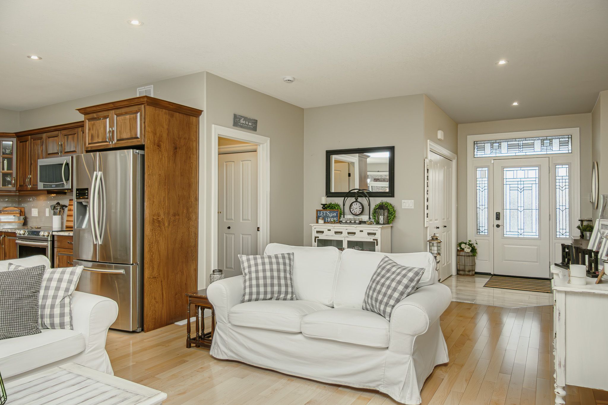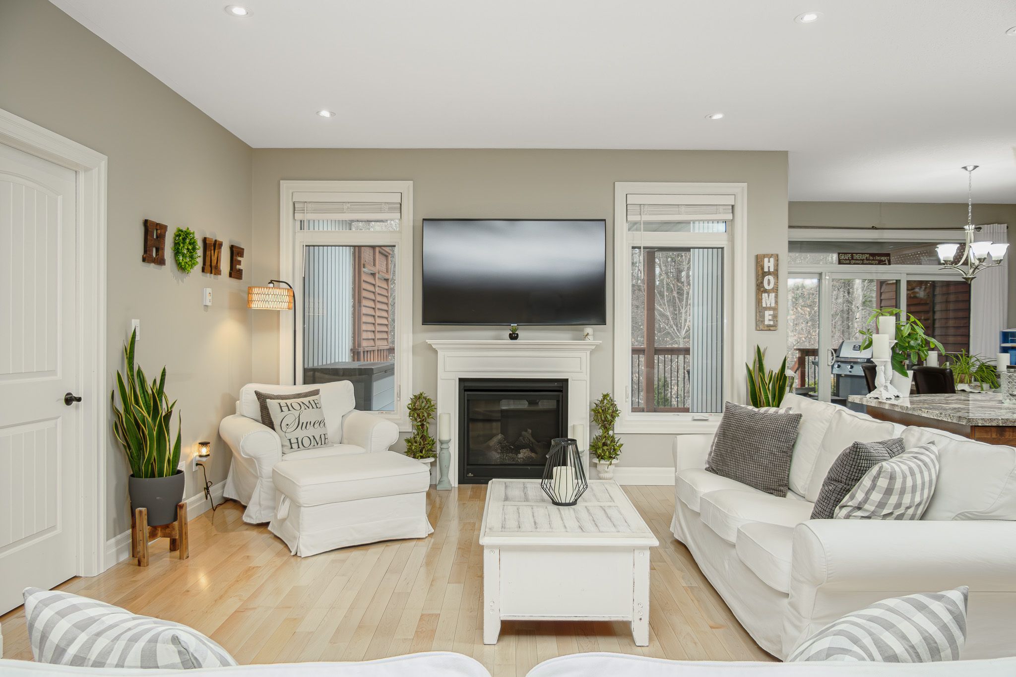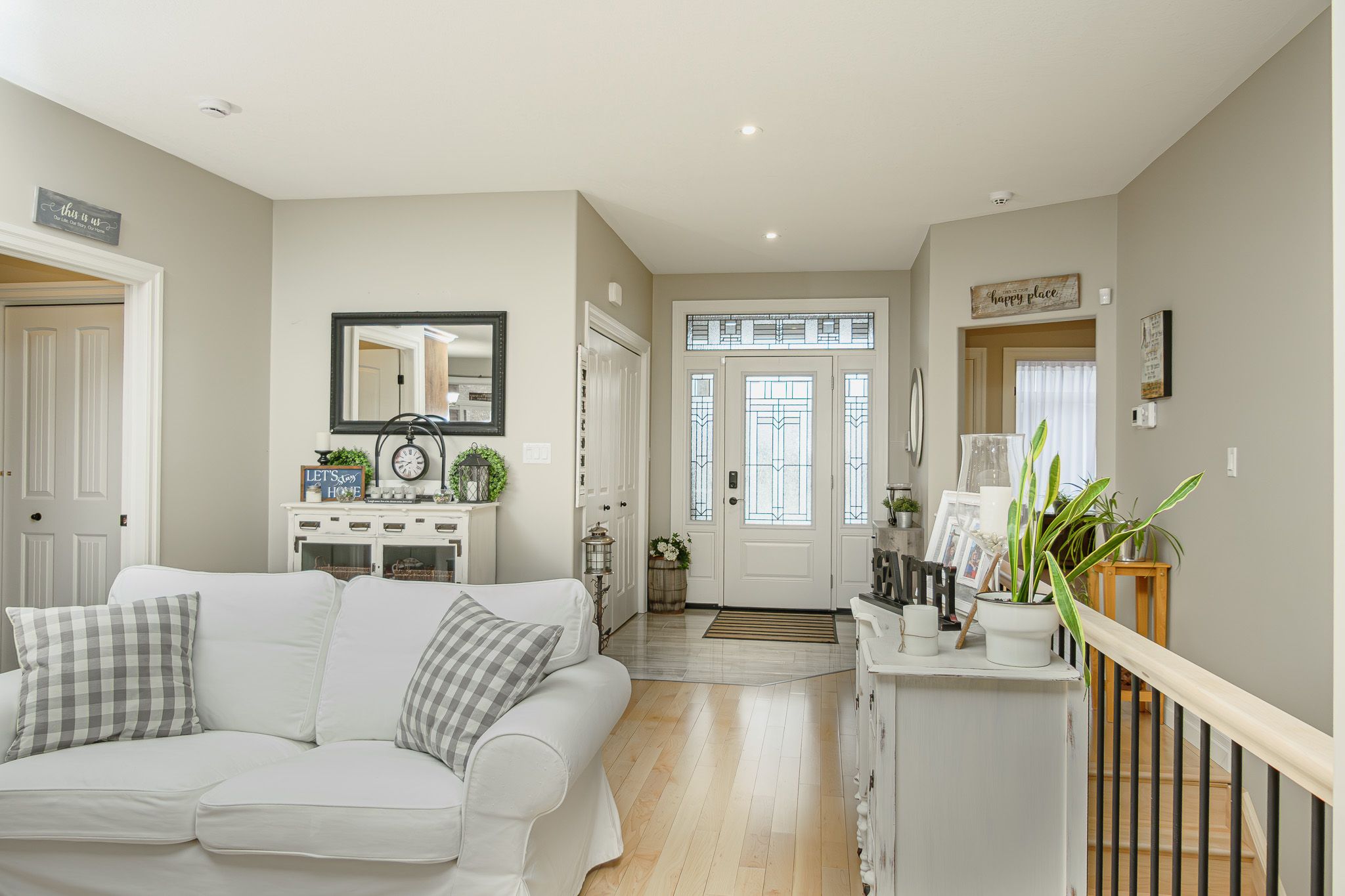 **for sale**: seize the chance to reside in one of quinte west's most sought-after subdivisions! This stunning cameo model, one of the largest in orchard lane, is set on a beautiful premium wooded lot. Spanning 1,685 sqft on main flr, this home features 3+1 bedrooms, 3 baths, and impressive 9ft ceilings. Enjoy cozy evenings by the gas fireplace or relax on the covered rear deck that overlooks the serene woods. With hardwood floors & stairs throughout, plus a finished basement, you'll have a total of 3,000 sqft of living space. Built around 2018, this home boasts numerous custom upgrades, including exquisite maple flooring, a coffered ceiling, transom windows, & an ensuite bath with double sinks, a tile/glass shower, & heated floors. The custom kitchen is a chef's dream, featuring wood cabinets with crown & under-cabinet lighting, a stylish tile backsplash, a 7ft island, quartz countertops, & stainless-steel appliances. The property backs onto a private wooded area, ensuring tranquility. Additional highlights include a main floor laundry/mudroom with access to the double garage, elegant wood stairs with black metal railings, & a triple patio door leading from the dining area to the covered rear deck and sun deck. The primary bedroom, located at the back of the home, offers a tray ceiling, walk-in closet, & a luxurious 4-piece ensuite. The lower level features a fourth bedroom with a walk-in closet, a 3-piece bath, a spacious recreation room, & a utility/storage room. Comfort is assured with a gas furnace, central air conditioning, hrv air exchange, & on-demand hot water. Outside, you'll find a blend of stone and vertical vinyl siding, a large, paved driveway with space for 4+ vehicles, interlocking walkways, stone garden walls, a fenced backyard, & privacy screens on both decks. Located in an executive west trenton subdivision, known for its larger lots, wooded areas, and convenient access to highway 401 for commuters. Don't miss out on this exceptional opportunity!
