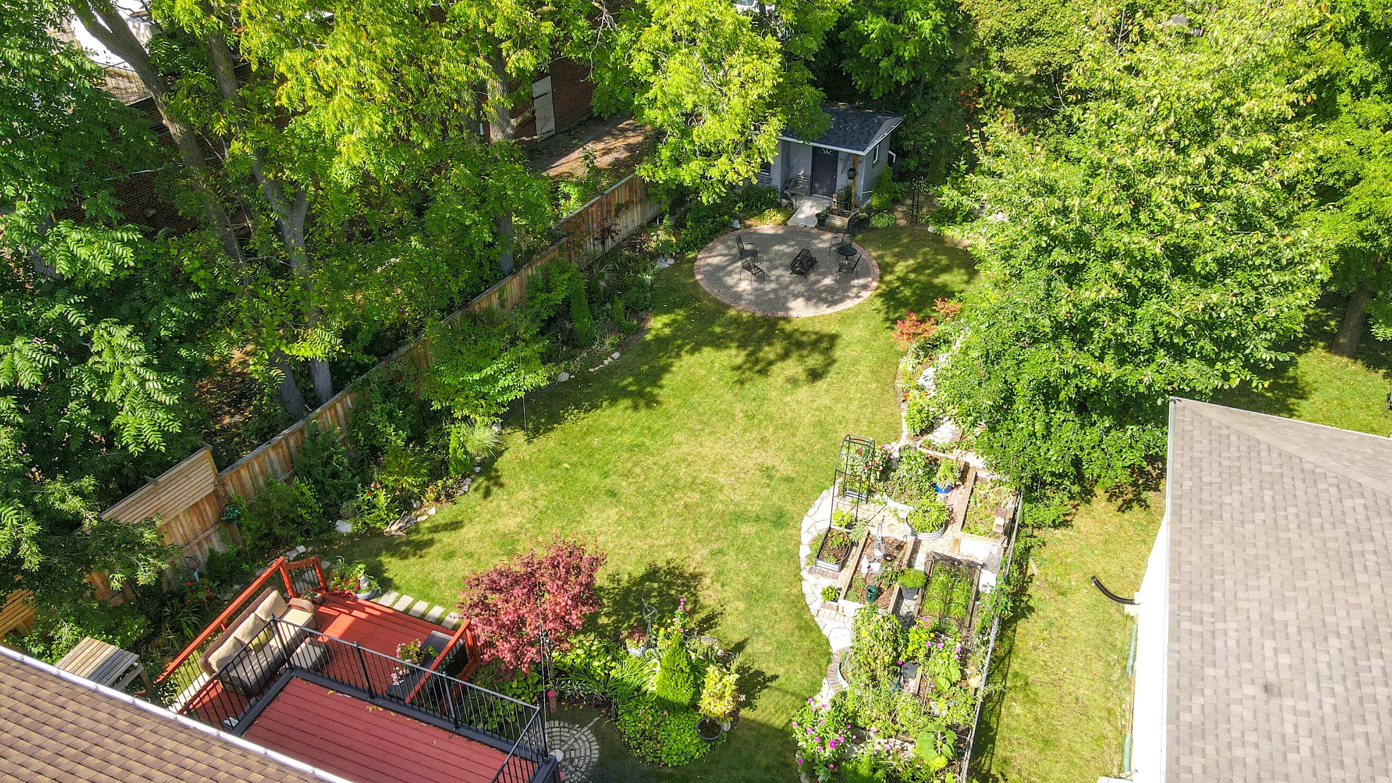• Spacious quarter-acre lot surrounded by lush greenery and towering trees.