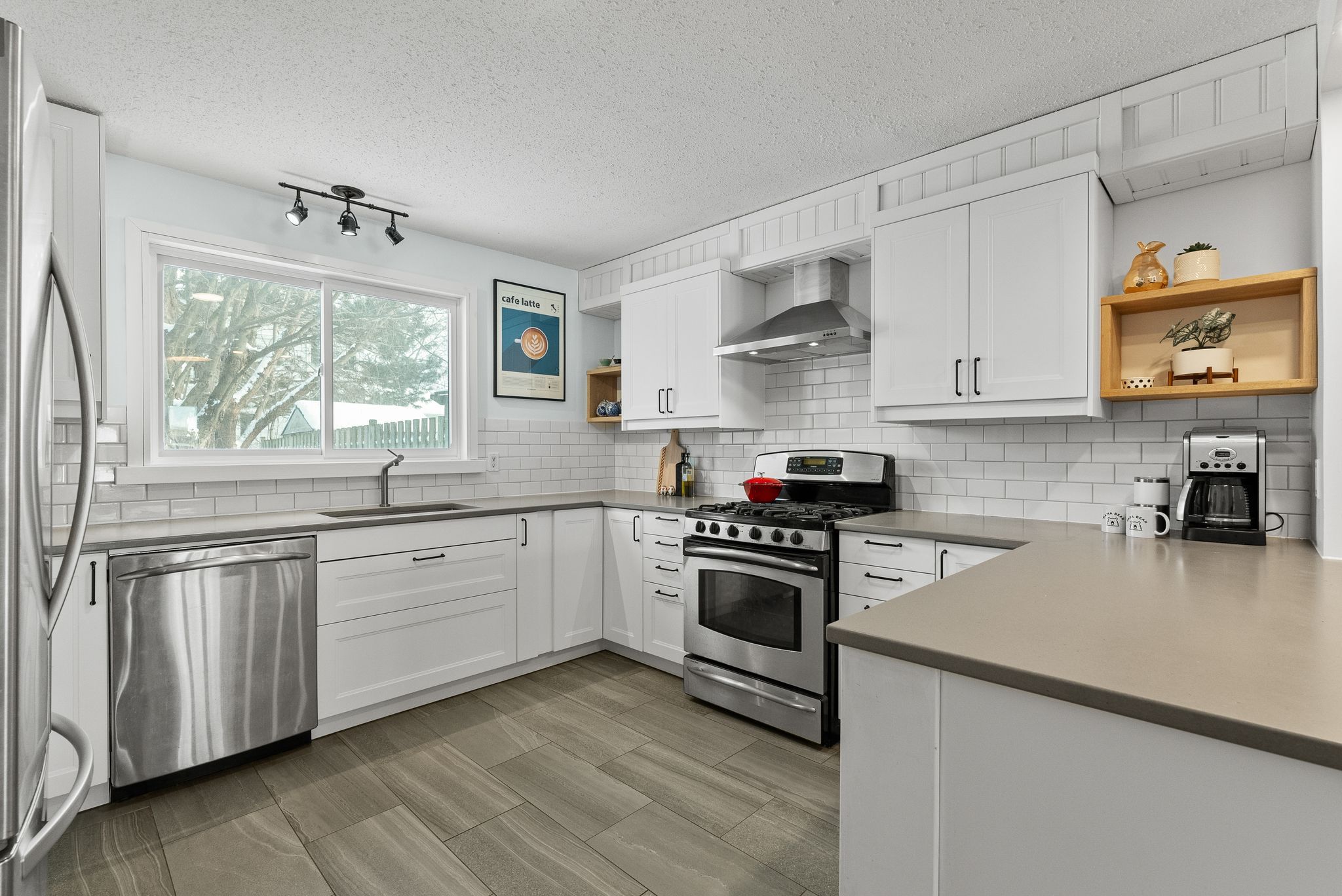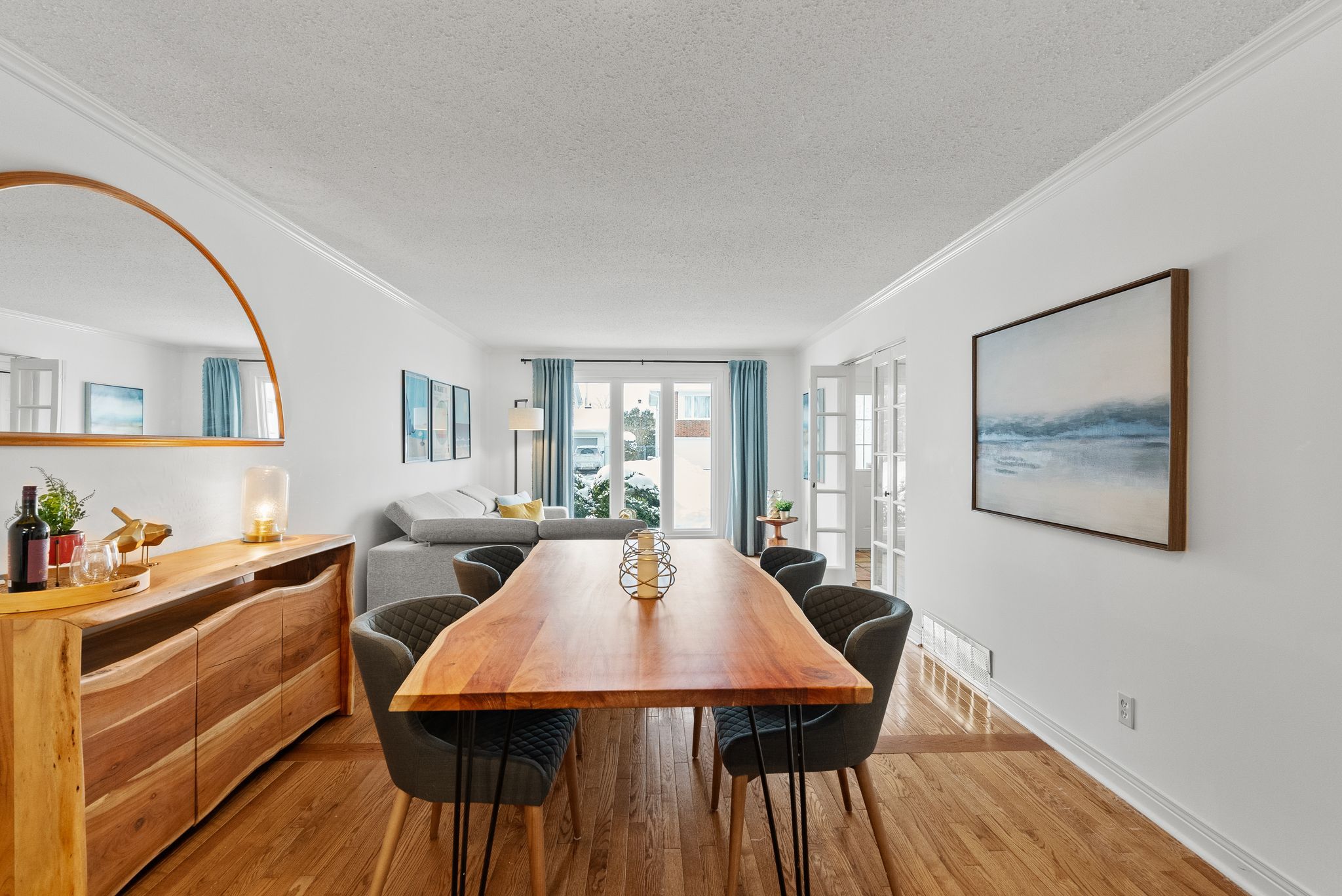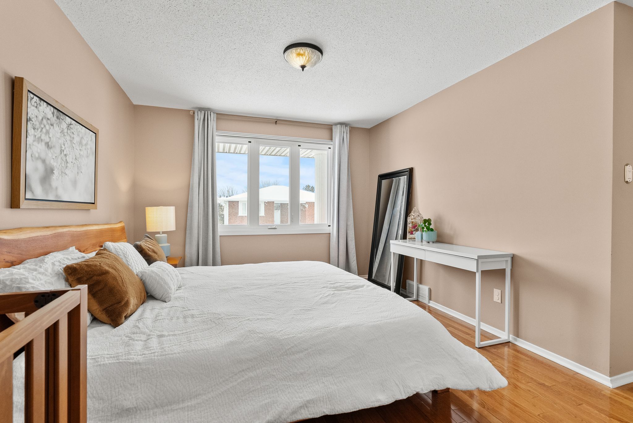 Openhouse sunday february 8th, 2-4pm. Ideally located on a quiet, family-friendly street, this extensively updated 4 bedroom, 2 full bathroom semi-detached two-storey offers exceptional space and walkable convenience in the heart of craig henry. Just steps to craig henry park & tennis club, and within walking distance to sir robert borden hs, manordale public, and knoxdale public schools. The main level features a generous front entry and hardwood floors throughout, opening to an integrated living and dining area that flows seamlessly into the updated eat-in kitchen-creating a bright, connected space ideal for everyday living and entertaining. The kitchen showcases quartz countertops, an oversized island for prep and casual dining, and excellent storage. Just off the kitchen, a separate family room with a cozy wood-burning fireplace offers a comfortable retreat, with patio doors leading directly to the private backyard. A full 4-piece bathroom completes the main level. The second storey offers four well-sized bedrooms and a freshly updated 4-piece cheater ensuite. The lower level provides additional flexible living space, currently set up with a recreation/playroom, gym area, laundry, and room for a home office or hobby space. Outside, enjoy a beautifully landscaped backyard with a patio perfect for summer entertaining, along with new pavers along the sides and front of the home enhancing curb appeal and functionality. Updates include: kitchen (2020), windows (2021 to 2023), patio door (2011), roof (2017), furnace & a/c (2021), patio & walkway landscaping (2014). Move in and enjoy, or personalize to suit your style. A wonderful opportunity in a sought-after neighbourhood with parks, schools, and recreation at your doorstep.