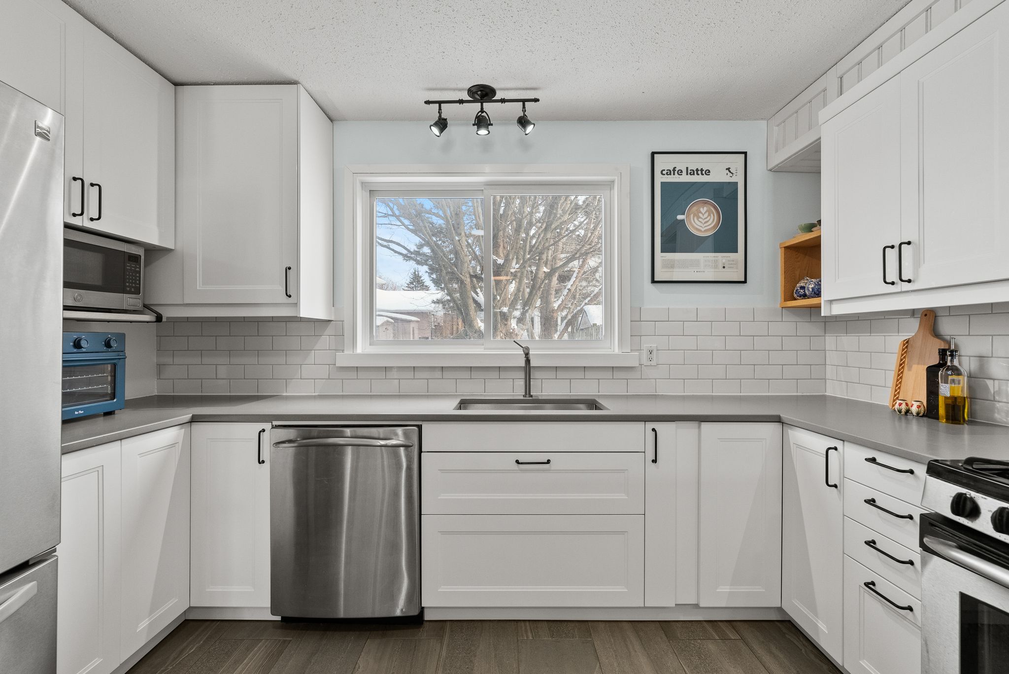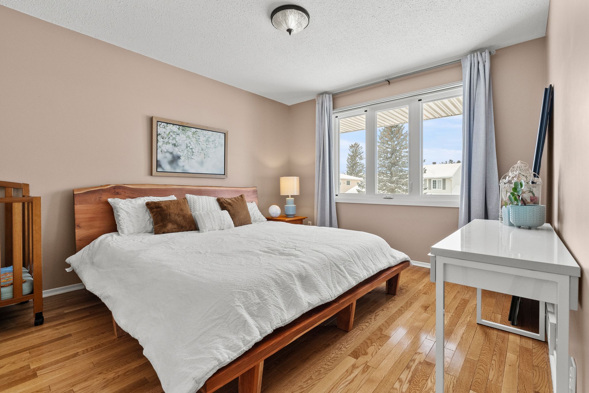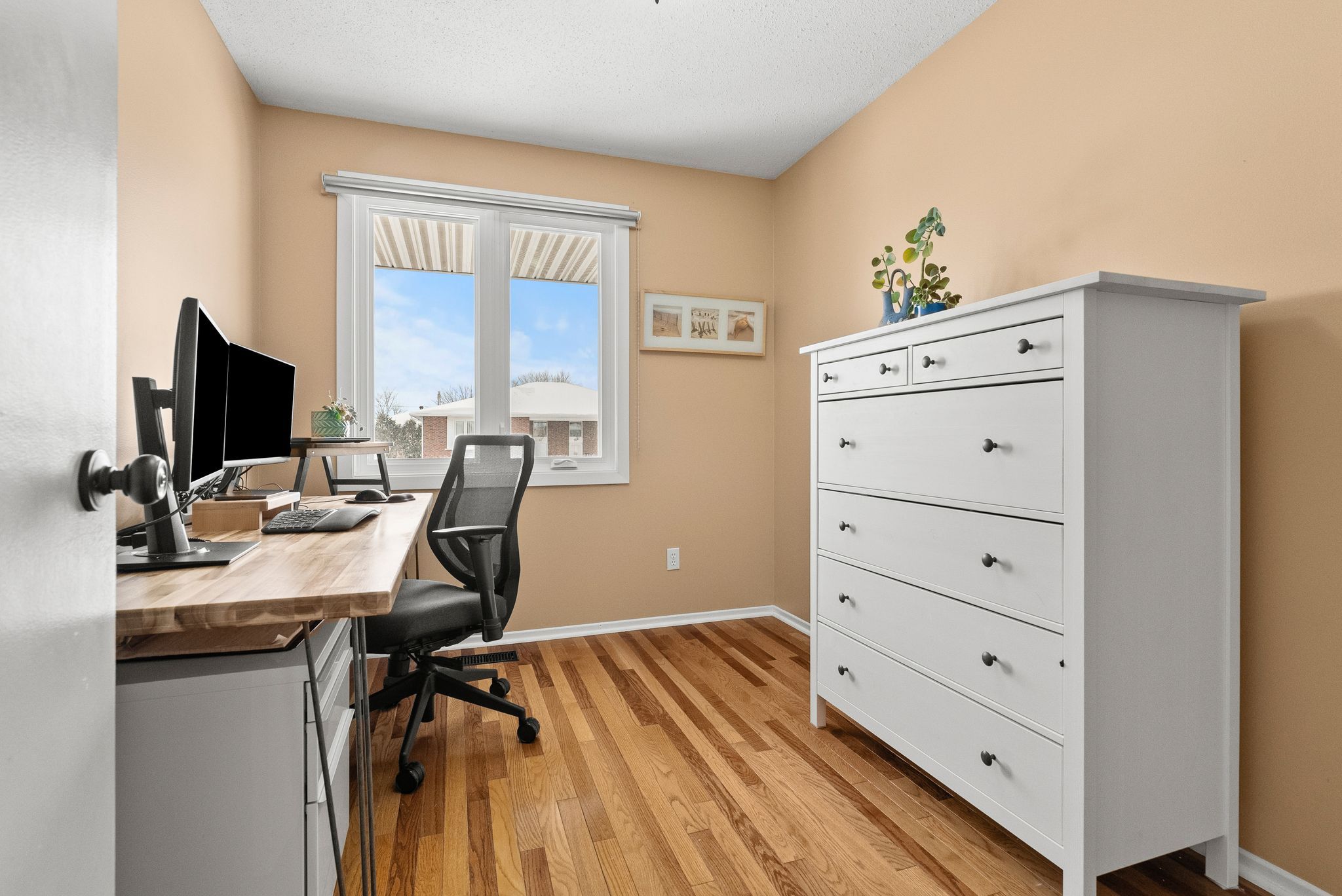 Openhouse sunday february 8th, 2-4pm. Ideally located on a quiet, family-friendly street, this extensively updated 4 bedroom, 2 full bathroom semi-detached two-storey offers exceptional space and walkable convenience in the heart of craig henry. Just steps to craig henry park & tennis club, and within walking distance to sir robert borden hs, manordale public, and knoxdale public schools. The main level features a generous front entry and hardwood floors throughout, opening to an integrated living and dining area that flows seamlessly into the updated eat-in kitchen-creating a bright, connected space ideal for everyday living and entertaining. The kitchen showcases quartz countertops, an oversized island for prep and casual dining, and excellent storage. Just off the kitchen, a separate family room with a cozy wood-burning fireplace offers a comfortable retreat, with patio doors leading directly to the private backyard. A full 4-piece bathroom completes the main level. The second storey offers four well-sized bedrooms and a freshly updated 4-piece cheater ensuite. The lower level provides additional flexible living space, currently set up with a recreation/playroom, gym area, laundry, and room for a home office or hobby space. Outside, enjoy a beautifully landscaped backyard with a patio perfect for summer entertaining, along with new pavers along the sides and front of the home enhancing curb appeal and functionality. Updates include: kitchen (2020), windows (2021 to 2023), patio door (2011), roof (2017), furnace & a/c (2021), patio & walkway landscaping (2014). Move in and enjoy, or personalize to suit your style. A wonderful opportunity in a sought-after neighbourhood with parks, schools, and recreation at your doorstep.