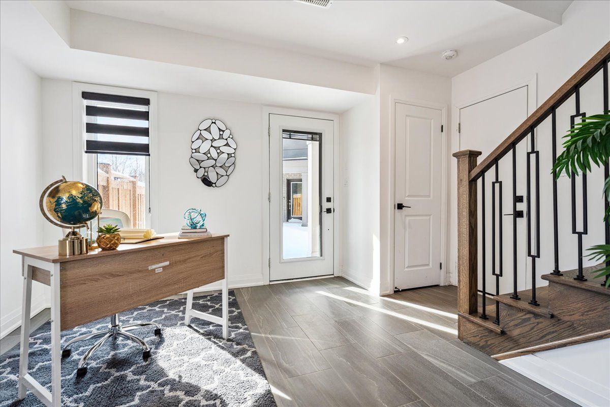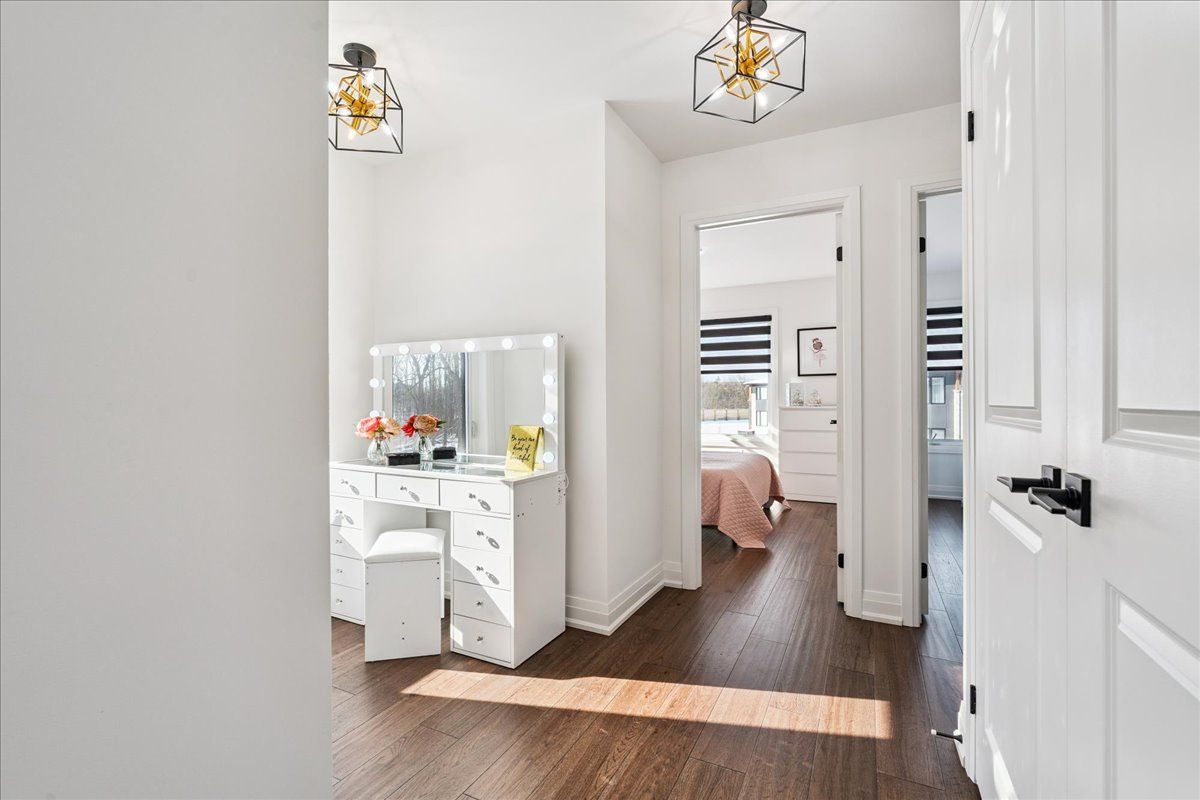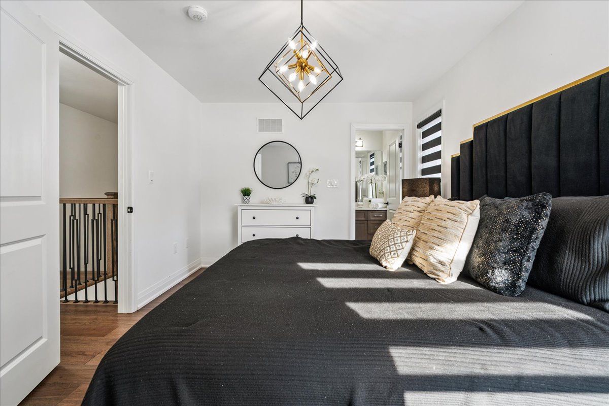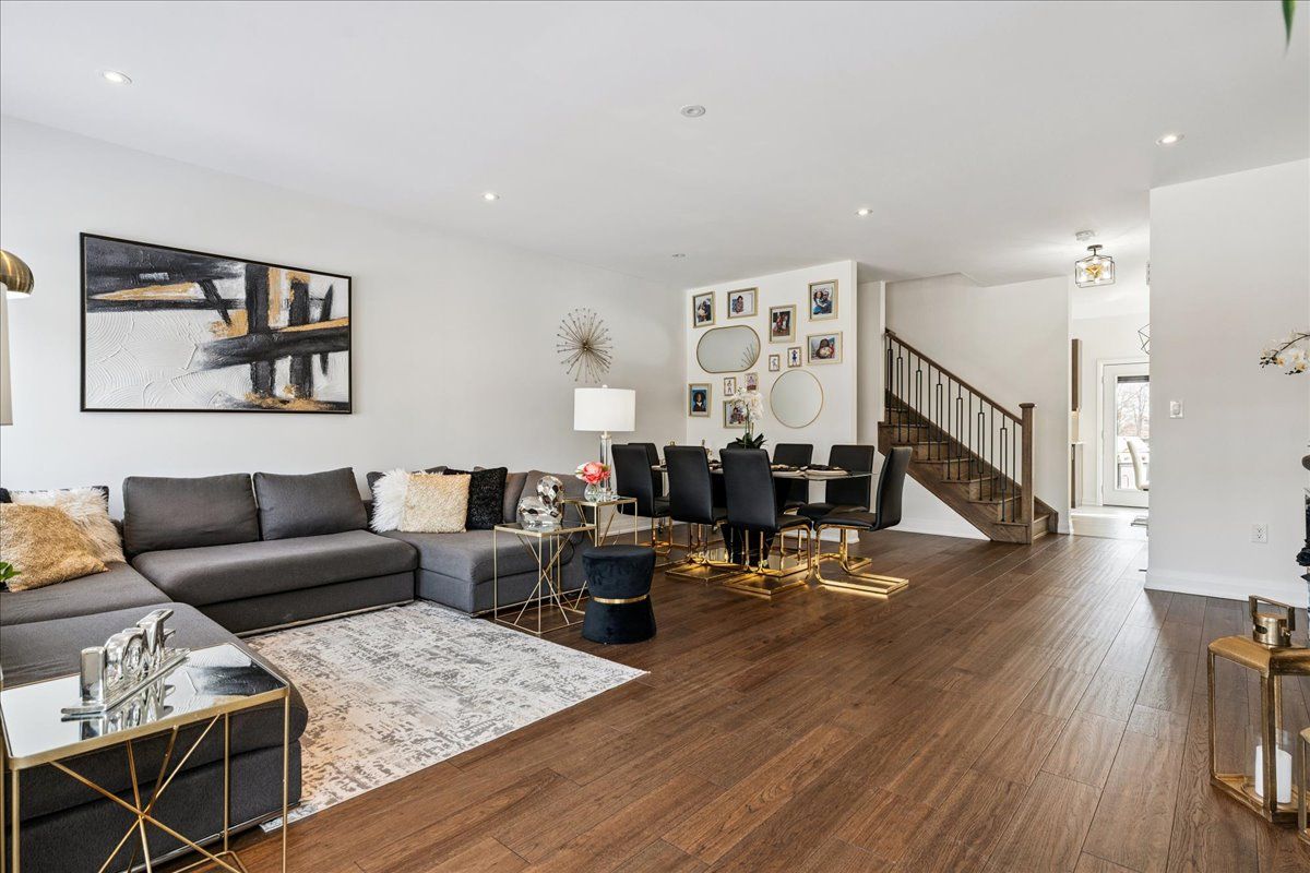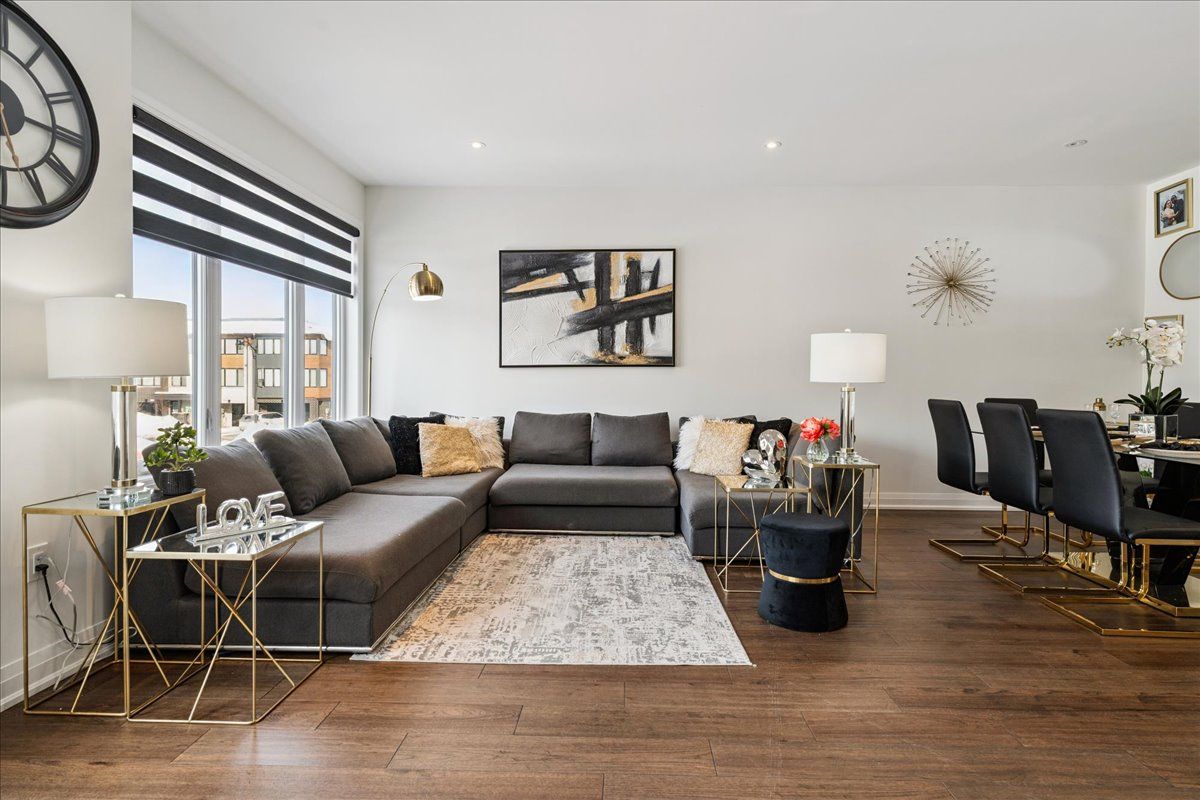 Welcome home to modern luxury at its finest! A stunning, nearly new (built by worthington homes) freehold end-unit townhome with rare two-car garage and double driveway in georgetown's highly sought-after trafalgar square community. This home is perfectly positioned on a premium lot without rear neighbours, just steps from the club at north halton golf course - the ideal blend of nature's serenity and city convenience. Flooded with natural light, this beauty showcases elegant contemporary finishes including wide-plank hardwood floors, quartz counters in the kitchen and bathrooms, premium ceramic tile, upgraded pot lights, gorgeous chandeliers, and contemporary custom zebra blinds throughout which are remoted-controlled in the primary suite and family room!! The ground level offers a versatile walk-out to the fully fenced yard from the recreation room or home office and direct access to the oversized two-car garage. The main level features a bright, open-concept large family room and dining space with huge windows and custom fireplace feature wall, perfect for entertaining. The chef-inspired large eat-in kitchen is equipped with stainless steel appliances, soft-close cabinetry, and a walk-out to the deck overlooking the private backyard and beautiful green space . . . No neighbours behind! Upstairs, the spacious primary suite enjoys tranquil nature views, a walk-in closet, and a luxurious 3-piece ensuite with an oversized glass shower featuring floor-to-ceiling tile. Two additional generously sized bedrooms, a full main bathroom, practical laundry, and a convenient den/media niche completes the third floor! Ideally located minutes from downtown georgetown, the go station, highway 401, shops, restaurants, the hospital, conservation, trails, the fairground and trafalgar sports park. This turn-key home offers the perfect balance of small-town charm & urban style in the city!! Your future home awaits - don't miss this incredible opportunity to make it yours!