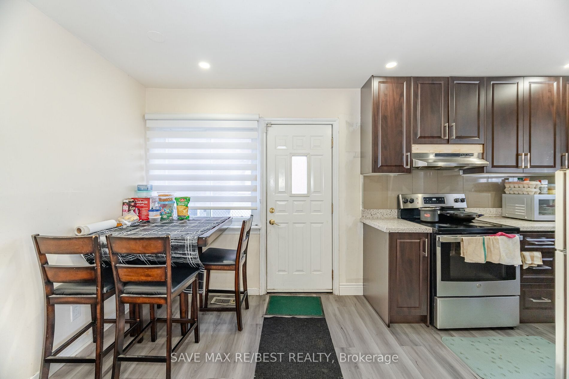 Located in a highly sought-after area of etobicoke, this beautifully upgraded semi-detached home is just steps from a shopping plaza and conveniently located at a ttc bus stop. With easy access to major highways and other local amenities, it offers exceptional convenience and value. Ideal for first-time buyers or as an investment opportunity, this home boasts significant rental potential, being in close proximity to humber college and major bus routes. Inside, you'll find a tastefully upgraded home featuring neutral color vinyl flooring, modern window coverings, fresh paint, and a stunning kitchen with quartz countertops, stainless steel stove, fridge, range hood, and sleek cabinetry. The home offers a spacious living room, a large family room with high ceilings, and three generously sized bedrooms. The finished basement, featuring a separate entrance and full bath, offers additional living space and unlocks new possibilities for use. Additional features include a second entrance from the side, a large backyard, and parking for up to four vehicles.