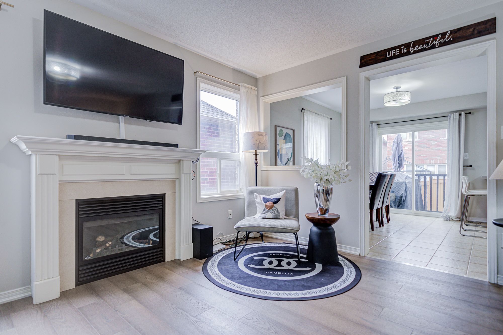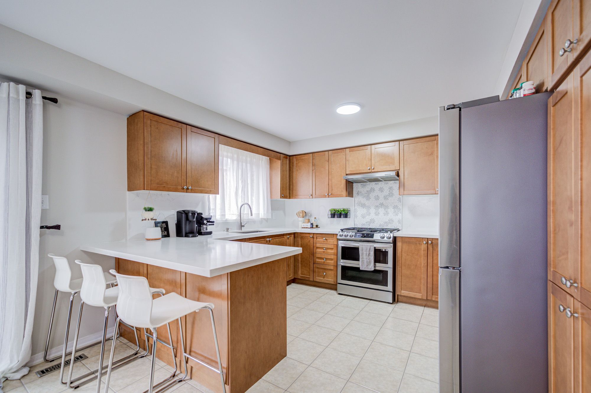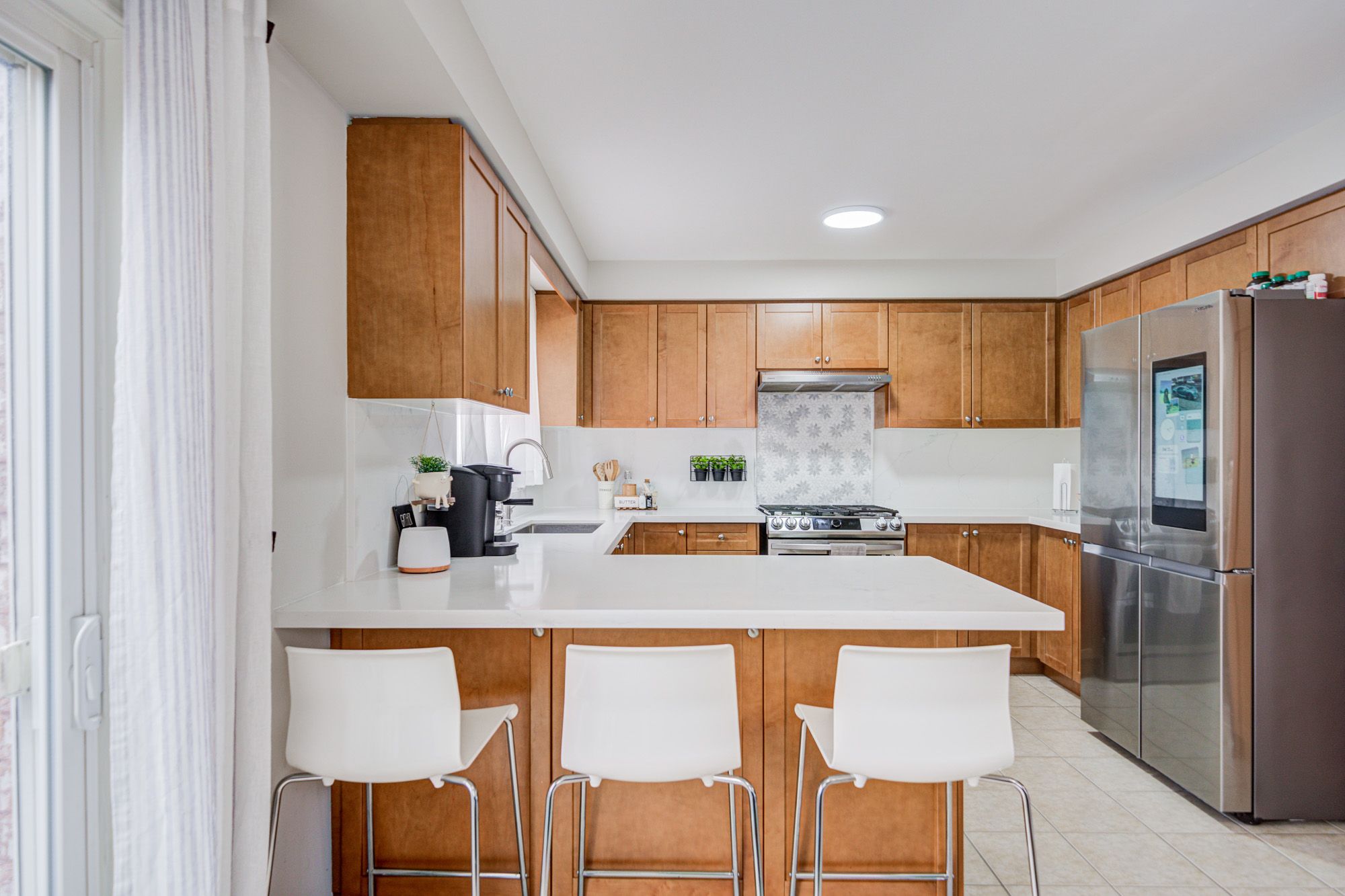 • Upgraded kitchen featuring quartz countertops and easy yard access.
