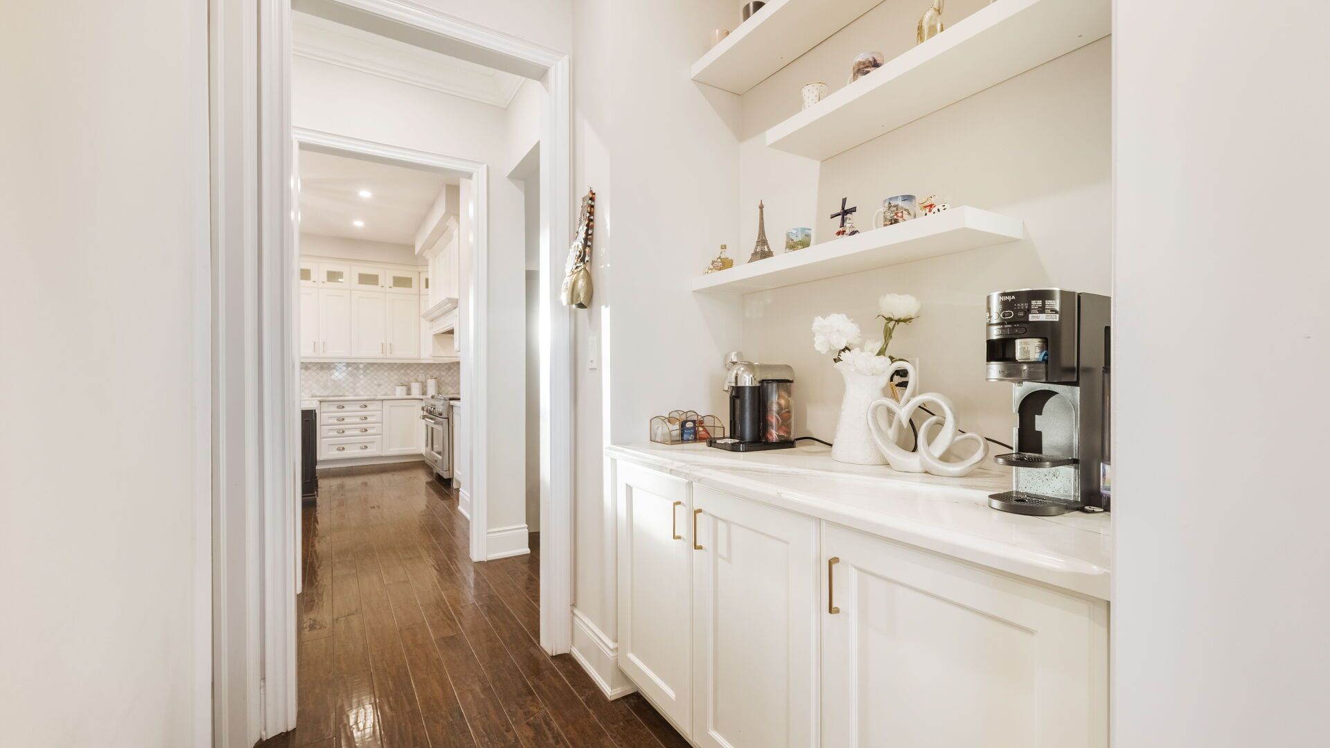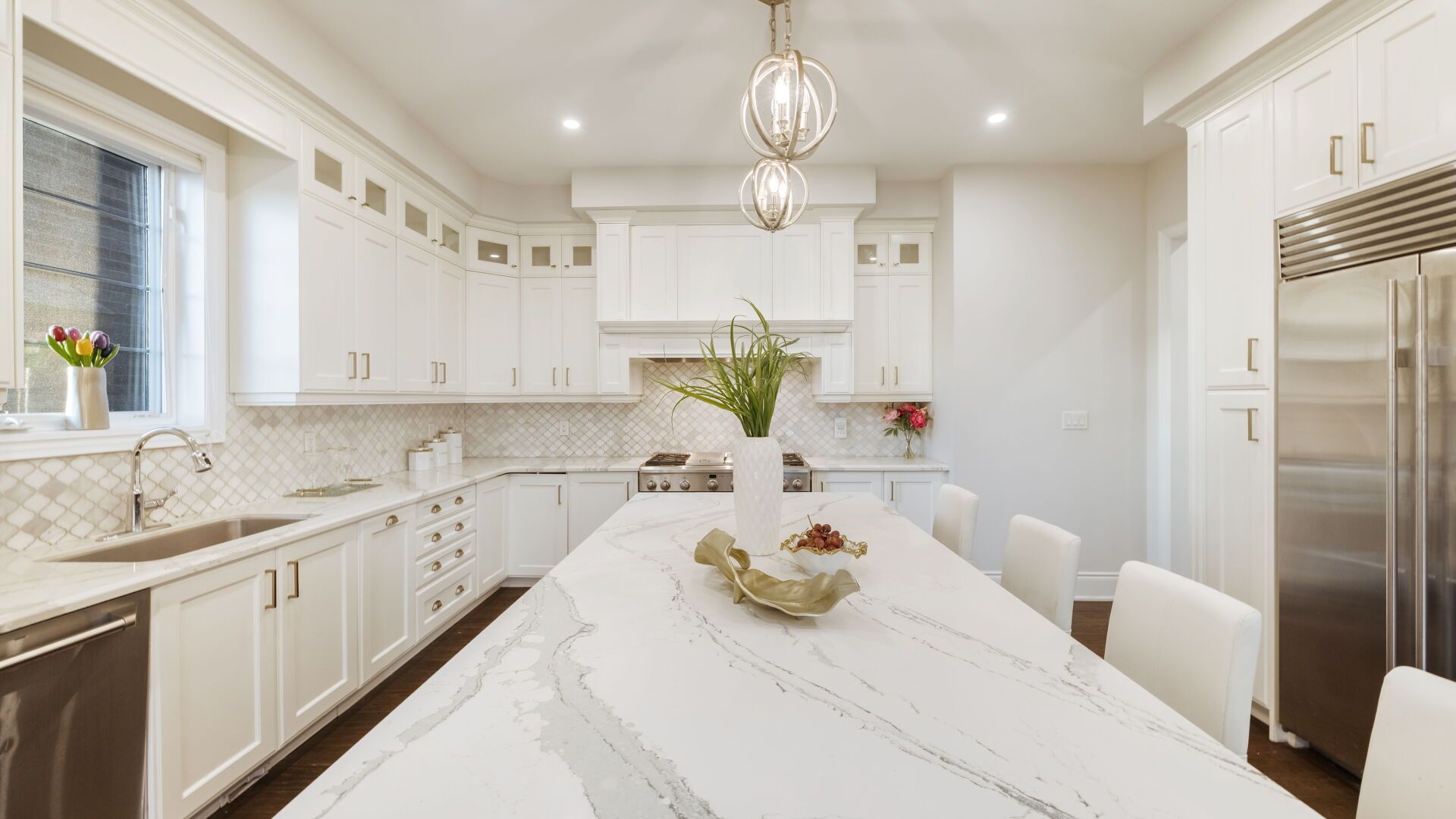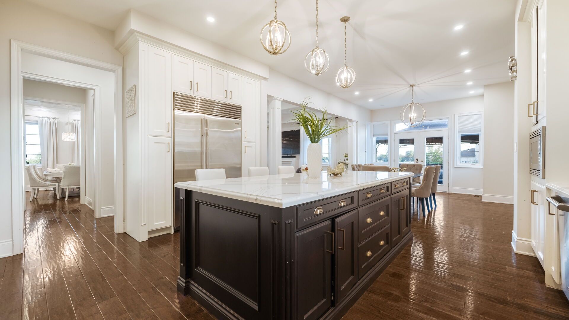 • Gourmet kitchen equipped with top-notch appliances and custom features.
