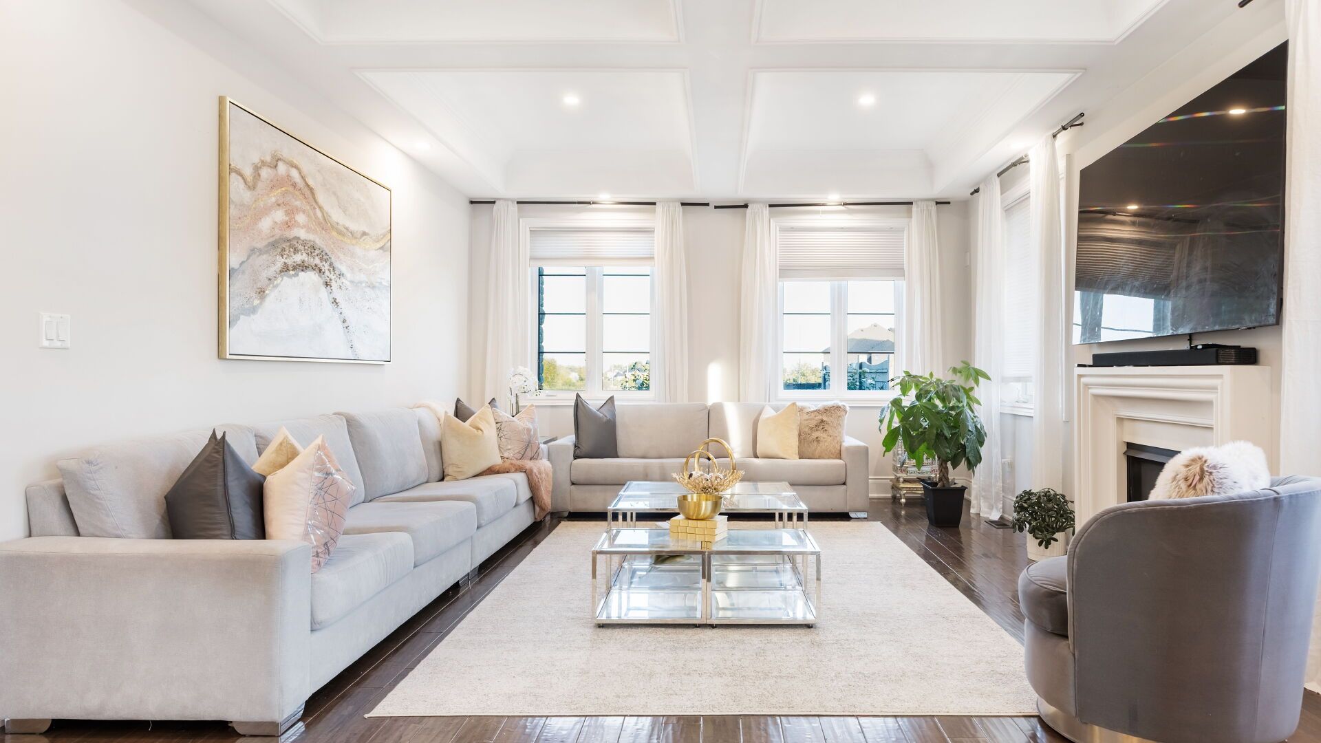• Elegant open-concept design with high ceilings and natural light.