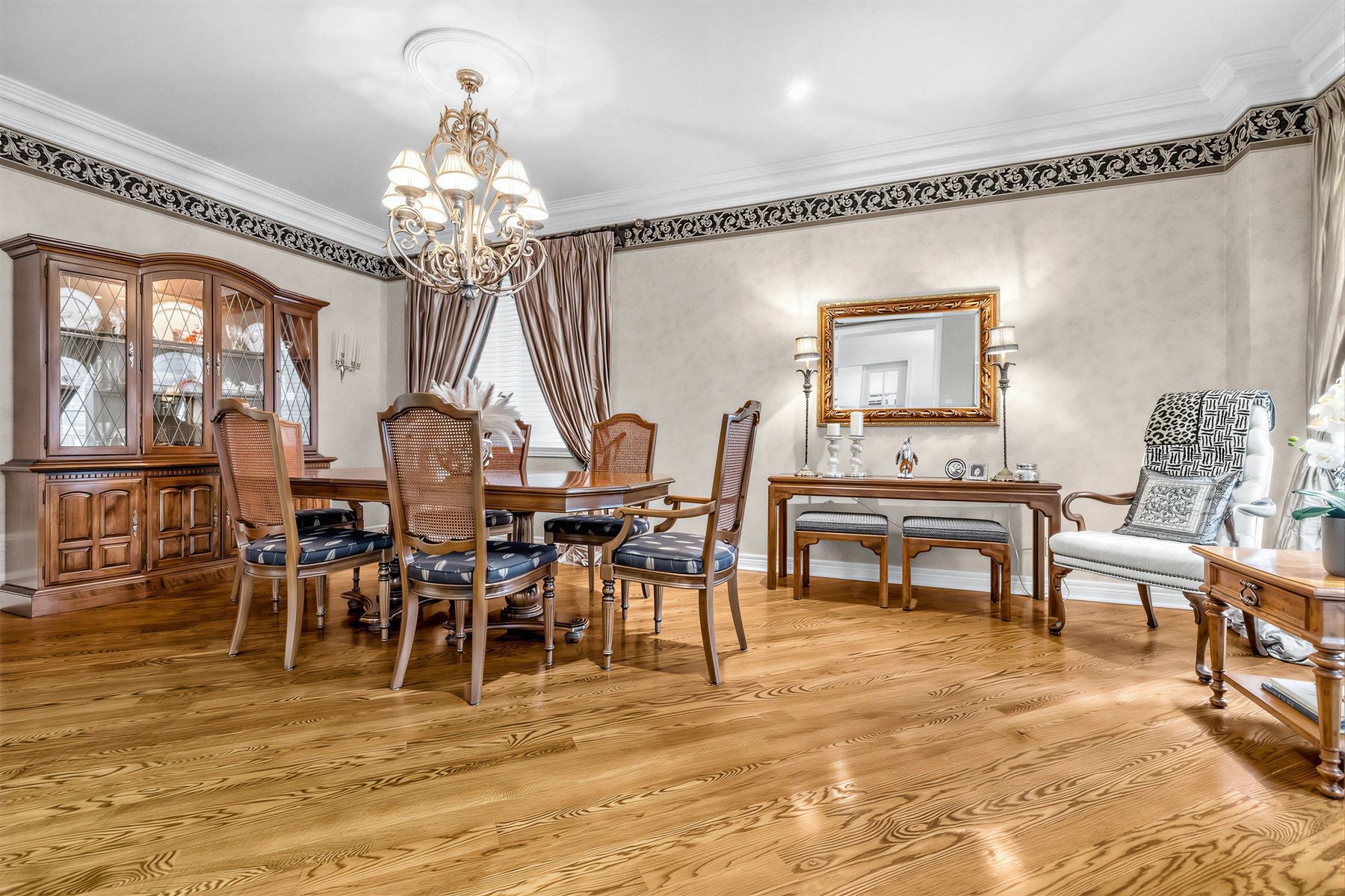 Located on a quiet and highly regarded street, this beautifully maintained family home offers comfort, function, and exceptional living space. Featuring 9 ft ceilings on the main floor and south-facing exposure, the home is filled with abundant natural light throughout the day. The bright living and dining areas are enhanced by hardwood flooring, crown moulding, and an inviting layout ideal for everyday living and entertaining. A private main floor office with coffered ceiling and pot lights provides a perfect work from home space. The sunken family room adds character and warmth, featuring hardwood floors, and pot lights, and overlooks the backyard. The kitchen is well appointed with tile flooring, connecting seamlessly to the breakfast area. Upstairs, the spacious primary bedroom includes a five piece ensuite, walk in closet, and broadloom flooring. Three additional generously sized bedrooms offer comfortable family living. The finished basement expands the living space with a large recreation room featuring laminate flooring and a wet bar, along with an exercise room, office, and a two piece bathroom with rough in for a shower. The exterior showcases flagstone accents in both the front and backyard, creating strong curb appeal and an inviting outdoor setting. Situated in an excellent family oriented neighbourhood, close to schools, hospital, community centre, parks, and playgrounds, this home is ideal for families seeking space, convenience, and a welcoming community.