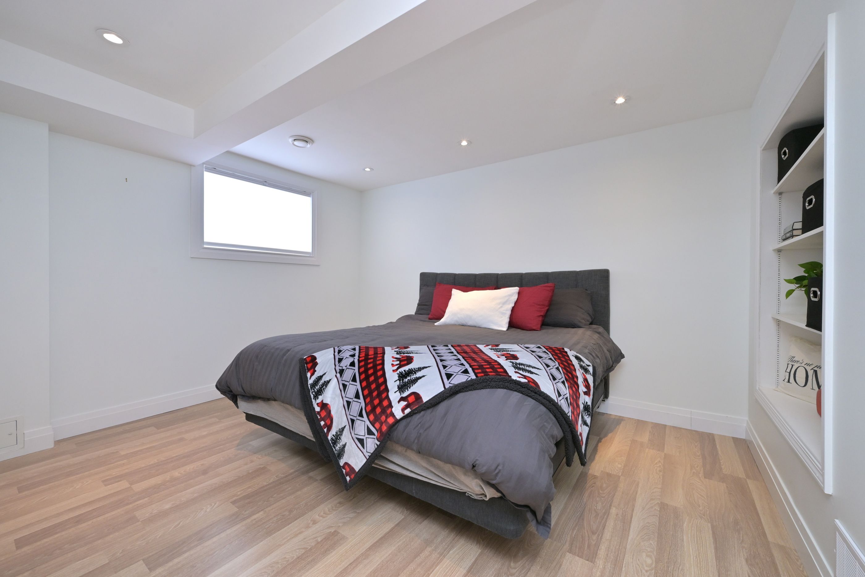 Designed with comfort and convenience in mind, this all brick, 3 + 1 bedroom bungalow has so much to offer. Located on a desirable crescent with easy access to school, shopping and park. This beautifully maintained home offers approx. 2200 sf of living space with large windows for excellent natural light on all levels and carpet free with hardwood, laminate and tile flooring. The lower level is finished with a side door entrance, 2nd kitchen, family room and 4th bedroom with 3pc ensuite. The main level provides a private primary bedroom with 3pc ensuite, a chef's style kitchen, a living room with large windows & gas fireplace, spacious foyer, powder room, walkout from dining area to generous deck (rebuilt in '22) providing a private view of fully fenced yard and scenic park beyond.