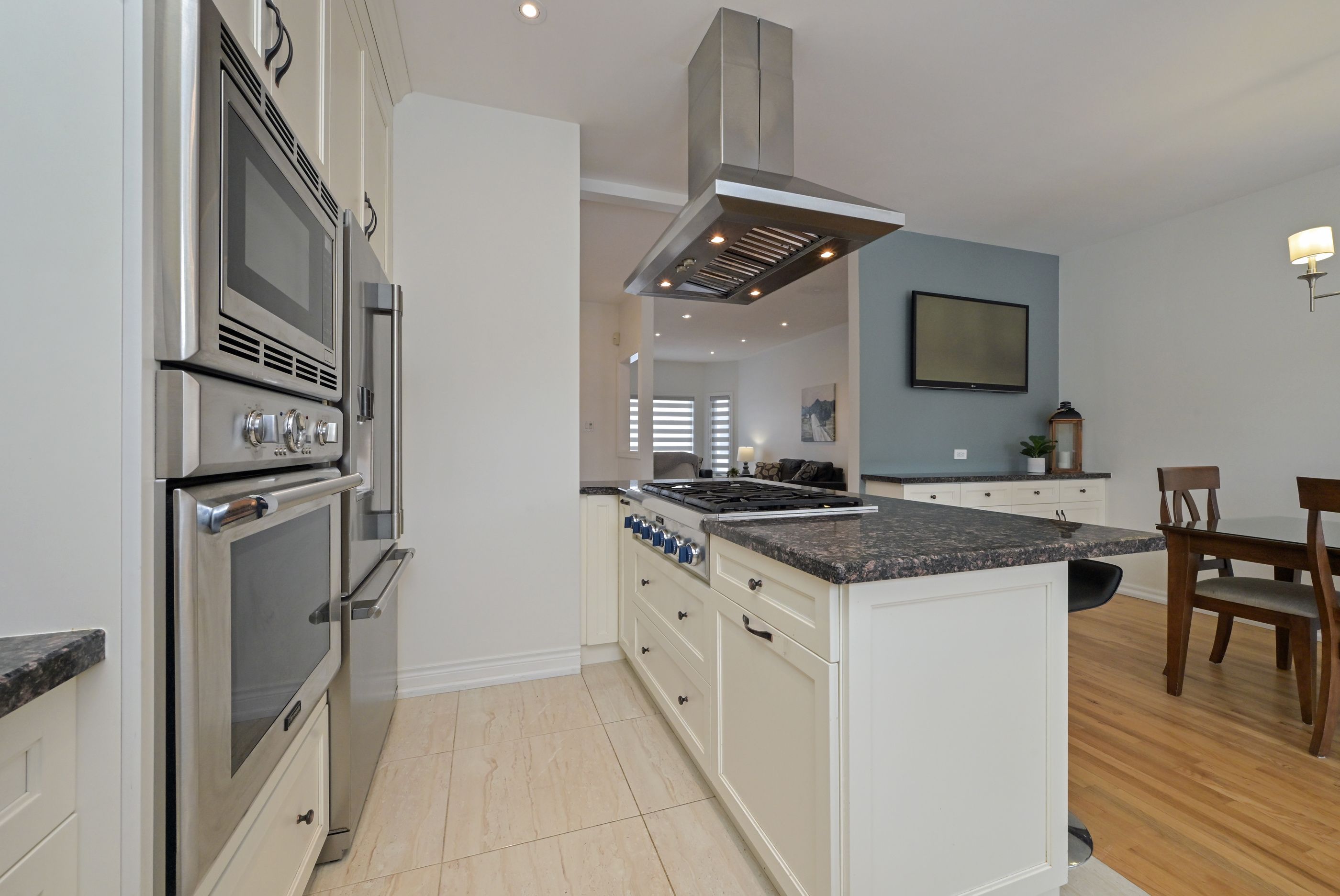 • Chef's style kitchen and spacious living room featuring a gas fireplace.