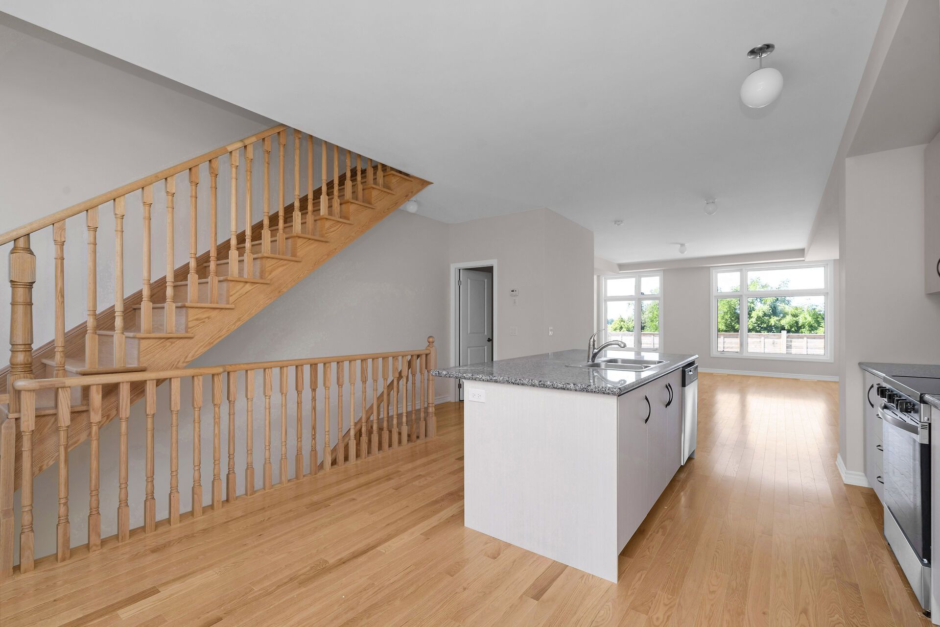 Rutherford heights by caliber homes the harris 2 model. Discover the harris 2, a stunning 2,080 sq. Ft. Executive townhome designed to impress. With soaring 9 ft ceilings on the first, second, and third floors, this sun-filled home is enhanced by massive windows that bathe every room in natural light. Featuring 3 spacious bedrooms and 3 modern bathrooms, the second level showcases hardwood floors (except in tiled areas) for a sophisticated touch. The gourmet kitchen boasts granite countertops, extended-height cabinets, and a large island with an extended breakfast bar-perfect for both casual meals and entertaining. Additional highlights include elegant 4 1/8" baseboards and the peace of mind of a 7-year tarion warranty. The images have been virtually staged. Furnishings and décor have been digitally added and may not represent the actual property.