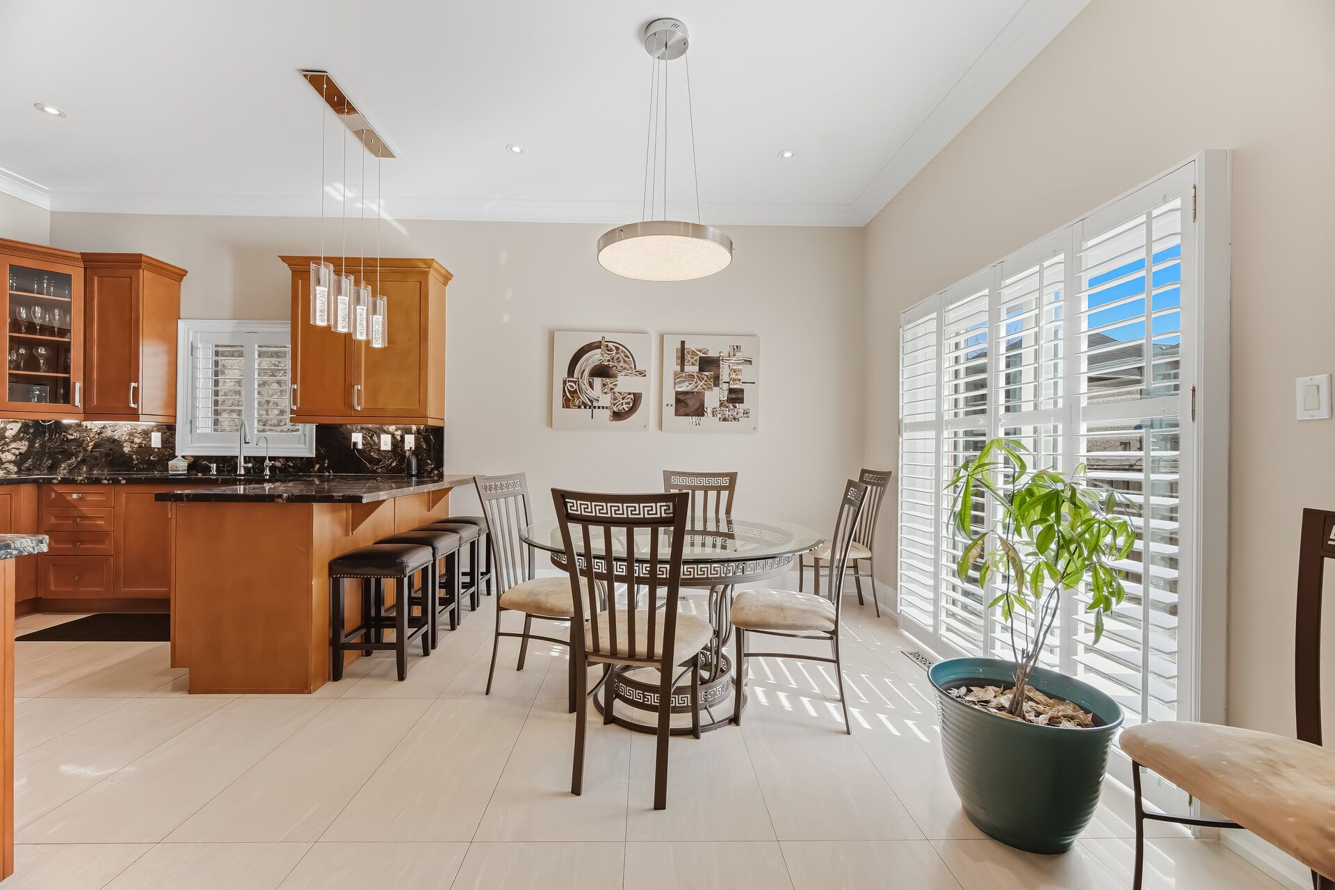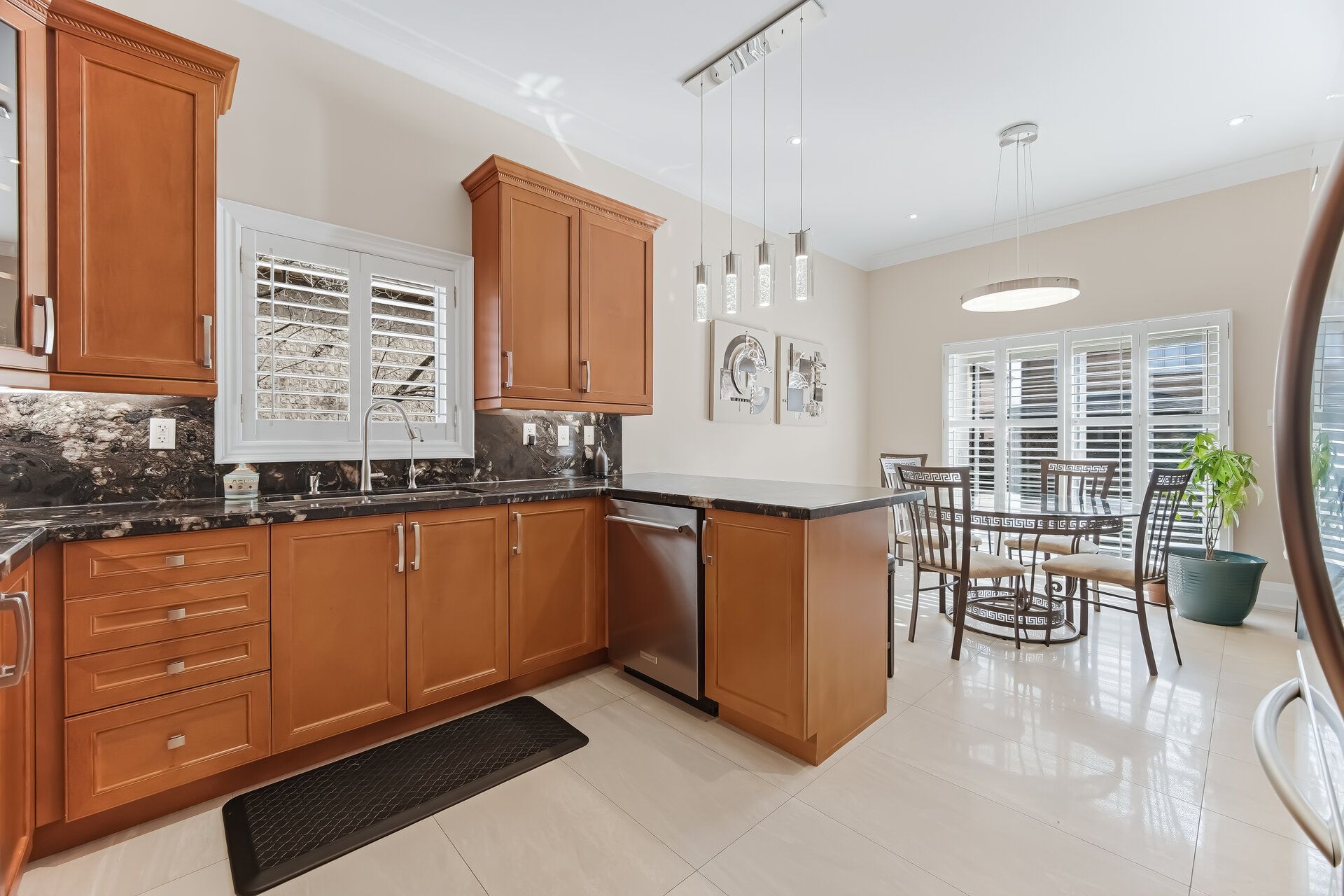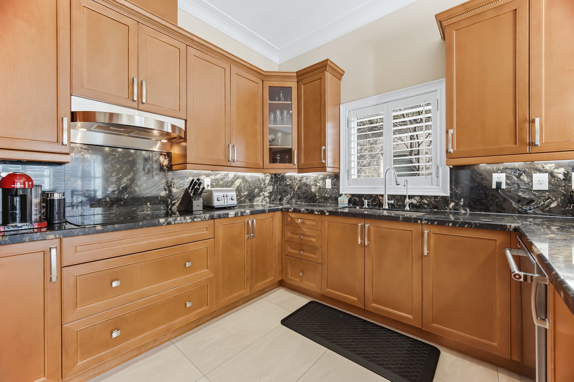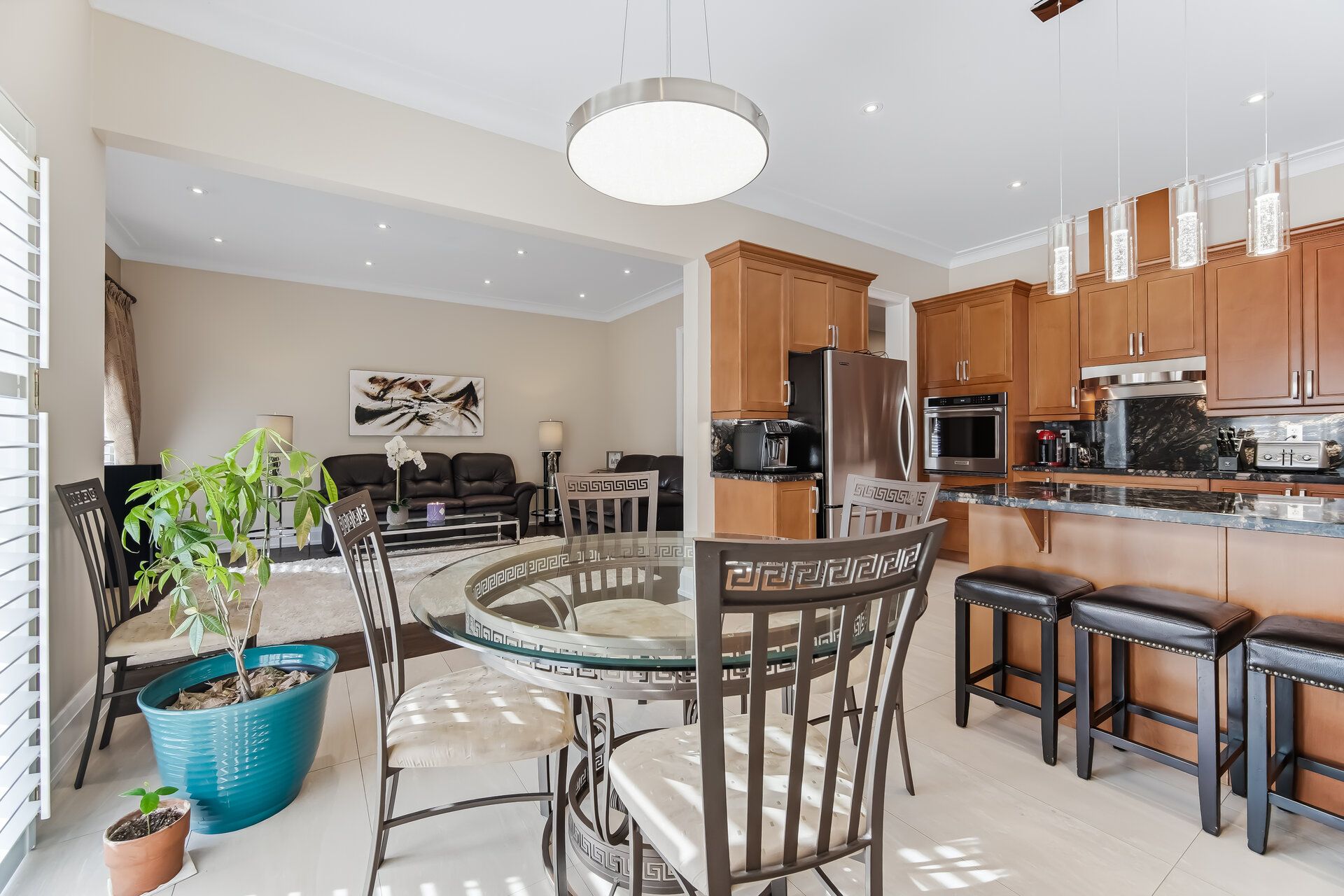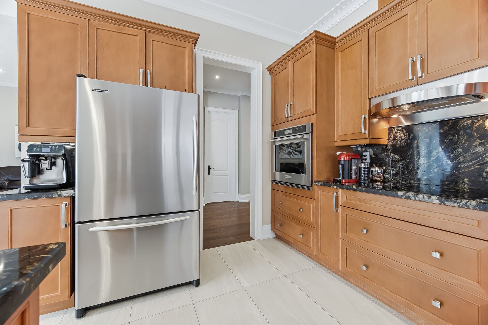 • Stylish kitchen equipped with upgraded appliances, granite countertops, and ample space.