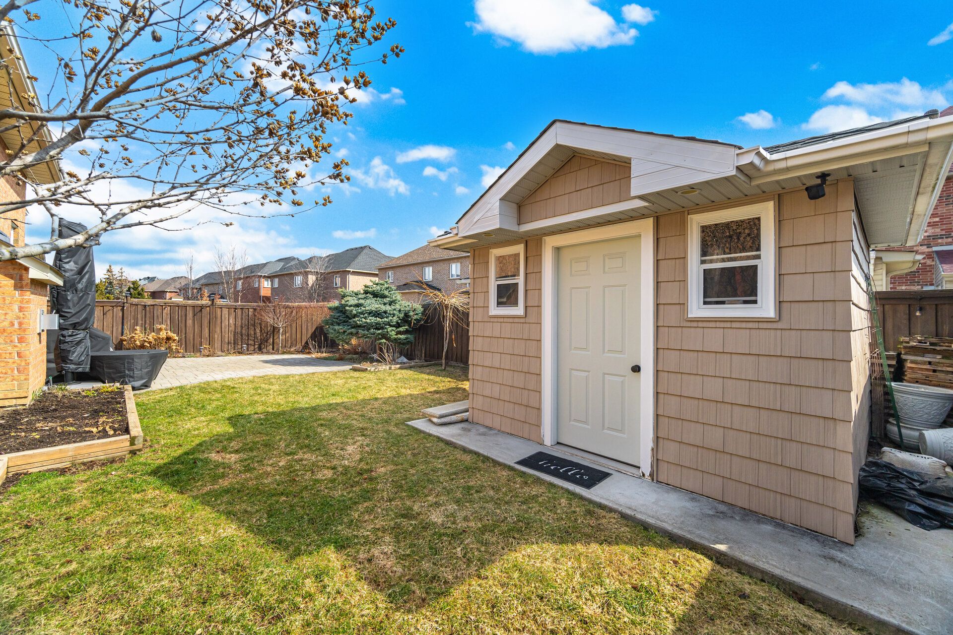 Welcome to a truly exceptional & fully transformed bungalow. This detached 3-bedroom home, situated on a 50-foot lot, has been meticulously upgraded from top to bottom with premium finishes. Step inside & experience the impressive 10-foot ceilings, seamless smooth ceilings and pot lights that create a bright, modern ambiance throughout. The home is anchored by a stunning 8'7" custom aluminum and wood front entry door, matched with upgraded aluminum garage doors, delivering curb appeal and a grand first impression. The kitchen features a built-in glass stovetop, stainless steel wall oven, and dishwasher, complemented by granite countertops & granite backsplash. The open-concept layout creates an inviting space-perfect for entertaining, hosting, and everyday living, allowing you to cook, gather, and connect without compromise. Every detail has been carefully curated-from the elegant 8-foot interior doors, rich 5-inch-wide plank hardwood flooring, the oversized baseboards, and premium porcelain tiles elevate the space with a refined, contemporary feel. The bathrooms have been reimagined with upscale renovations, featuring premium fixtures, sleek finishes, and glass-enclosed showers. The 6-piece ensuite bathroom exhibits a freestanding deep tub, "toto" bidet, his and hers sinks & an oversized shower. Outside, the property continues to impress with a fully upgraded exterior, including landscaping, paving stone driveway, walkway, & rear patio, perfect for entertaining or relaxing. A custom-built backyard shed adds both functionality and style. With premium light fixtures throughout and no detail overlooked, this home is a rare offering-combining luxury, craftsmanship, and modern design. Mezzanine in garage for extra storage. Kinetico water-softener & r/o system. Updated furnace & a/c (2021) too many upgrades to list, please see attached feature/upgrades list.