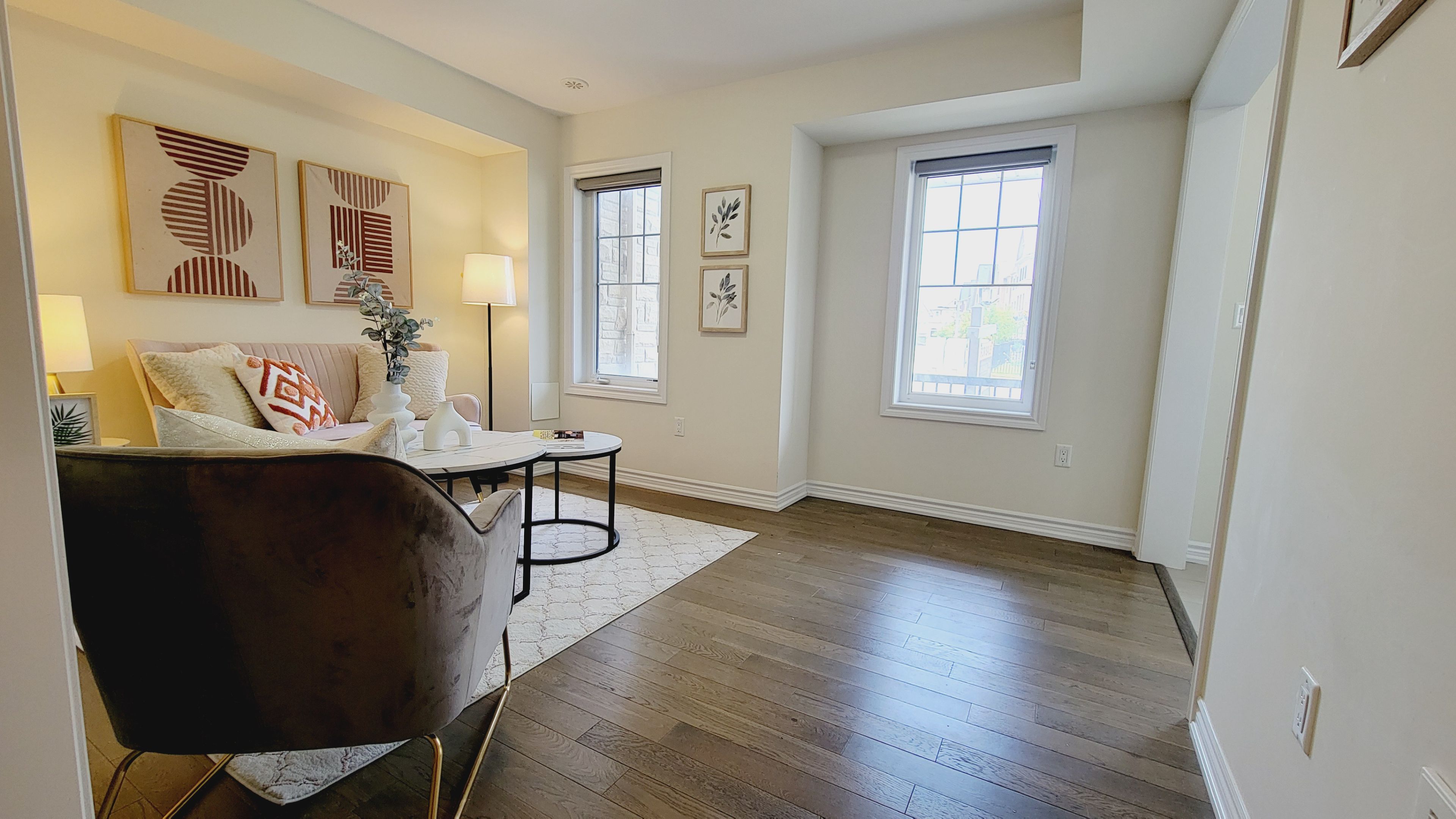 Welcome to 29 george peach avenue, a beautifully maintained freehold townhouse located in the heart of victoria square, one of markham's most sought-after communities. This stylish and functional home offers approximately 2,328 sq ft of well-designed living space, ideal for families or professionals seeking modern comfort and everyday convenience. Featuring 3+1 spacious bedrooms and 2. 5 bathrooms, this sun-filled home showcases an open-concept layout with 9-foot ceilings and large windows throughout. The gourmet kitchen is equipped with quartz countertops, stainless steel appliances, an expansive center island, and a walk-in pantry providing ample storage. Bright living and dining areas are perfect for entertaining, while the private terrace off the kitchen seamlessly extends your outdoor living space. Upstairs, the primary retreat boasts a large walk-in closet and a luxurious ensuite featuring a frameless glass shower and modern vanity. A versatile ground-floor den is ideal for a home office or study. Additional highlights include convenient upper-floor laundry and direct access to the garage. Adding to the home's family-friendly appeal, a large park for children is conveniently located directly across the street, offering a safe and enjoyable outdoor space just steps from your front door.