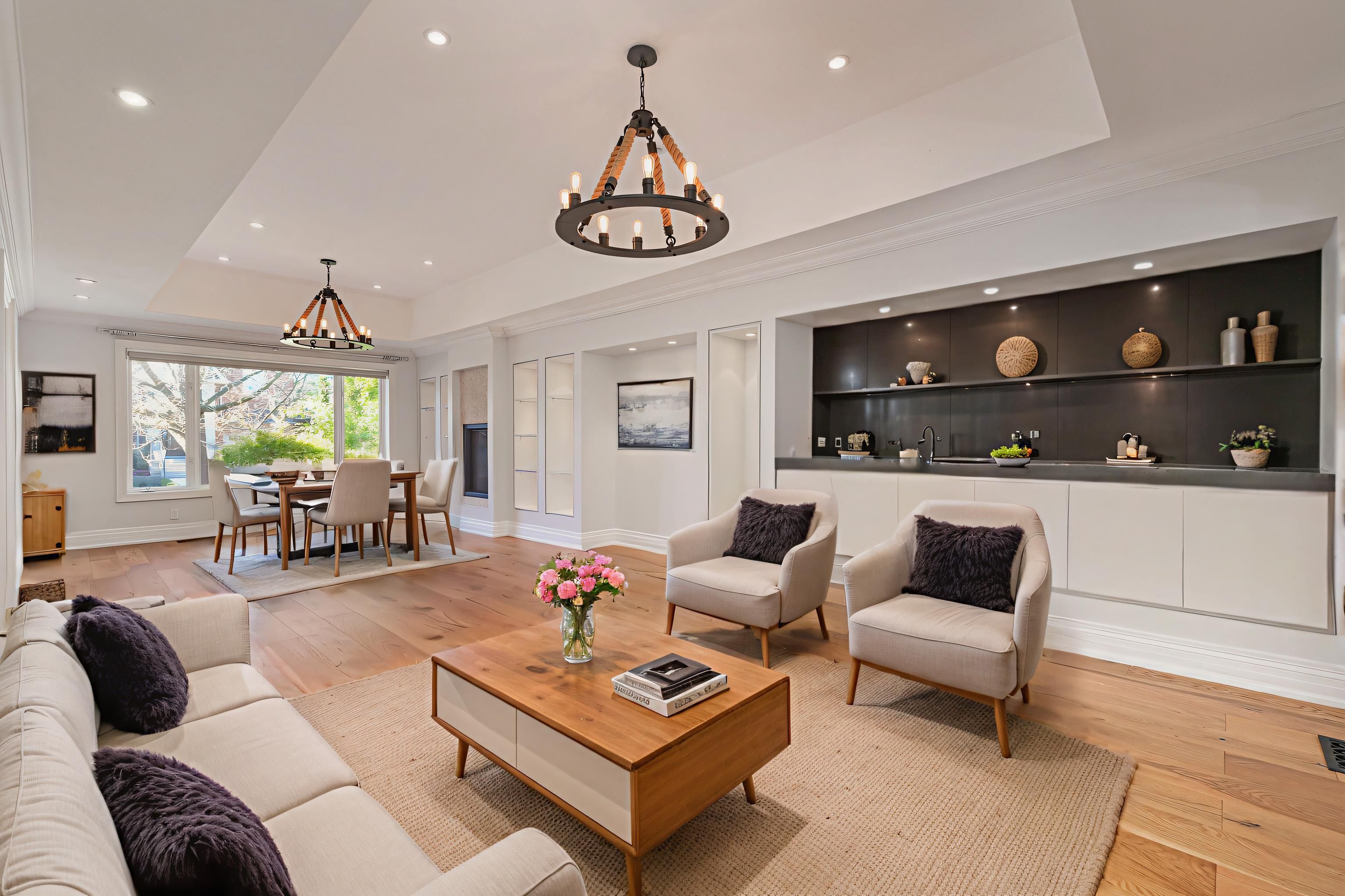 Beautifully renovated home with modern style & classic charm on a gorgeous 50x150 ft lot! Impeccably finished 4-level side split in highly sought-after bedford park. Bright, light-filled open-concept layout perfect for family living & entertaining. Updated kitchen with breakfast area, open to spacious family room with walk-out to large deck & fully landscaped private backyard oasis. 2nd floor features 3 generous bedrooms, including primary suite with 5-pc ensuite & walk-in closet, plus additional 5-pc main bath with double sinks. Lower level offers av room/yoga/exercise space with walk-out to beautiful backyard. Basement level includes +1 bedroom with 3-pc ensuite & storage - ideal for teen, nanny, or guest suite. Direct garage access. Located in a fast-redeveloping area surrounded by premium custom-built homes. Move-in ready - perfect blend of luxury, comfort & character!